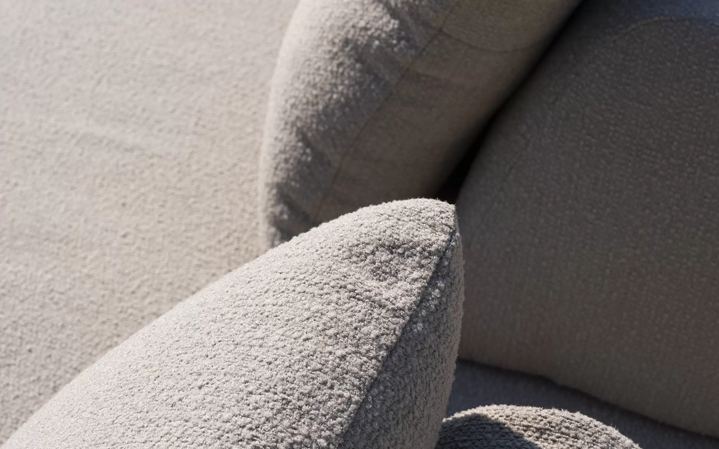 Zdejmowane poszewki obiciowe z materiału Boucle wyplecionego z odpornych na działanie UV i wody włókien polipropylenowych.