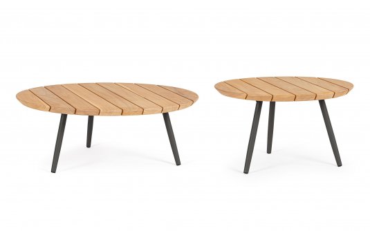 IVISSA Zestaw 2 stolików stal/teak Ø60 i Ø80 cm