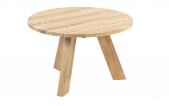 Stolik kawowy Cosmic od 4 Seasons Outdoor posiada aluminiową podstawę z warstwą powłoki proszkowej oraz blat z drewna tekowego o grubości 120 × 78 cm.