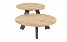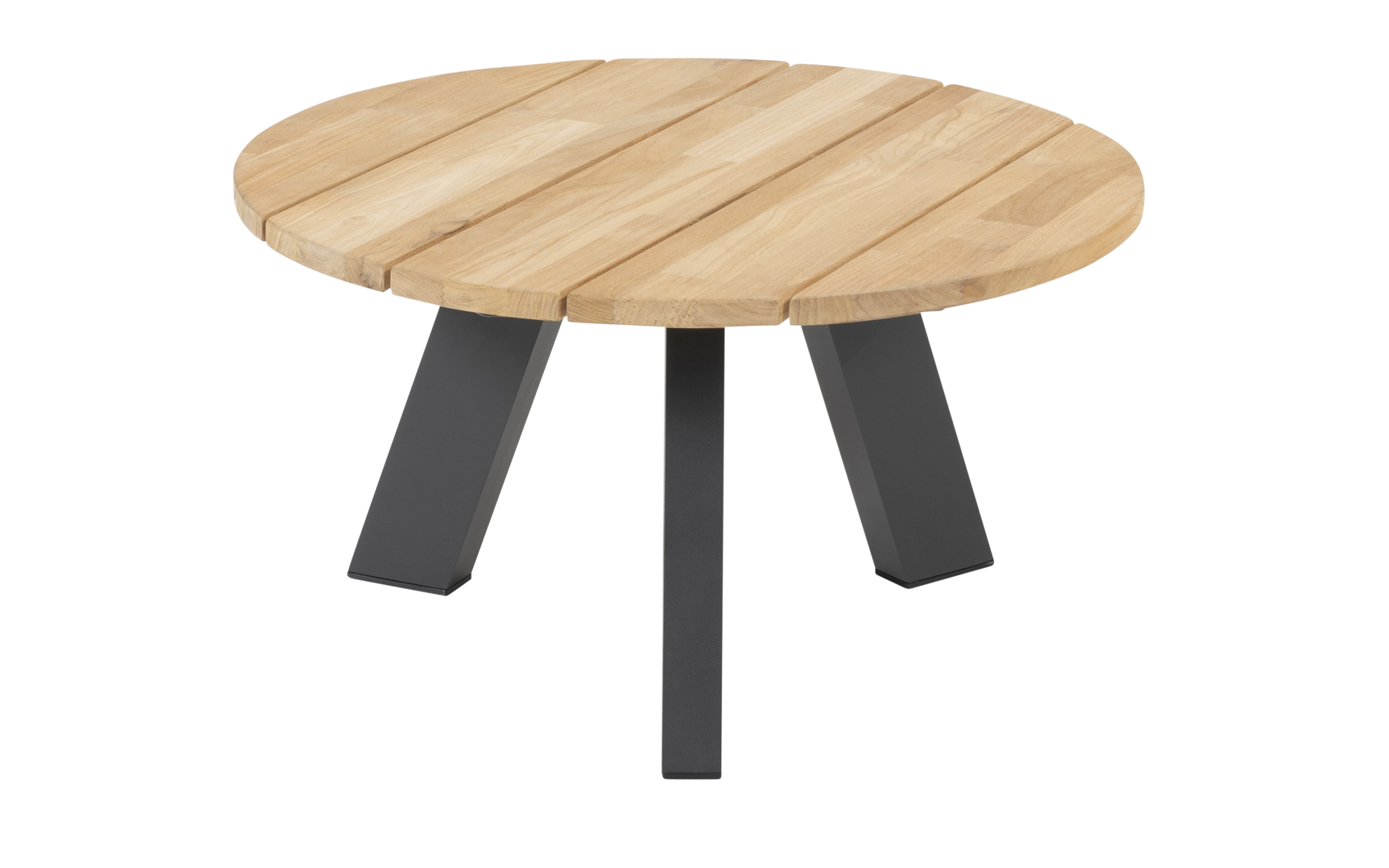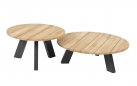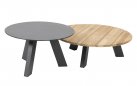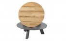 Stolik kawowy Cosmic od 4 Seasons Outdoor posiada aluminiową podstawę z warstwą farby proszkowej oraz blat teak o średnicy 65 cm.