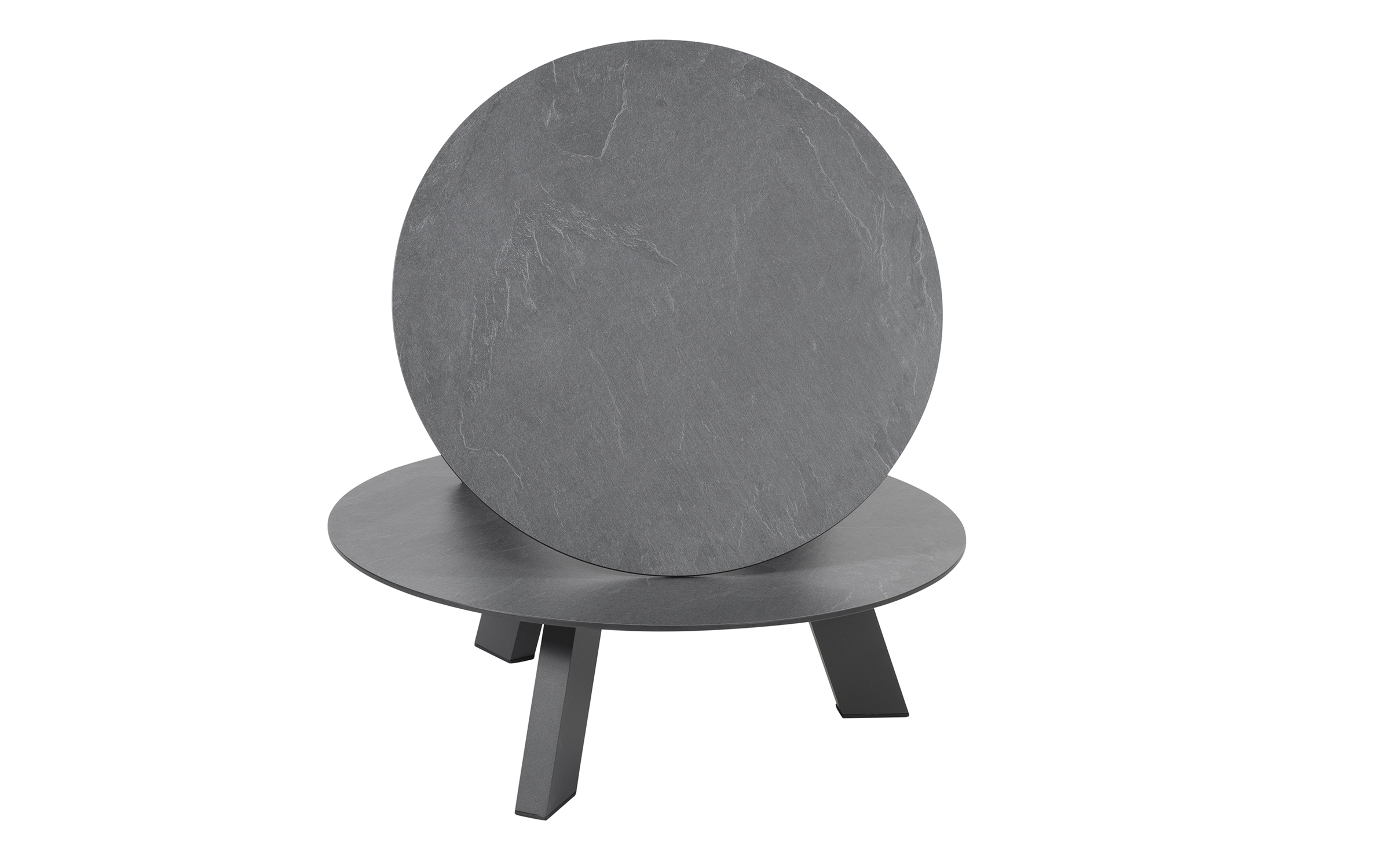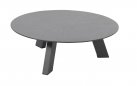 Stolik kawowy Cosmic od 4 Seasons Outdoor posiada aluminiową podstawę z warstwą farby proszkowej oraz blat HPL o średnicy 78 cm.