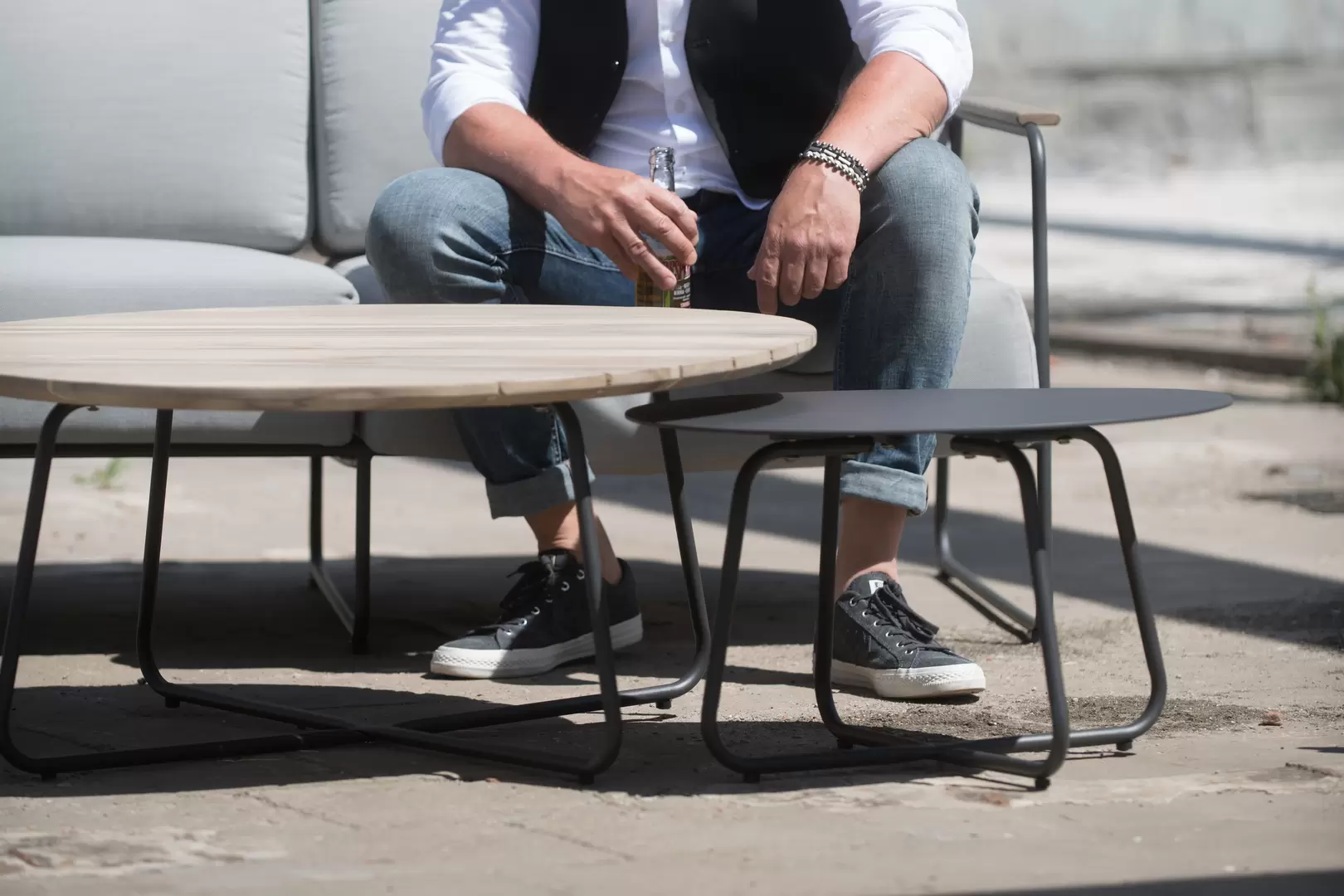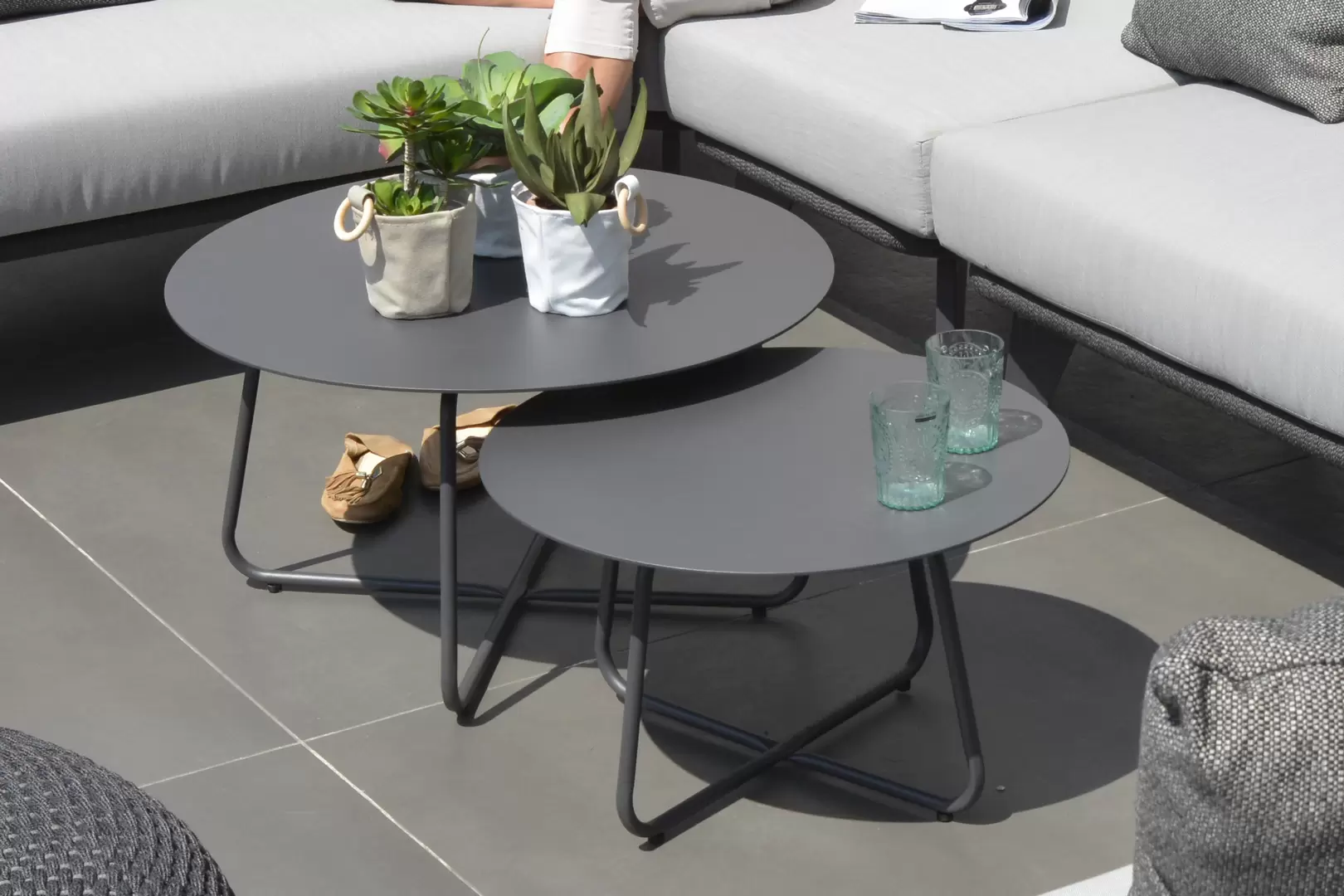 Stoliki kawowe 4 Seasons Outdoor Dali wykonane są z wysokiej jakości aluminium i doskonałej powłoce nakładanej proszkowo. Stoliki można łączyć ze sobą, ponieważ różnią się średnicą i wysokością. Stoliki Dali są szczególnie przydatne w przypadku foteli lub zestawu wypoczynkowego.