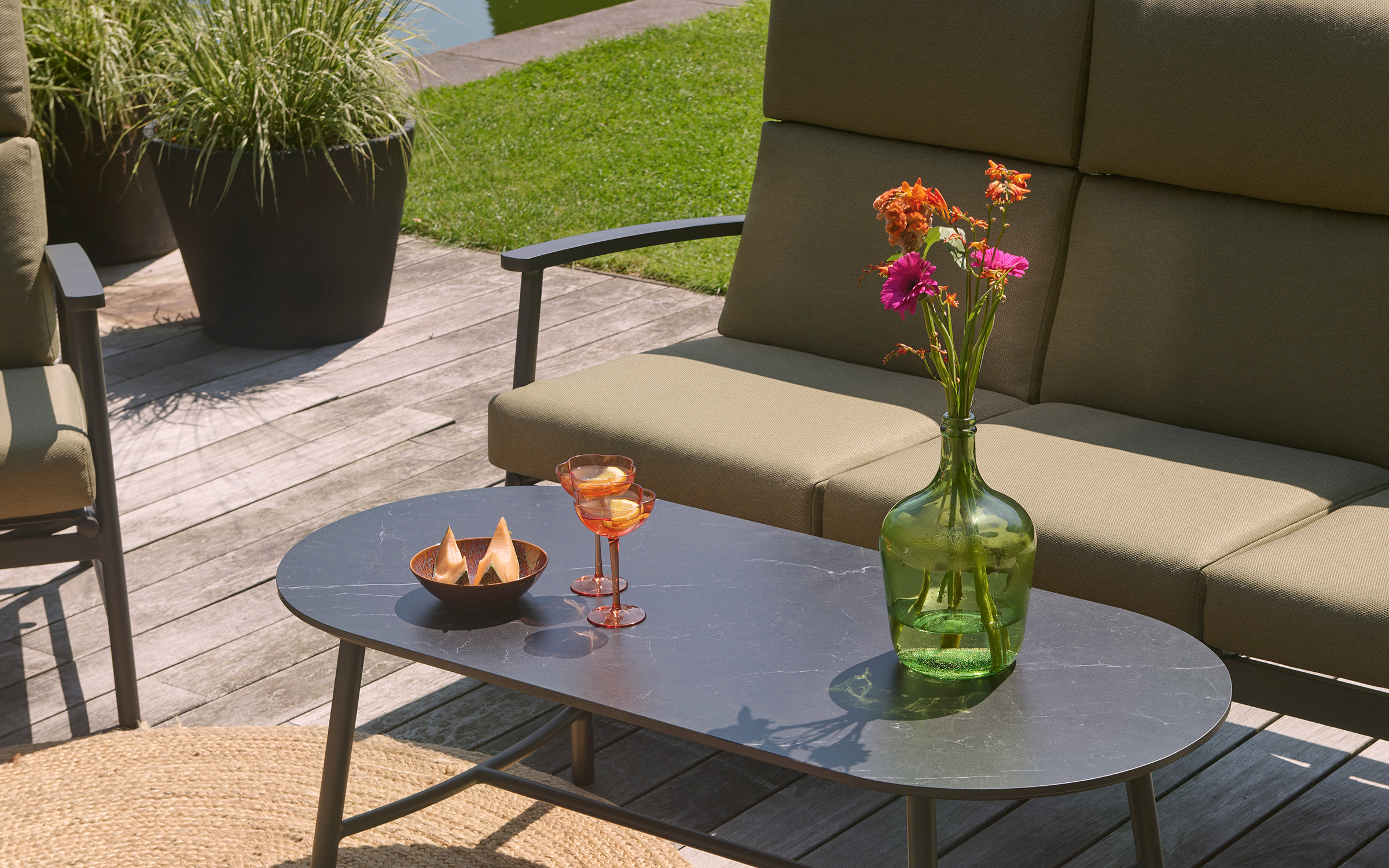 FLORA 130×60×42 cm - Stół ogrodowy niski owalny Hartman – aluminium i blat ceramiczny