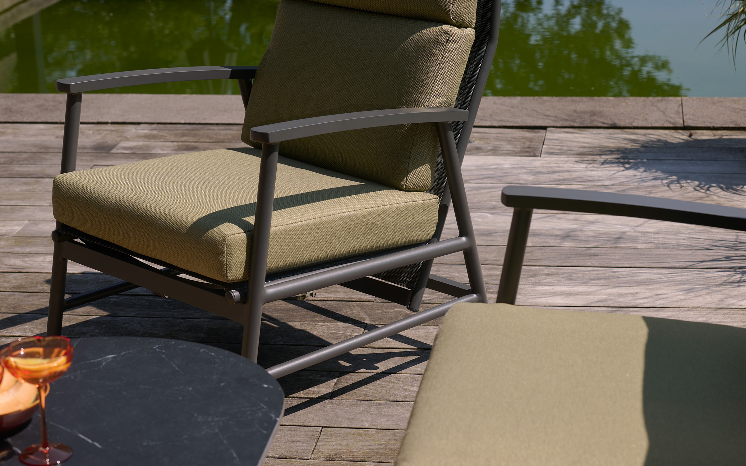 Stół wykonany z aluminiowej ramy oraz ceramicznego blatu. Materiały odporne na wilgoć, promieniowanie UV i zmienne warunki atmosferyczne. Łatwe w pielęgnacji, nie wymagają impregnacji ani specjalnej konserwacji.