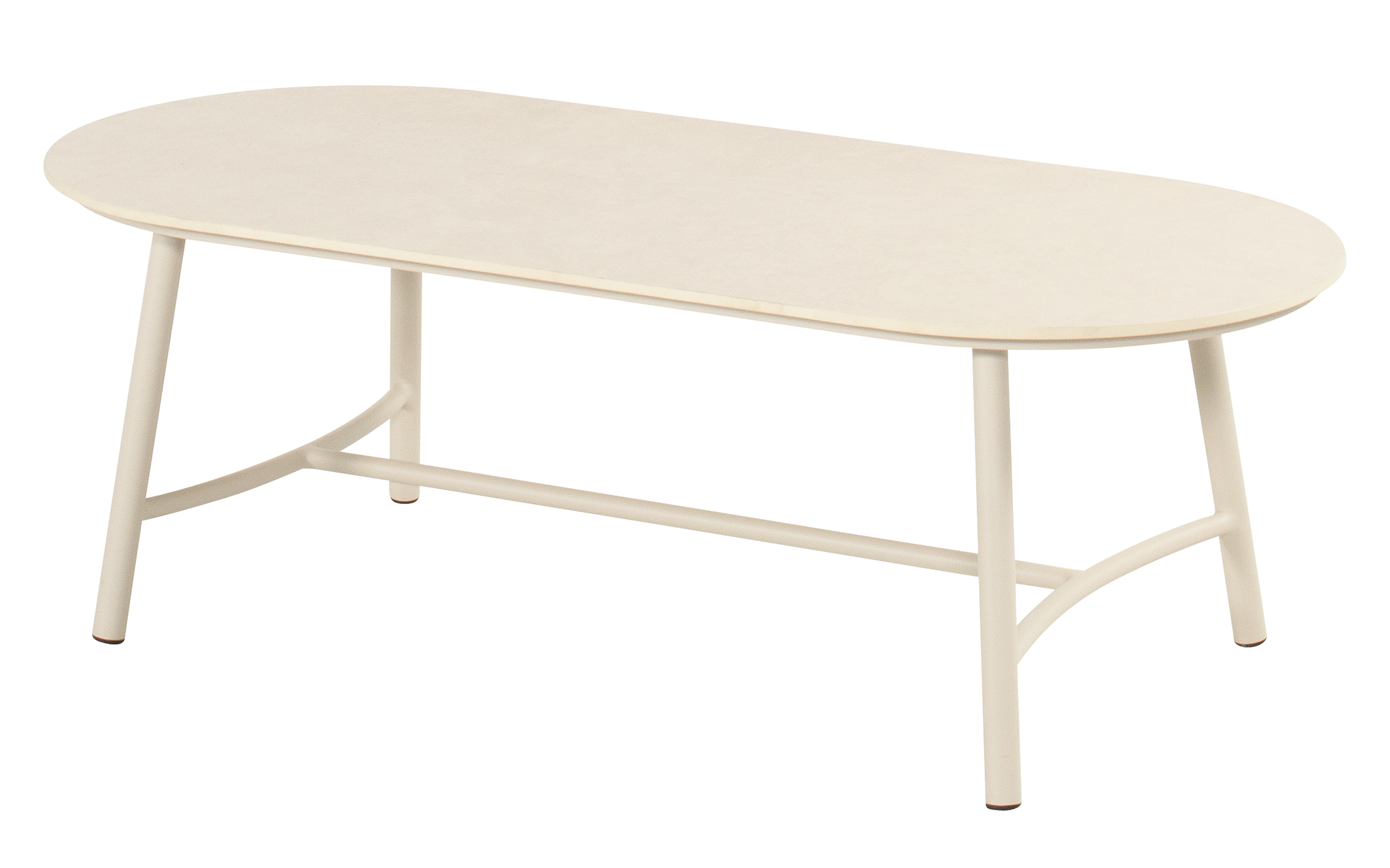 Niski stół ogrodowy FLORA (stolik kawowy) marki Hartman to elegancki i funkcjonalny mebel do strefy wypoczynkowej na tarasie lub w ogrodzie. Owalny blat z ceramiki osadzony na stabilnej aluminiowej ramie zapewnia trwałość i ponadczasowy wygląd. Idealny jako stolik kawowy lub uzupełnienie zestawu wypoczynkowego.