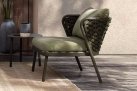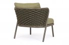 Boki i oparcie oplecione liną przyjemną w dotyku z wyplenieniem z polietylenu.