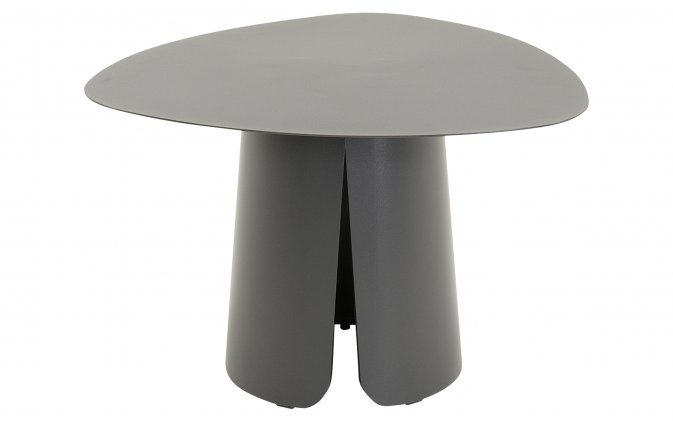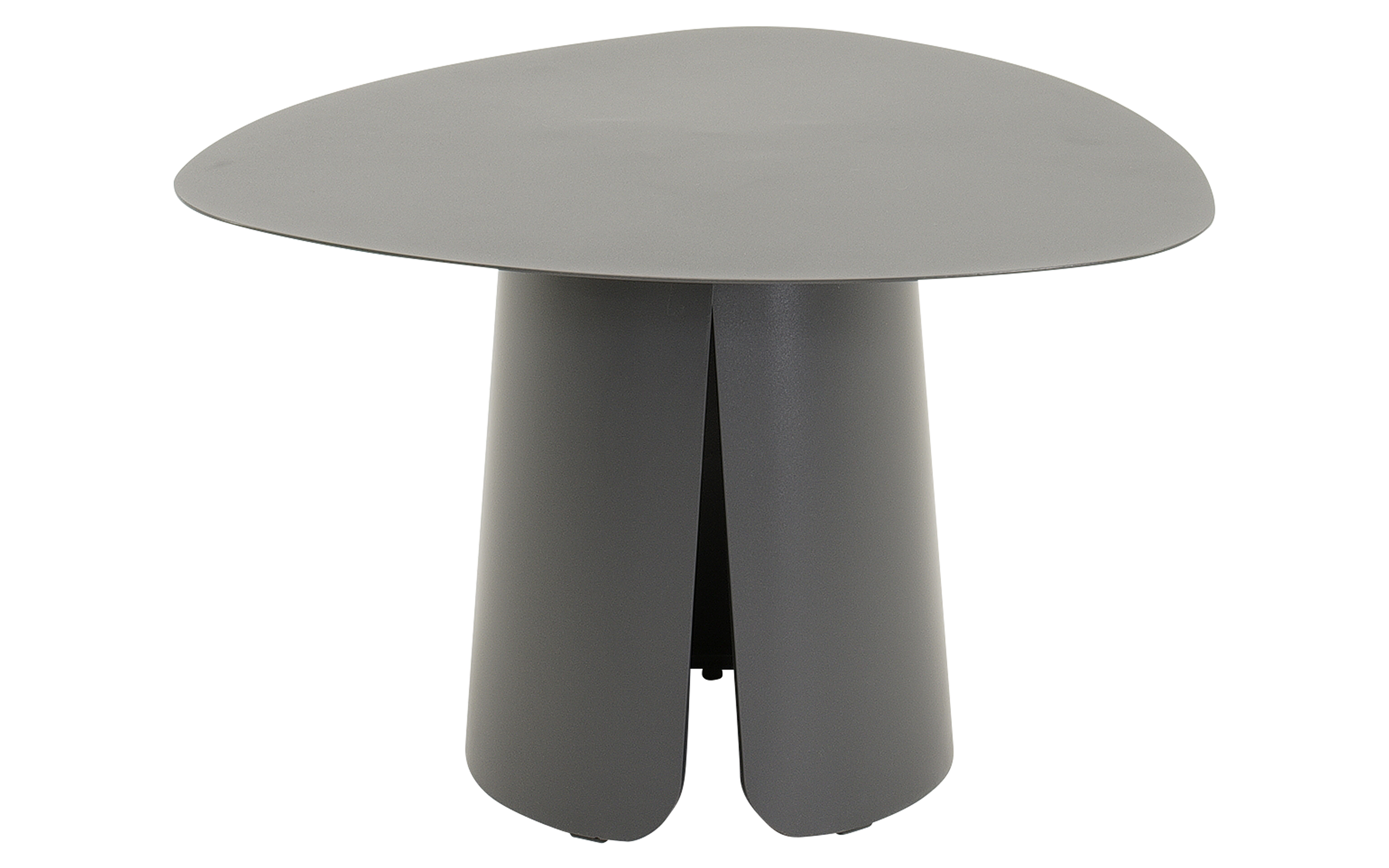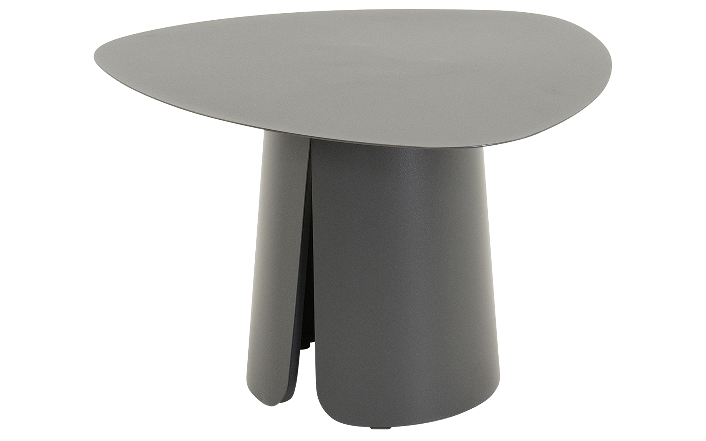 Stolik kawowy Luma marki Lesli Living to elegancki i funkcjonalny element wyposażenia strefy wypoczynkowej na tarasie lub w ogrodzie. Posiada trójkątny, zaokrąglony blat. Konstrukcja wykonana jest z aluminium malowanego proszkowo w kolorze matowego antracytu, co zapewnia trwałość, odporność na korozję i nowoczesny wygląd. Blat z aluminium nadaje całości minimalistyczny charakter i jest odporny na zarysowania oraz warunki atmosferyczne.