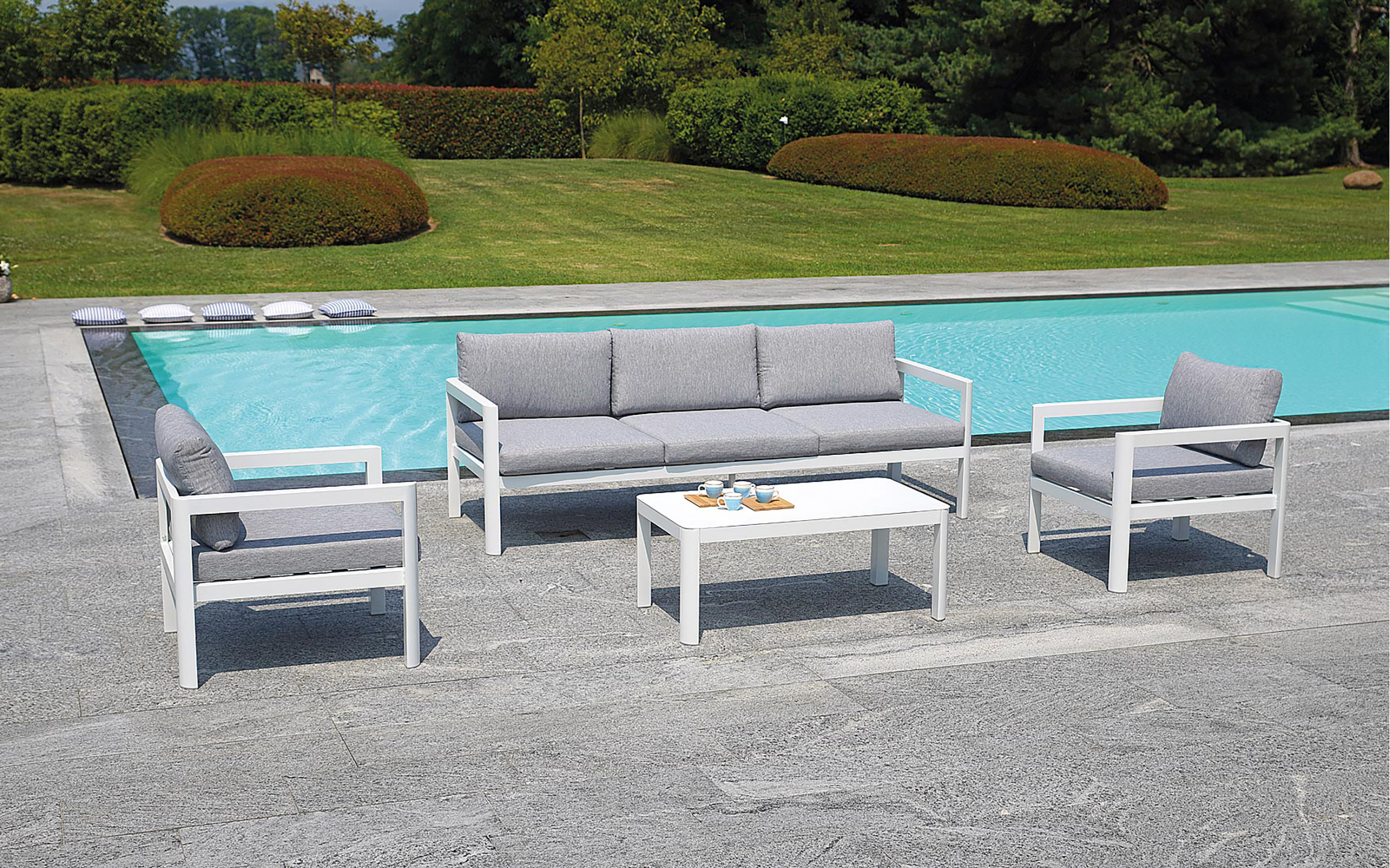 Stolik kawowy MARSIGLIA to elegancki i funkcjonalny element zestawu wypoczynkowego, idealny na taras, balkon lub do ogrodu. Wykonany z aluminium malowanego proszkowo, wyposażony w blat z ceramicznego szkła, który jest trwały, łatwy w czyszczeniu i odporny na warunki atmosferyczne.