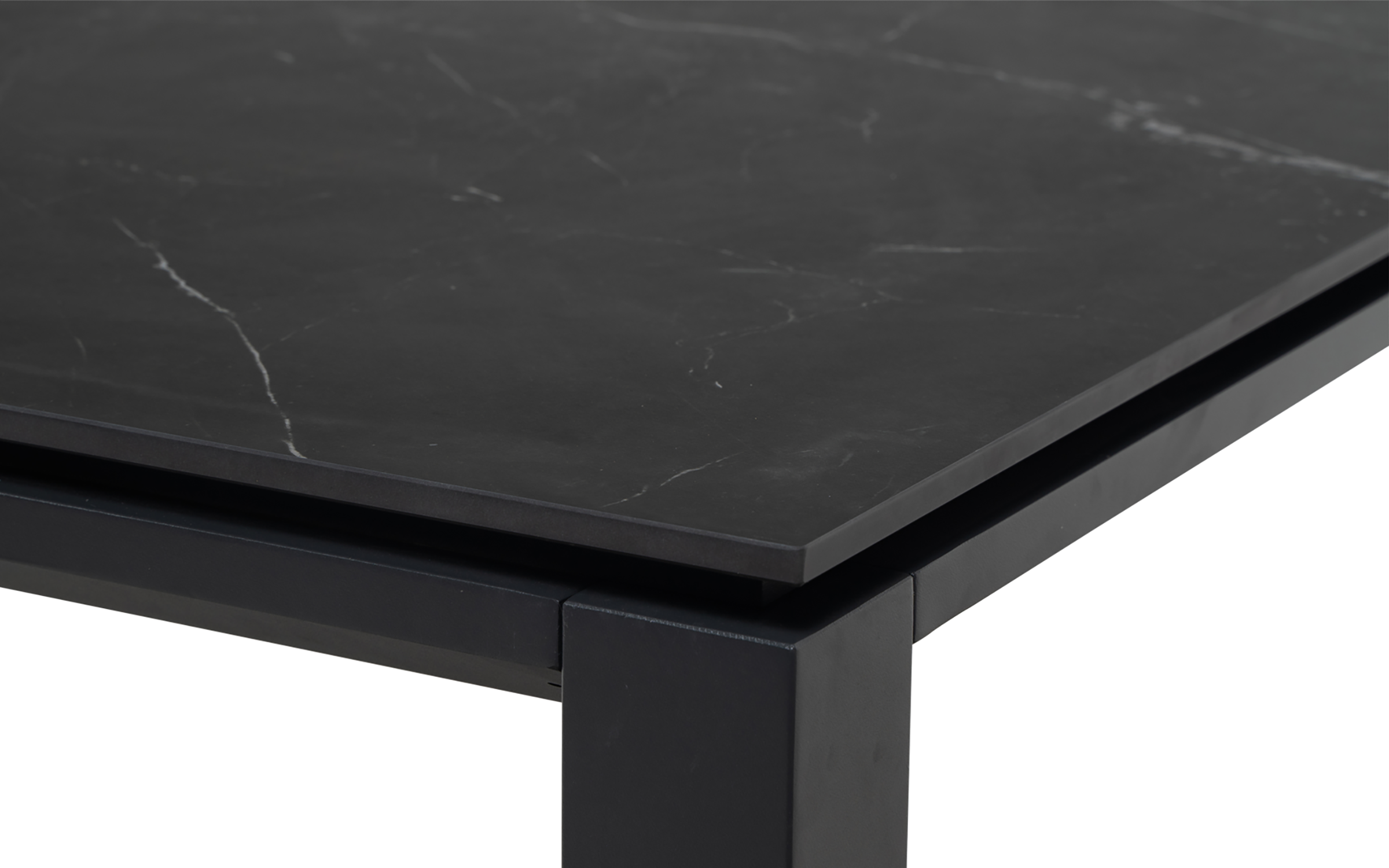 Stół MONTE CARLO to perfekcyjny mebel jadalniany na świeżym powietrzu. Aluminiowa rama w kolorze matowego antracytu w połączeniu z czarno-szarym blatem z kamienia spiekanego tworzy elegancką i nowoczesną całość. Materiały użyte w serii Monte Carlo gwarantują trwałość, odporność na warunki atmosferyczne oraz łatwość pielęgnacji. Blat o grubości 1,2 cm jest odporny na wilgoć i zarysowania, a solidne nogi o przekroju 7×7 cm zapewniają stabilność i pewny stojak. Dzięki wymiarom 180×90 cm przy stole Monte Carlo wygodnie zasiądzie 6–8 osób, co czyni go idealnym rozwiązaniem na rodzinne obiady i spotkania towarzyskie w ogrodzie czy na tarasie.