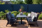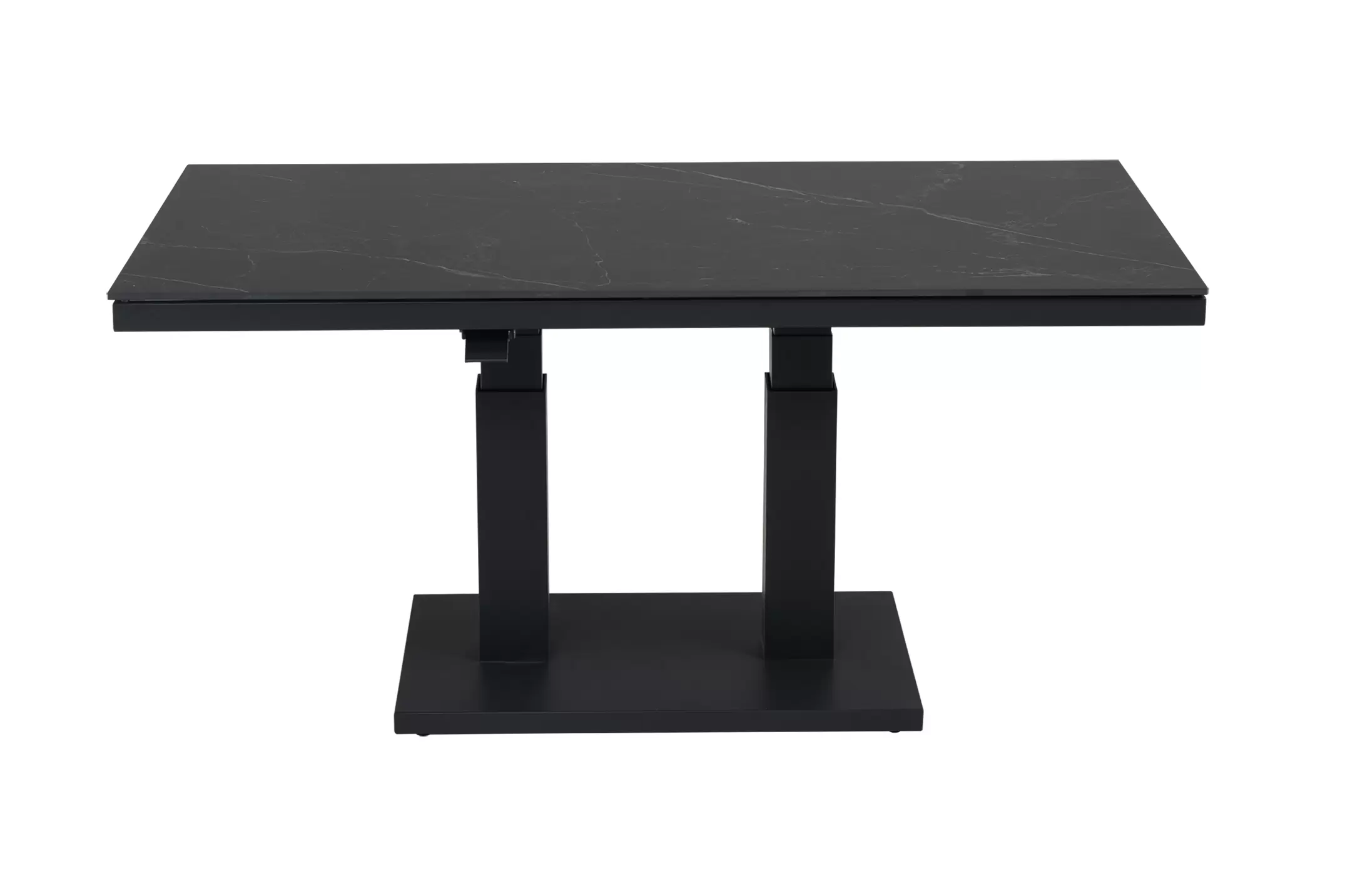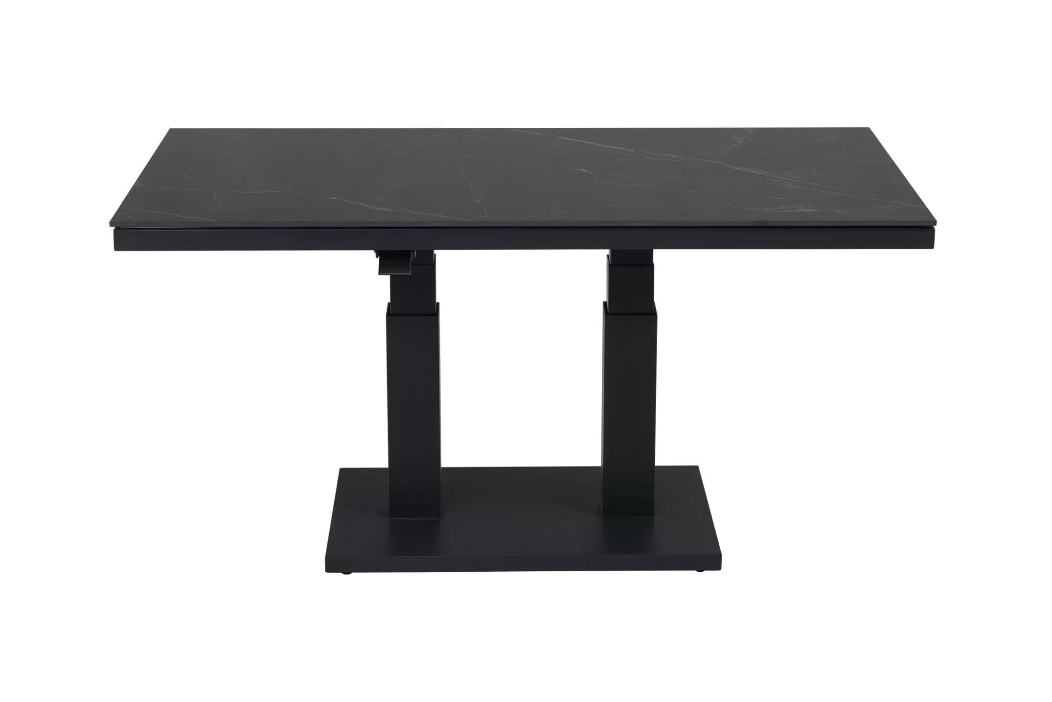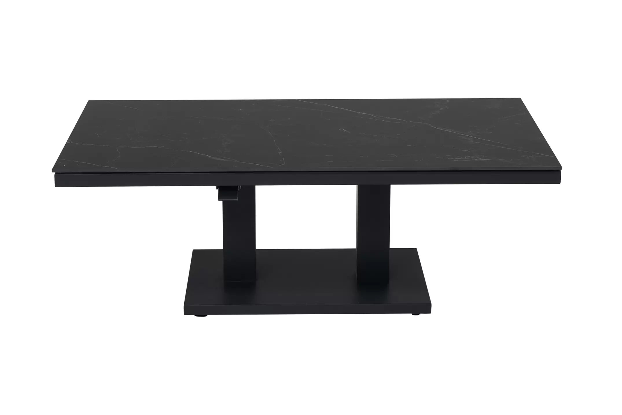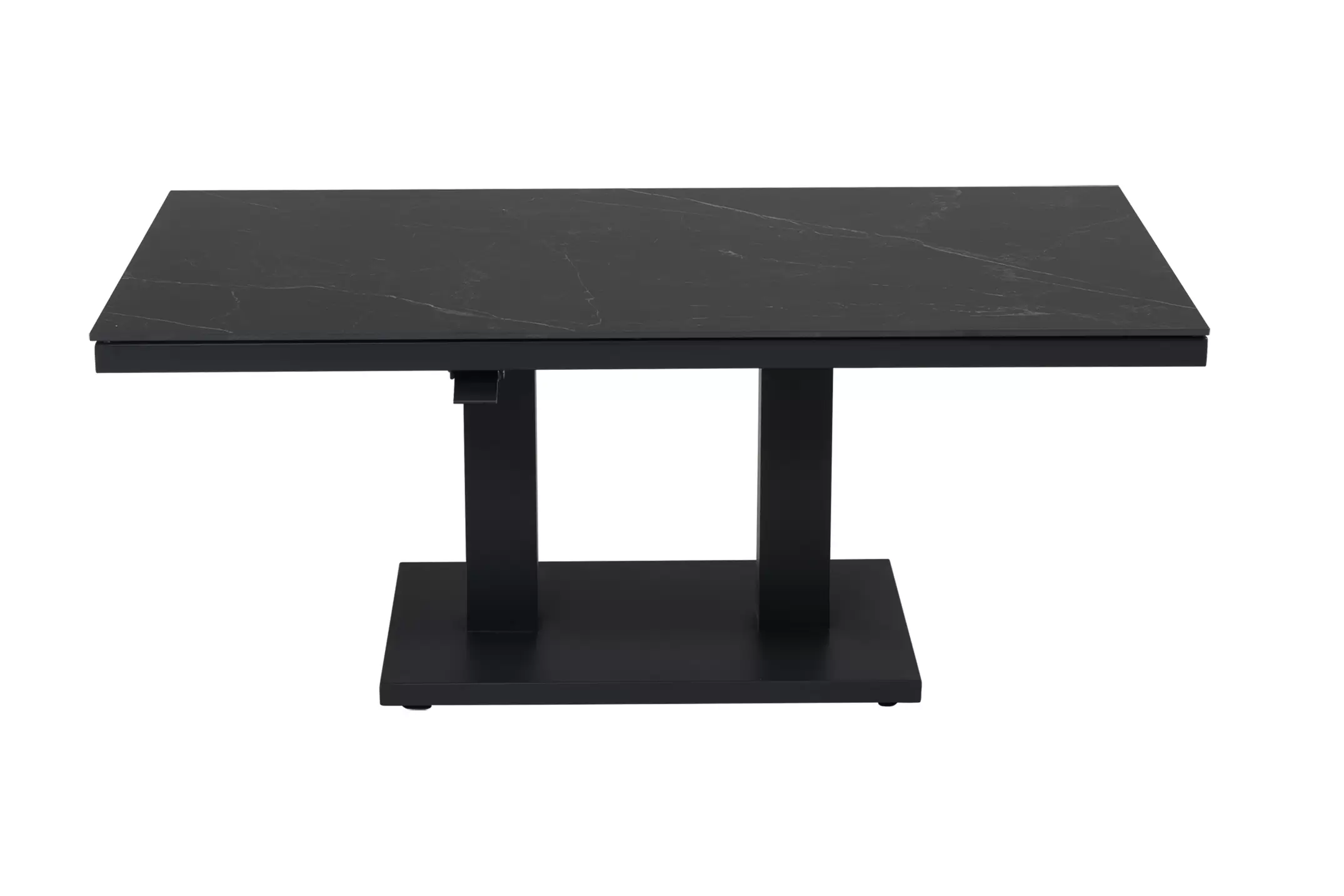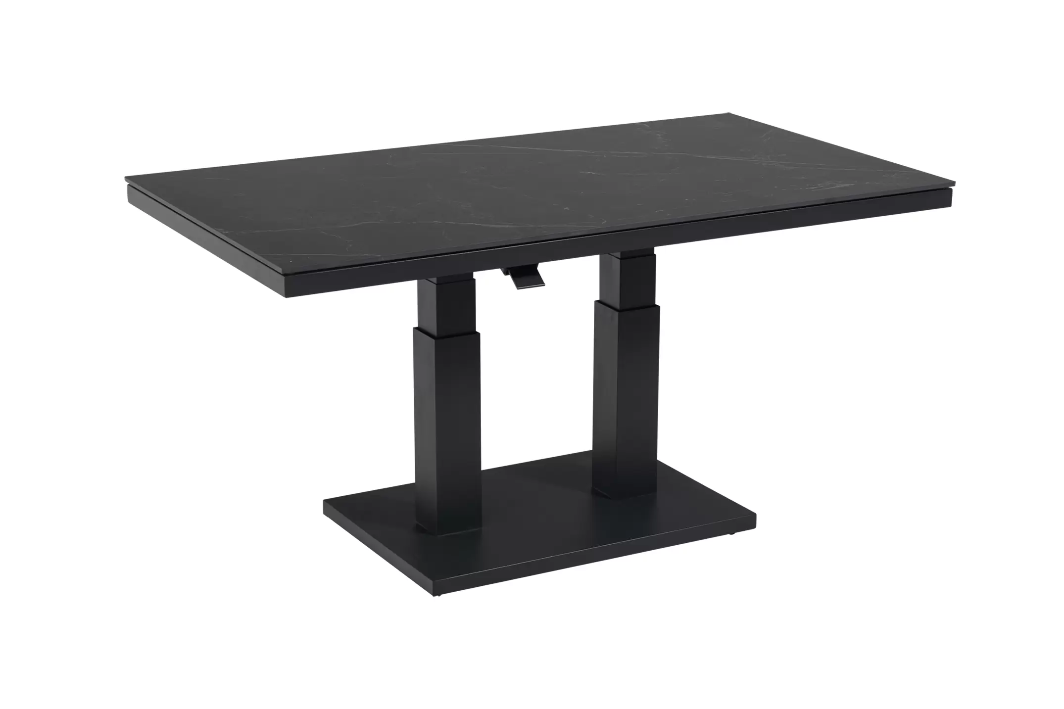Aluminiowy stół ogrodowy z ceramicznym blatem od 50 cm do 72 cm. Wysokość 72 cm nadaje się do przyjemnego spożywania obiadów na tarasie.