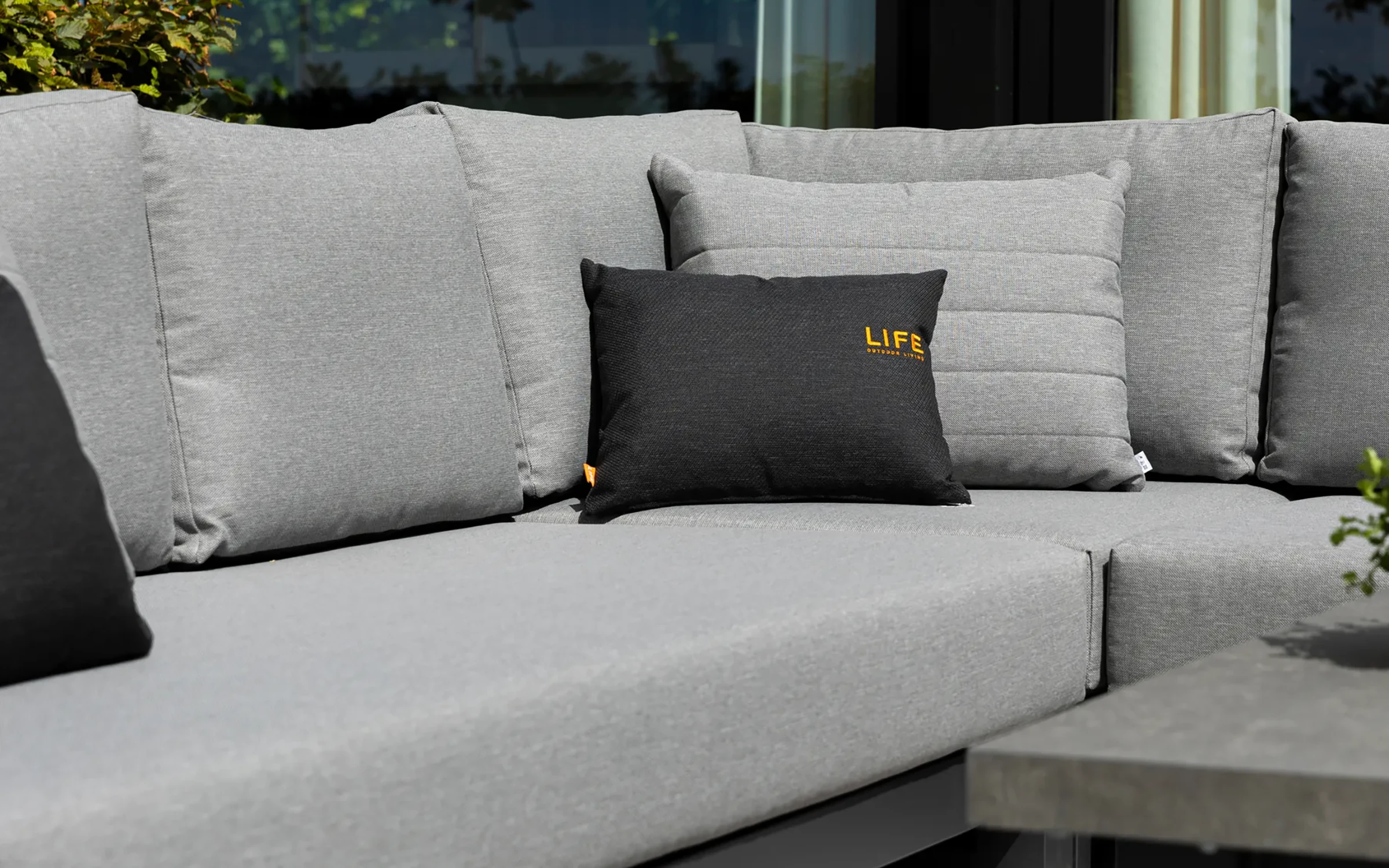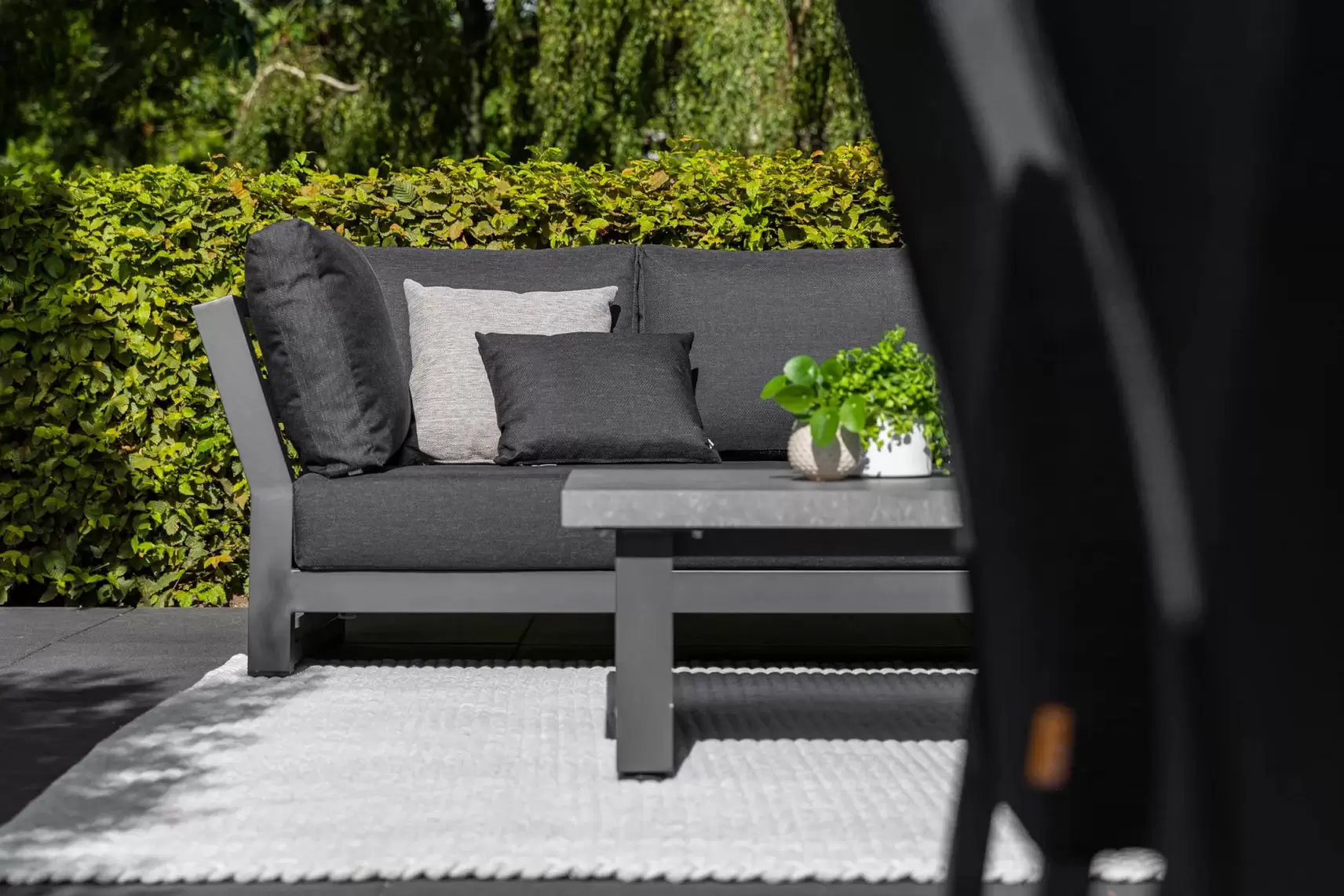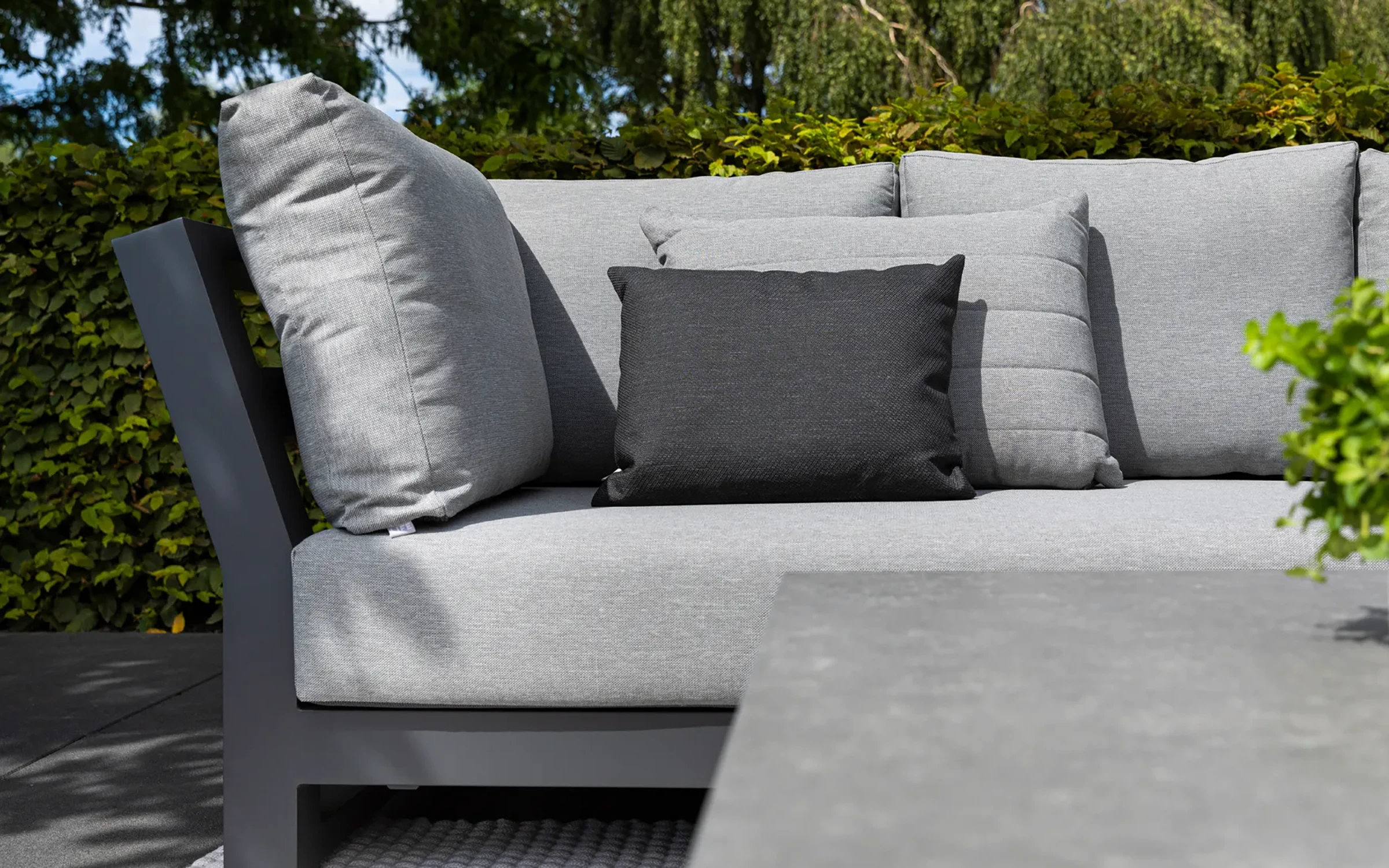 Poduszki Allweather grafitowe są wykonane z grubej, gęstej tekstyliny całkowicie odporne na działanie wody, temperatury i słońca