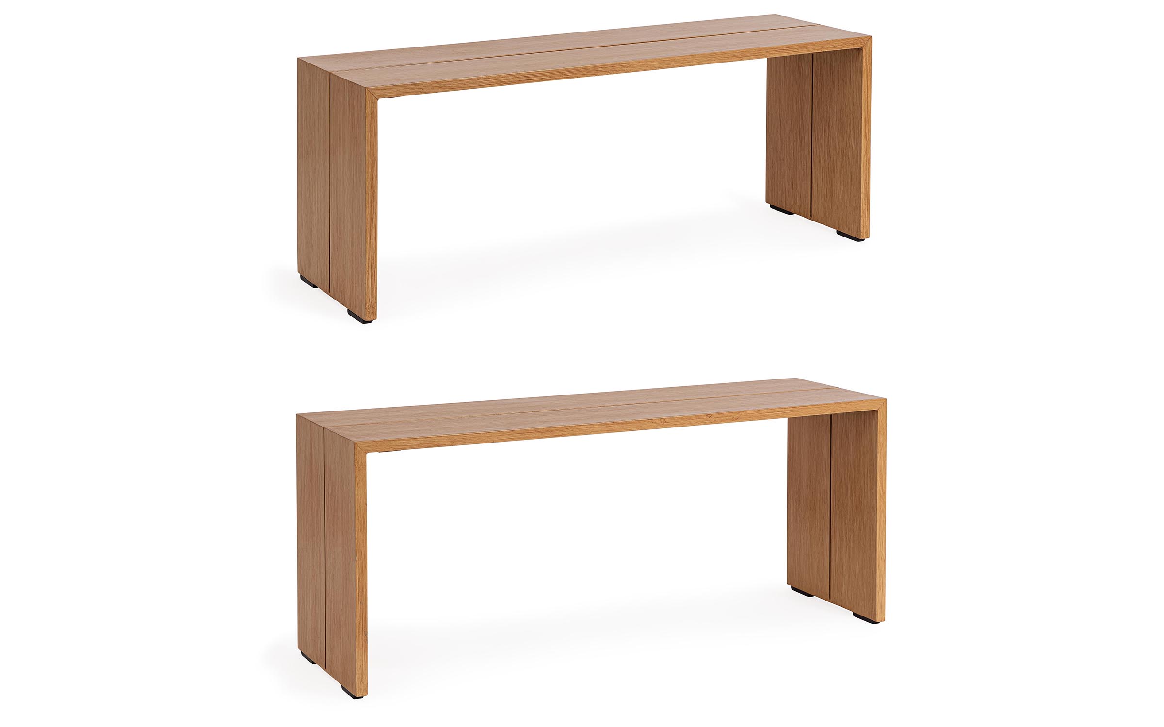 Konstrukcja mebli aluminiowa pokryta powłoką imitującą drewno.