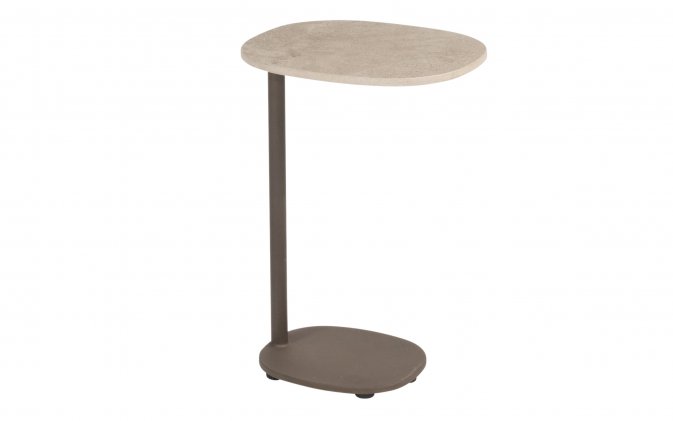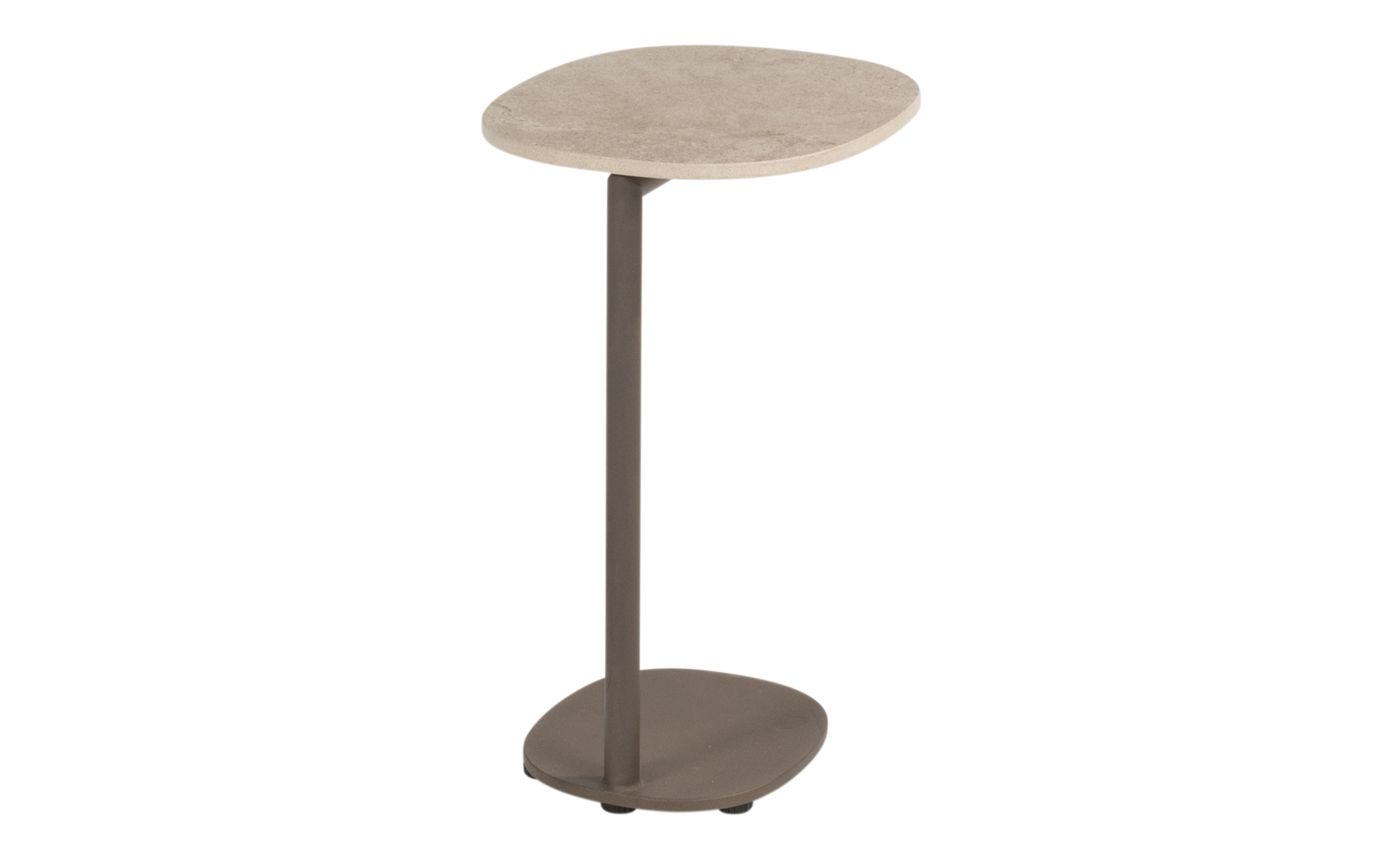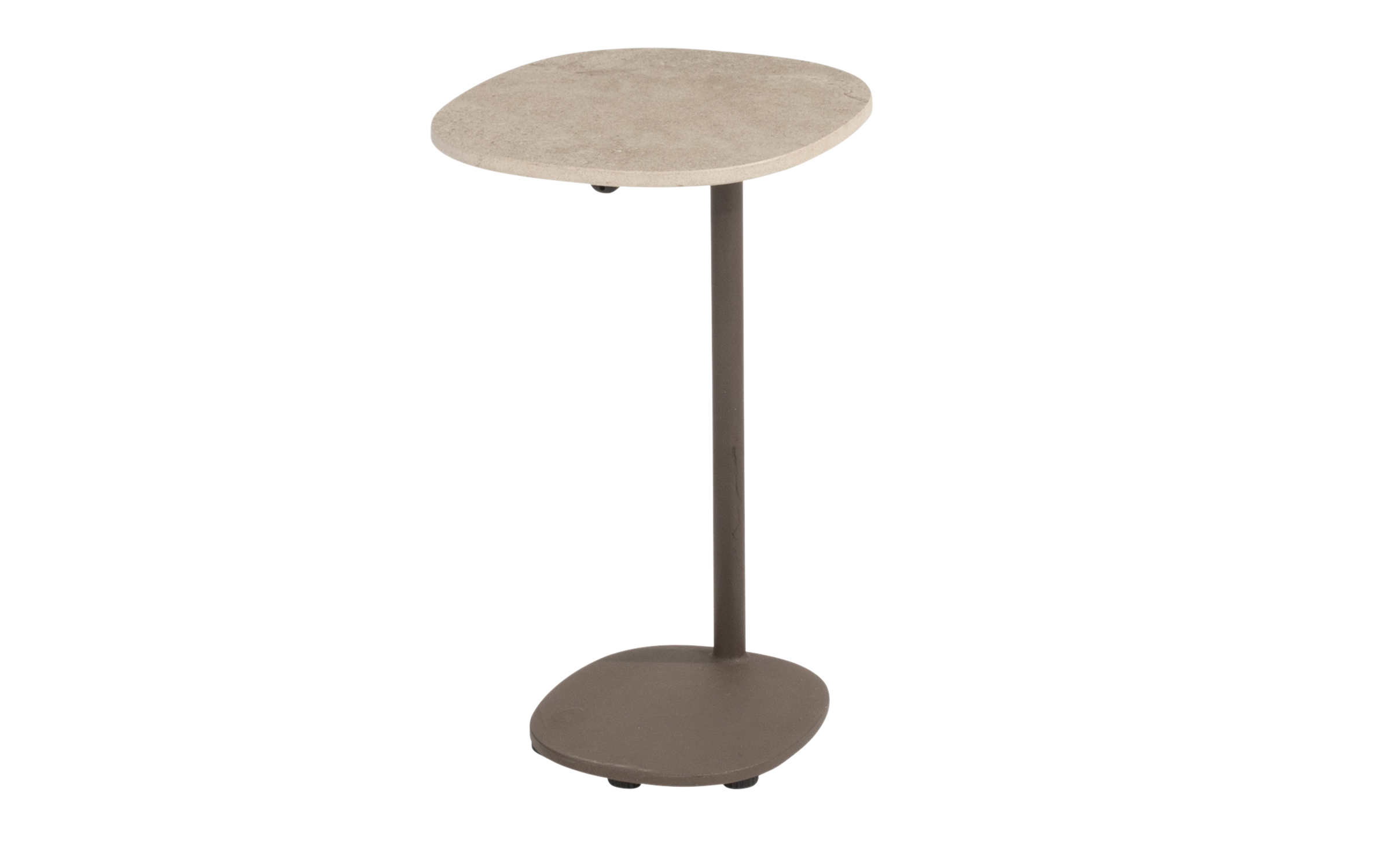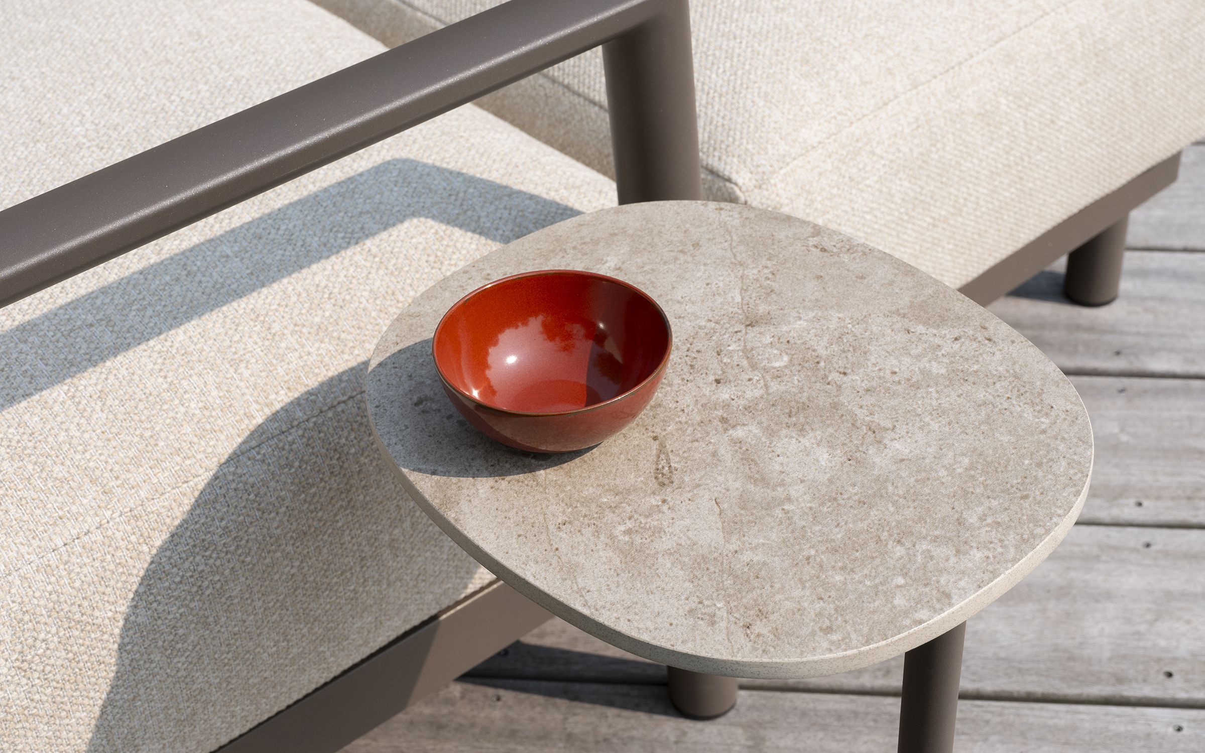 Wnieś styl i funkcjonalność do swojej przestrzeni zewnętrznej dzięki stolikowi bocznemu Sofie z eleganckim ceramicznym blatem w ciepłym kolorze Terre.