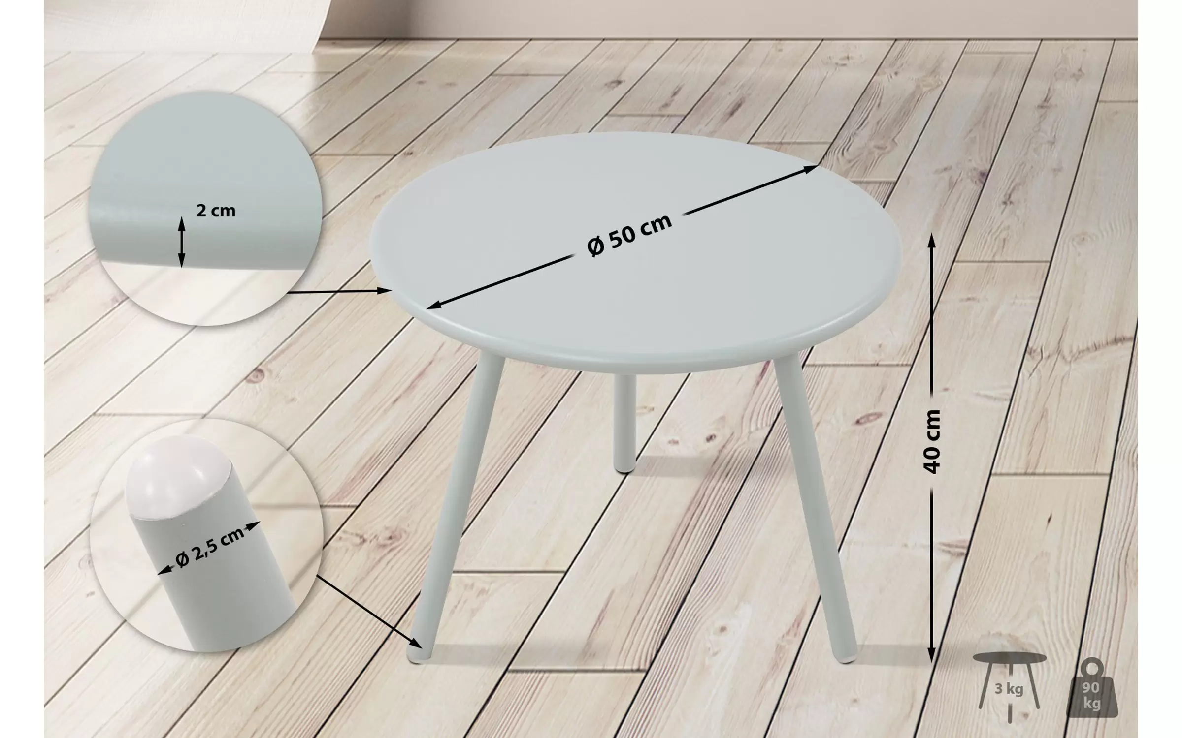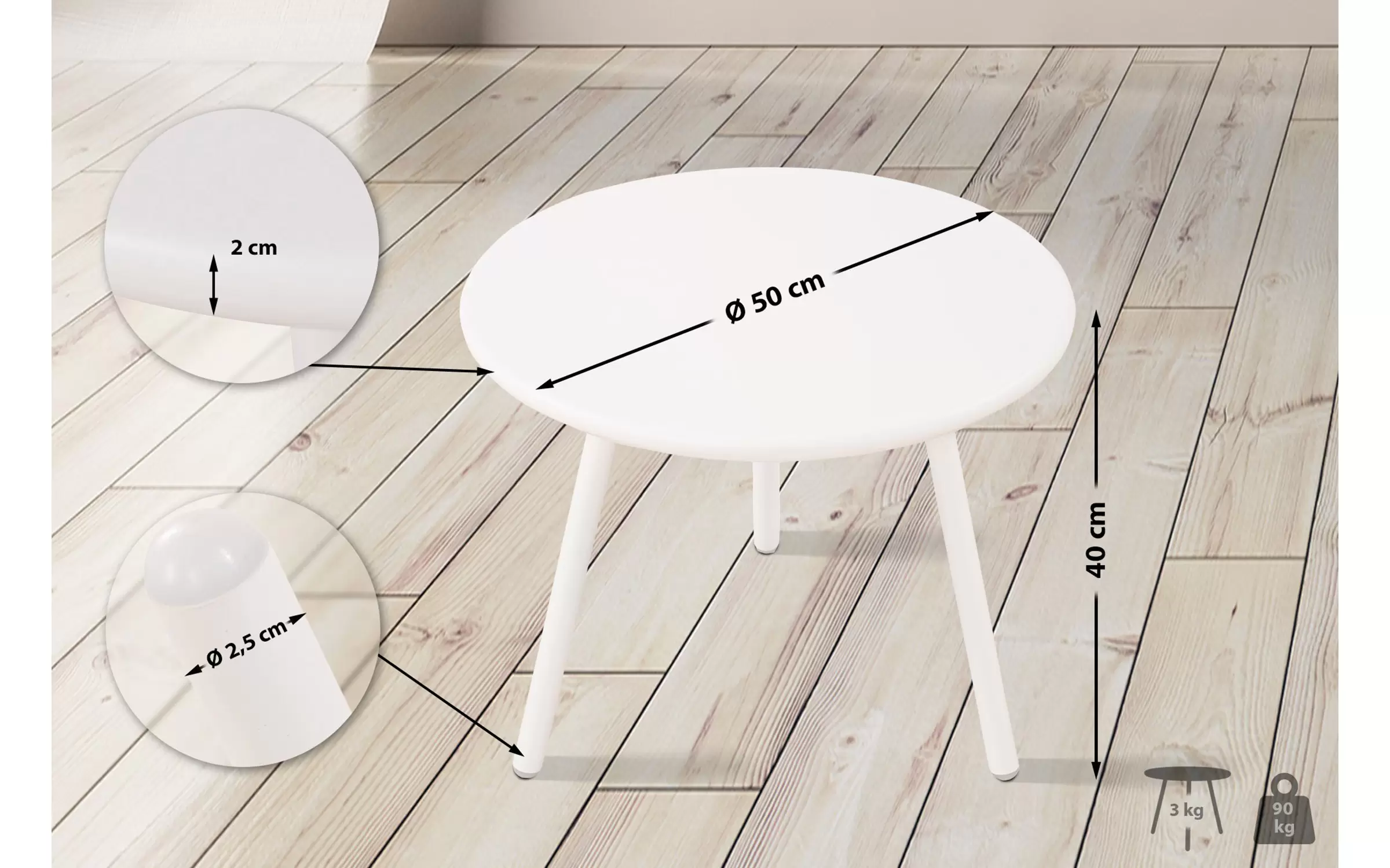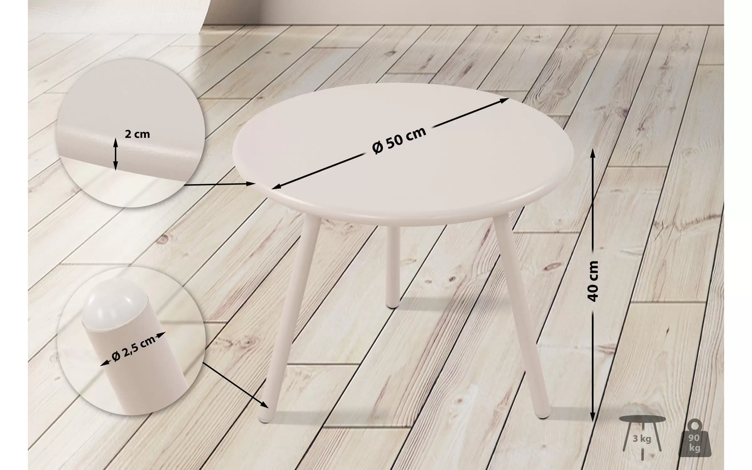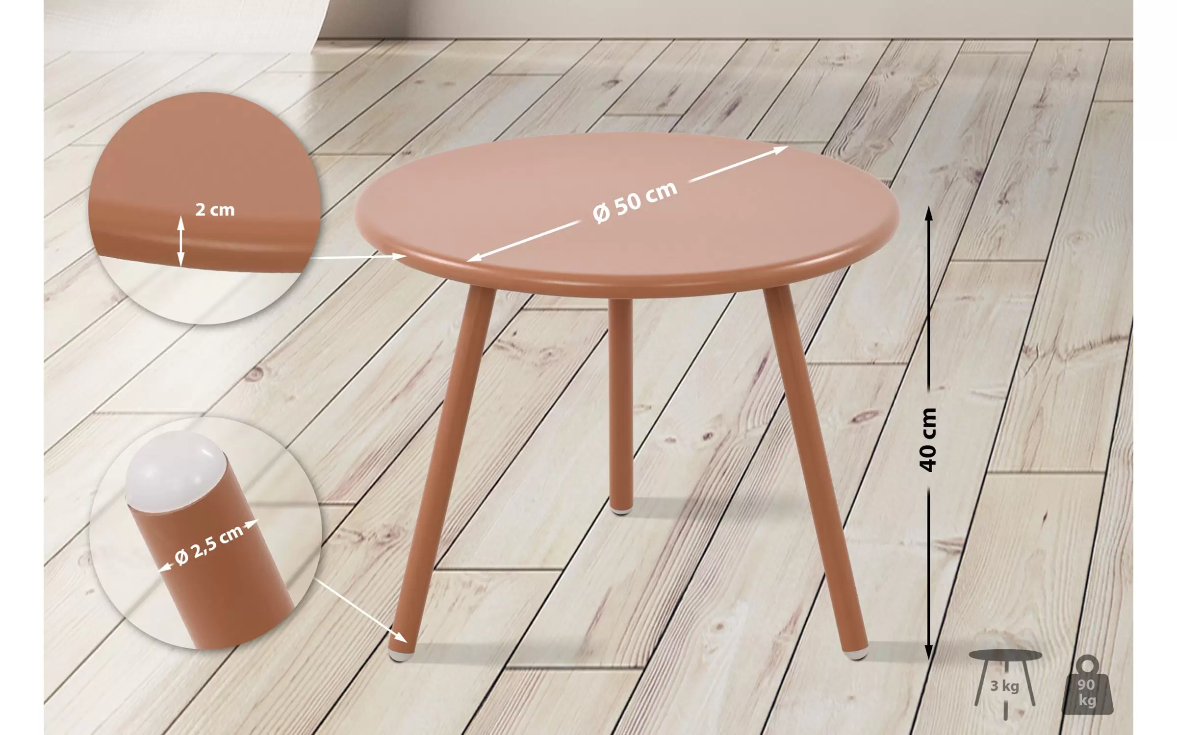rednica nogi stołu: 2,5 cm