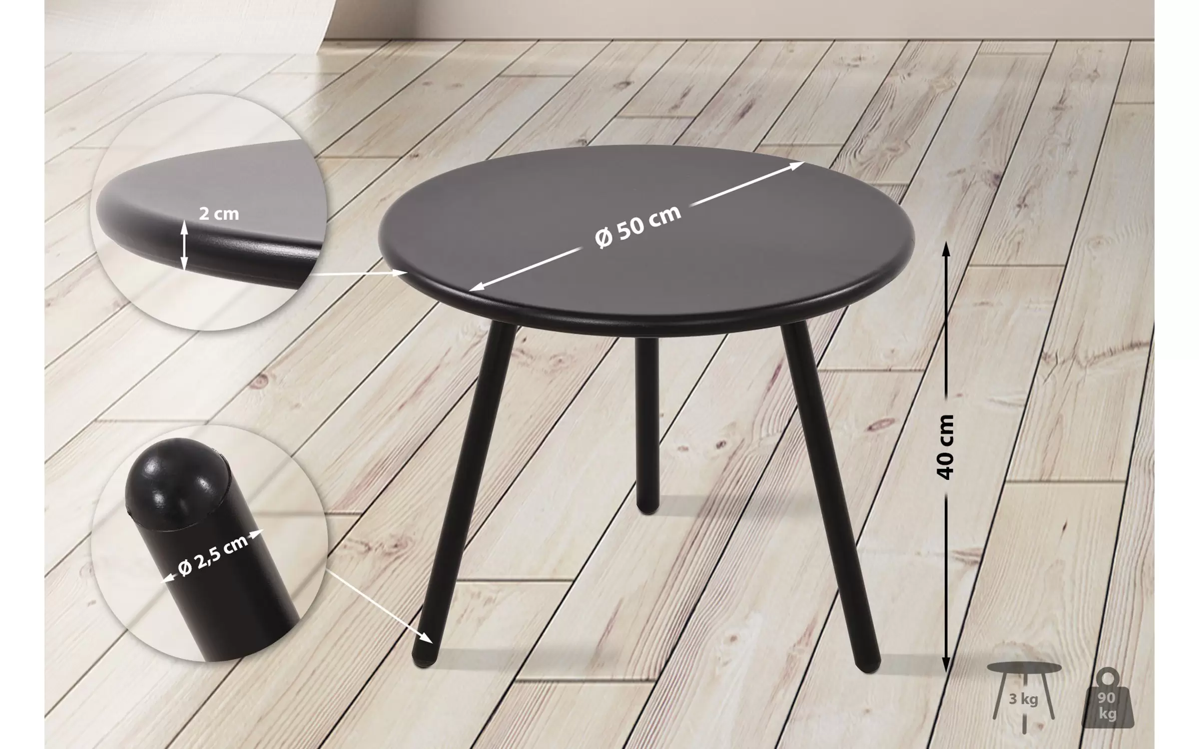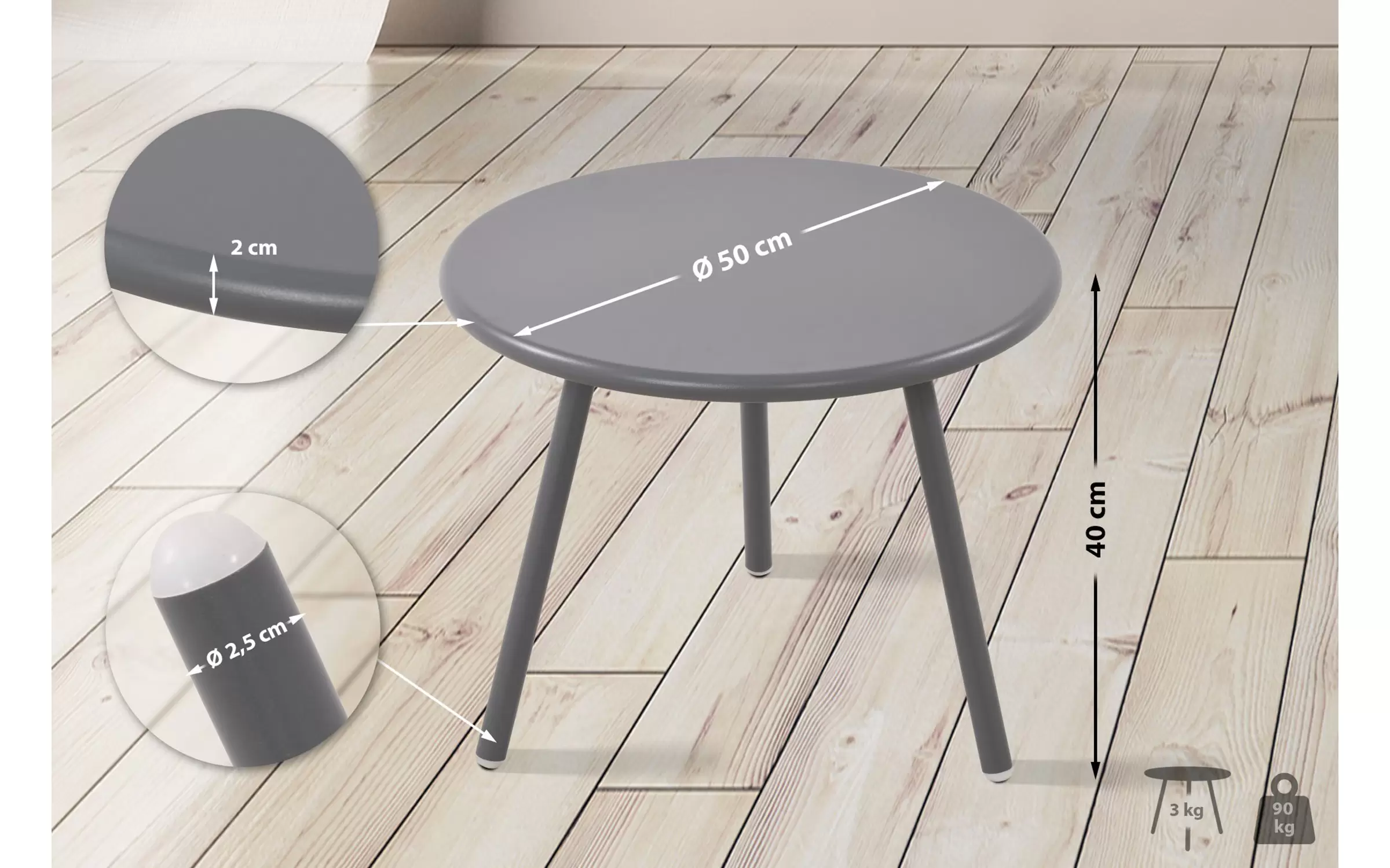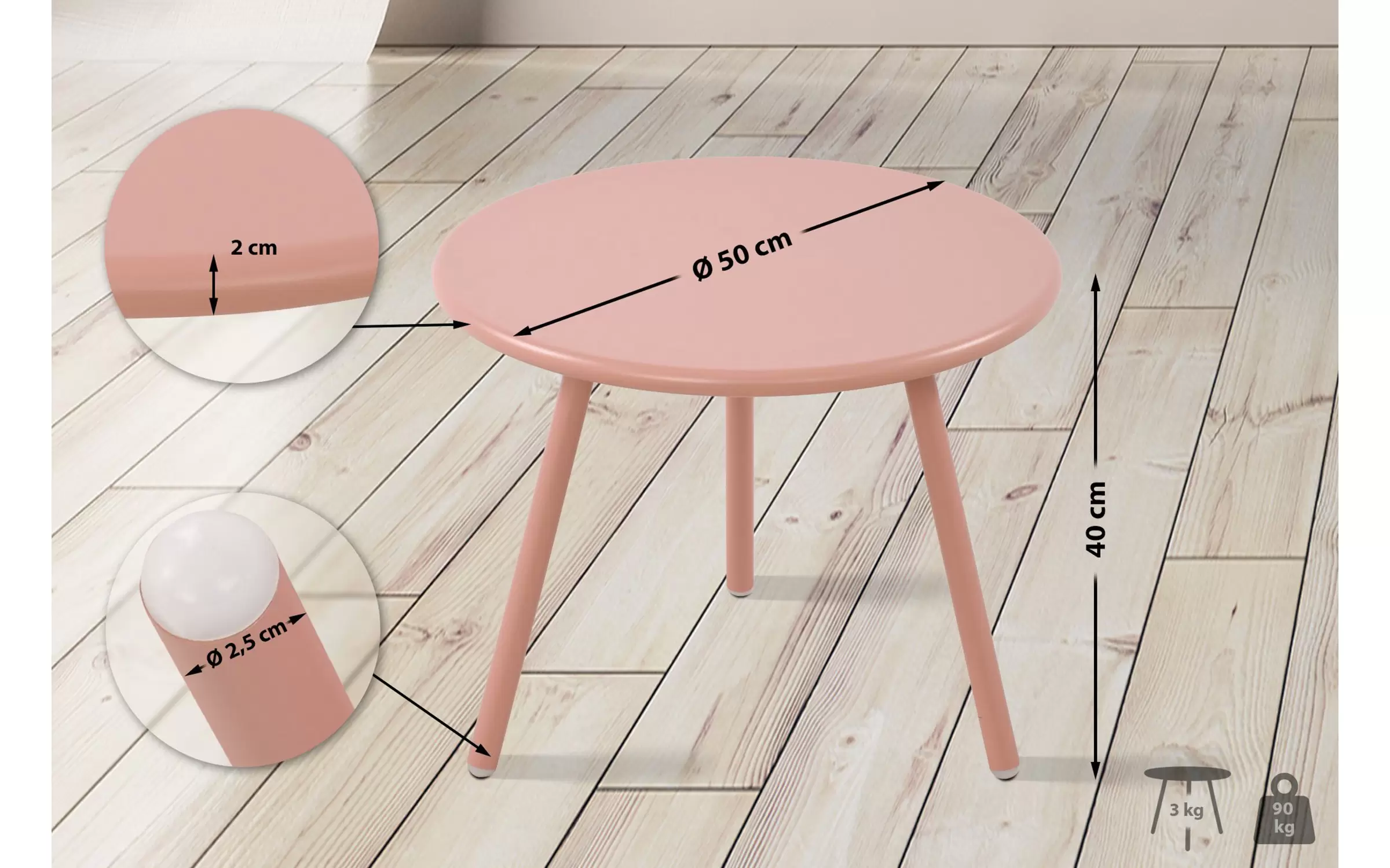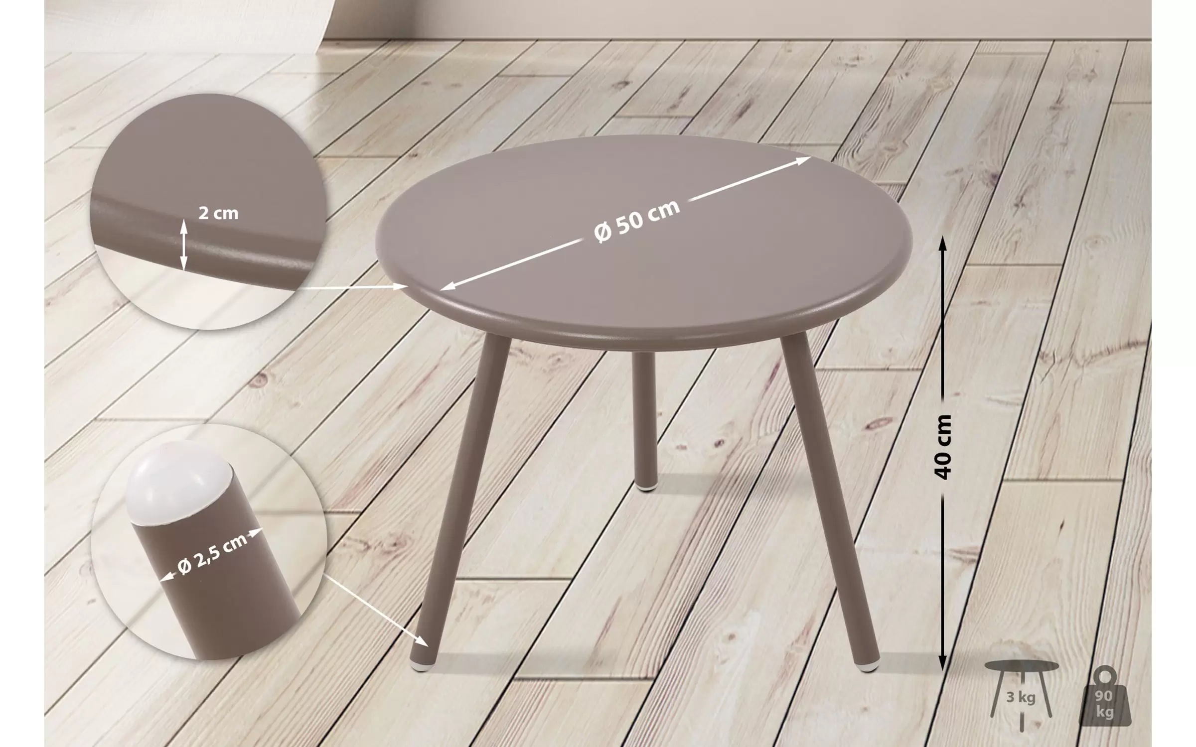 rednica nogi stołu: 2,5 cm