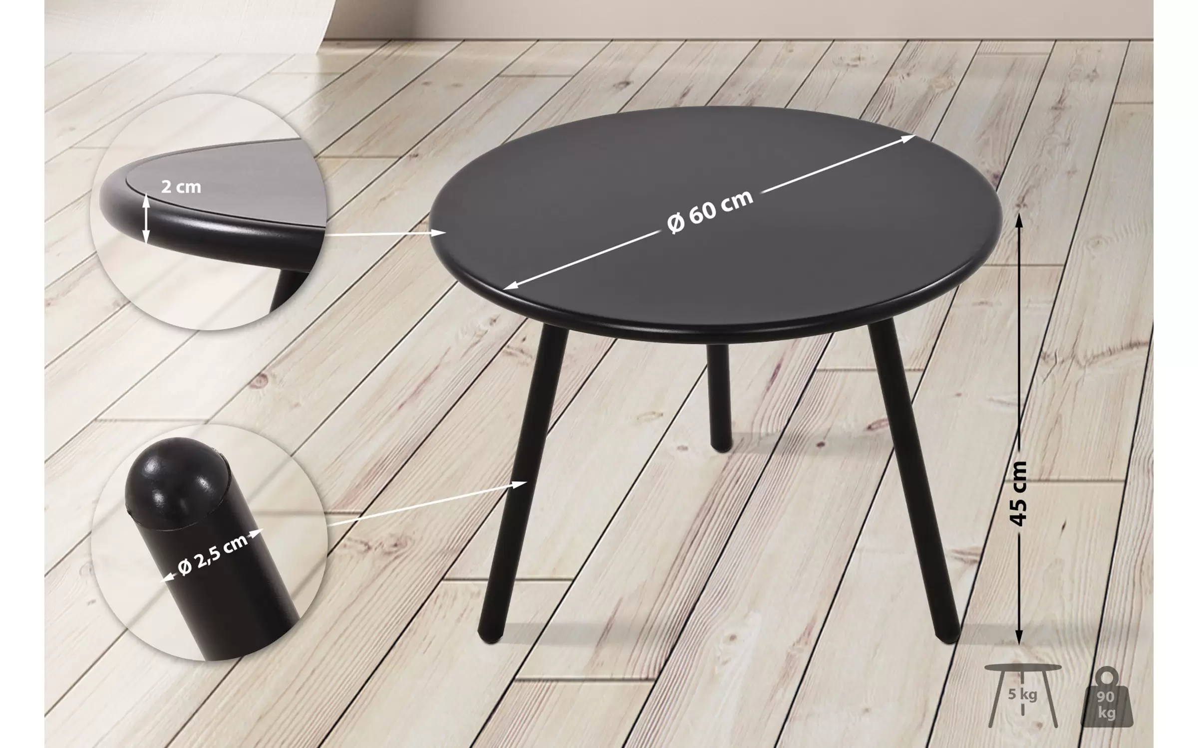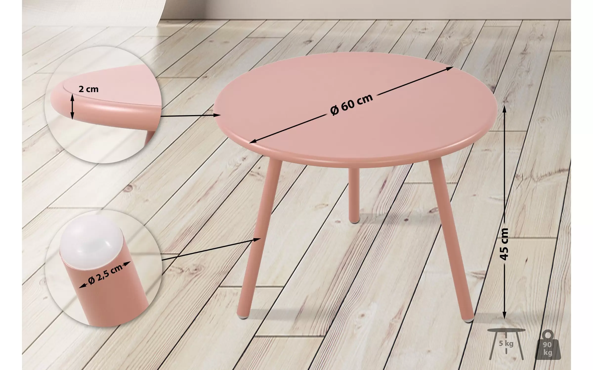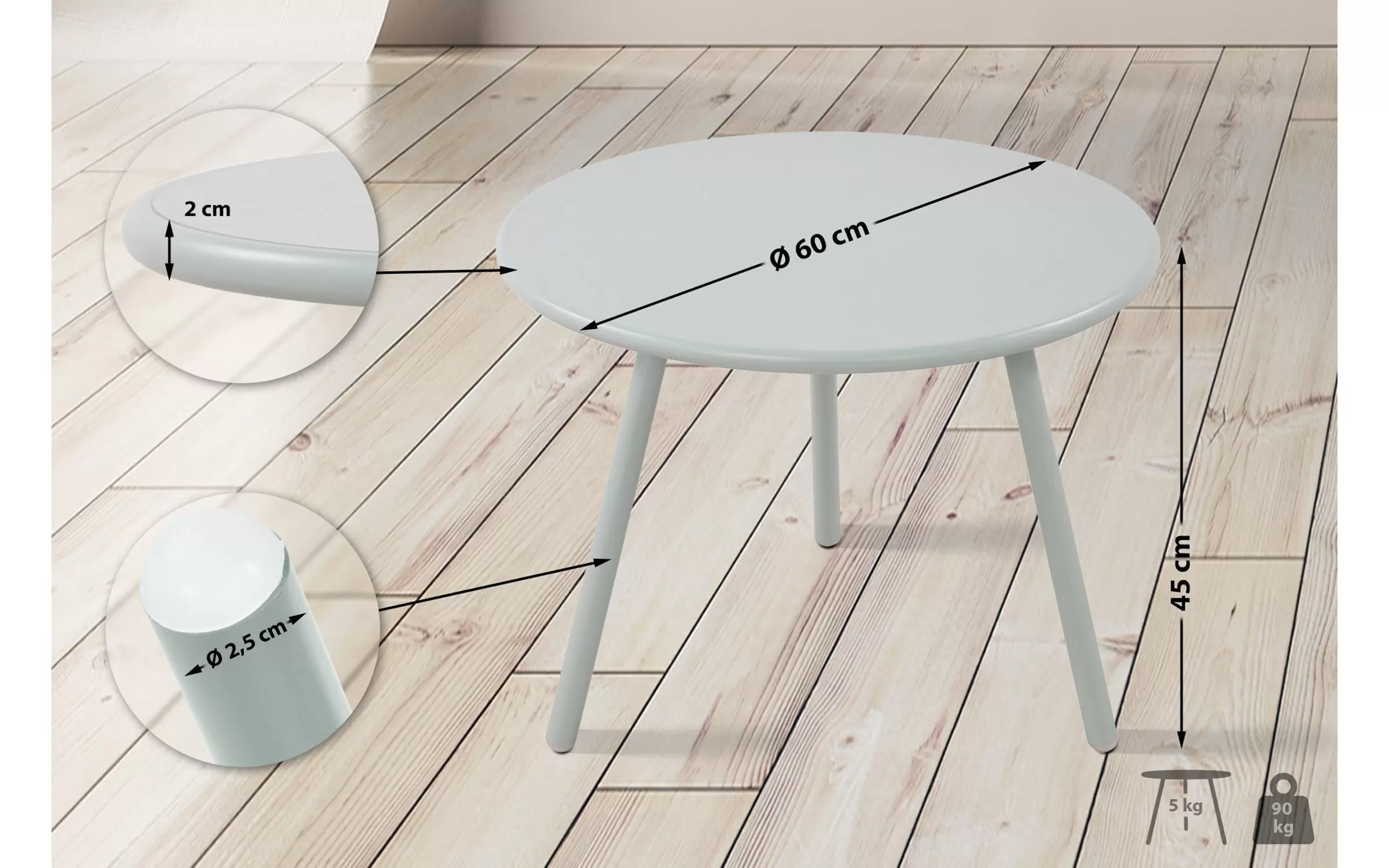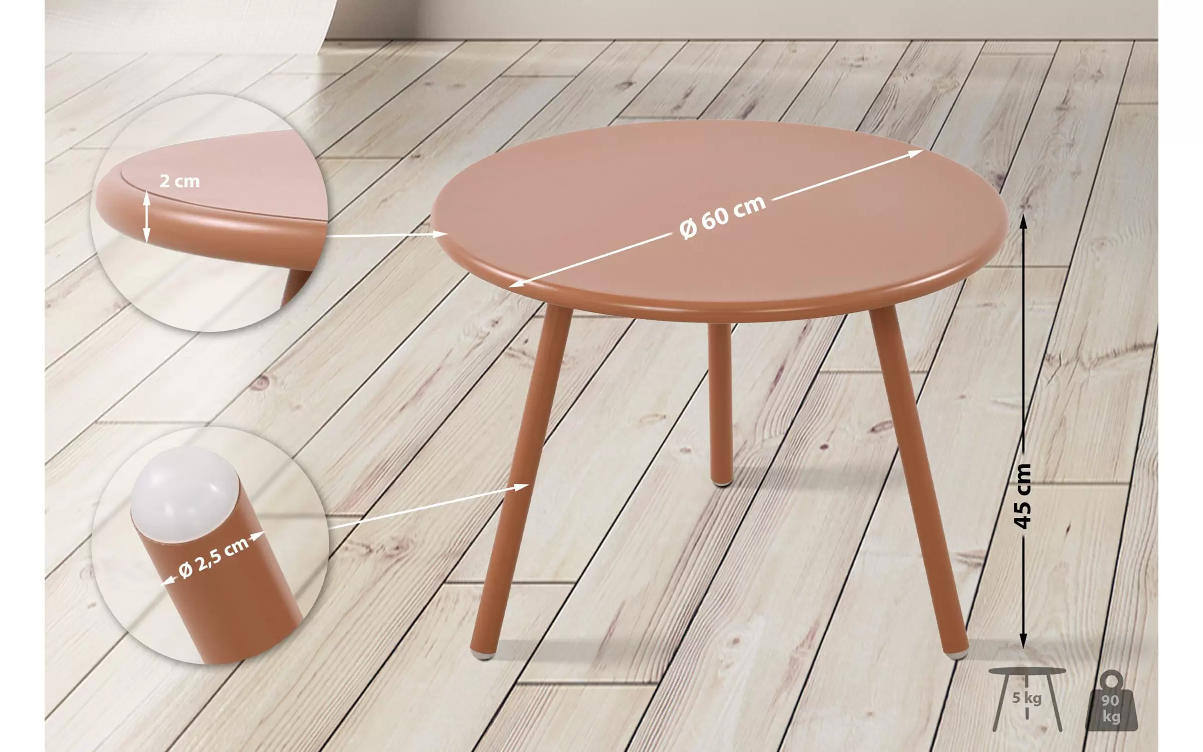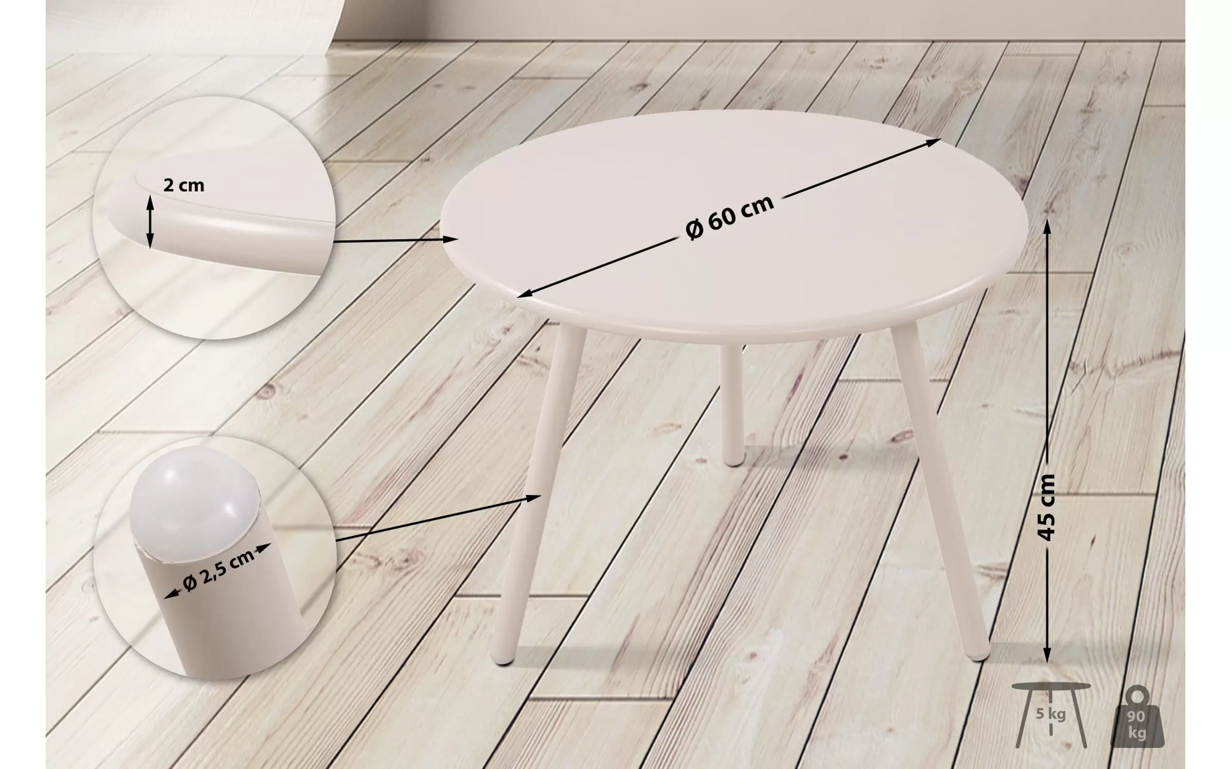 rednica nogi stołu: 2,5 cm