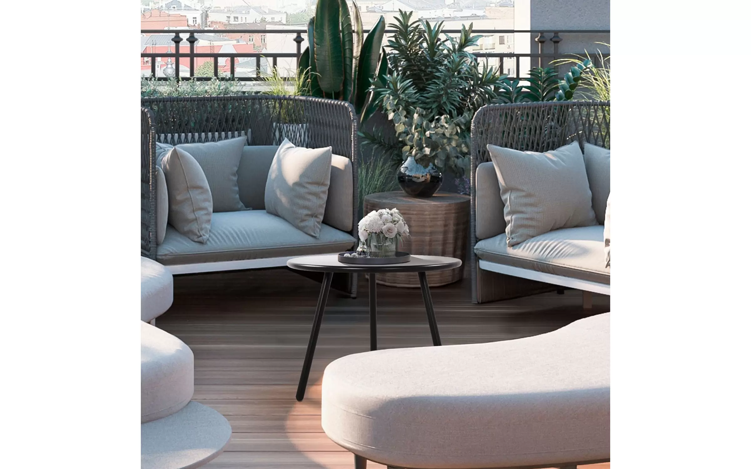 Wykonany z materiałów odpornych na warunki atmosferyczne, stolik kawowy Velva może być używany nie tylko w pomieszczeniach, ale także na zewnątrz. Stolik stanowi świetny wybór jako stół ogrodowy, na taras, balkon oraz w kąciku wypoczynkowym, ale doskonale sprawdzi się również jako stół pomocniczy w salonie.
