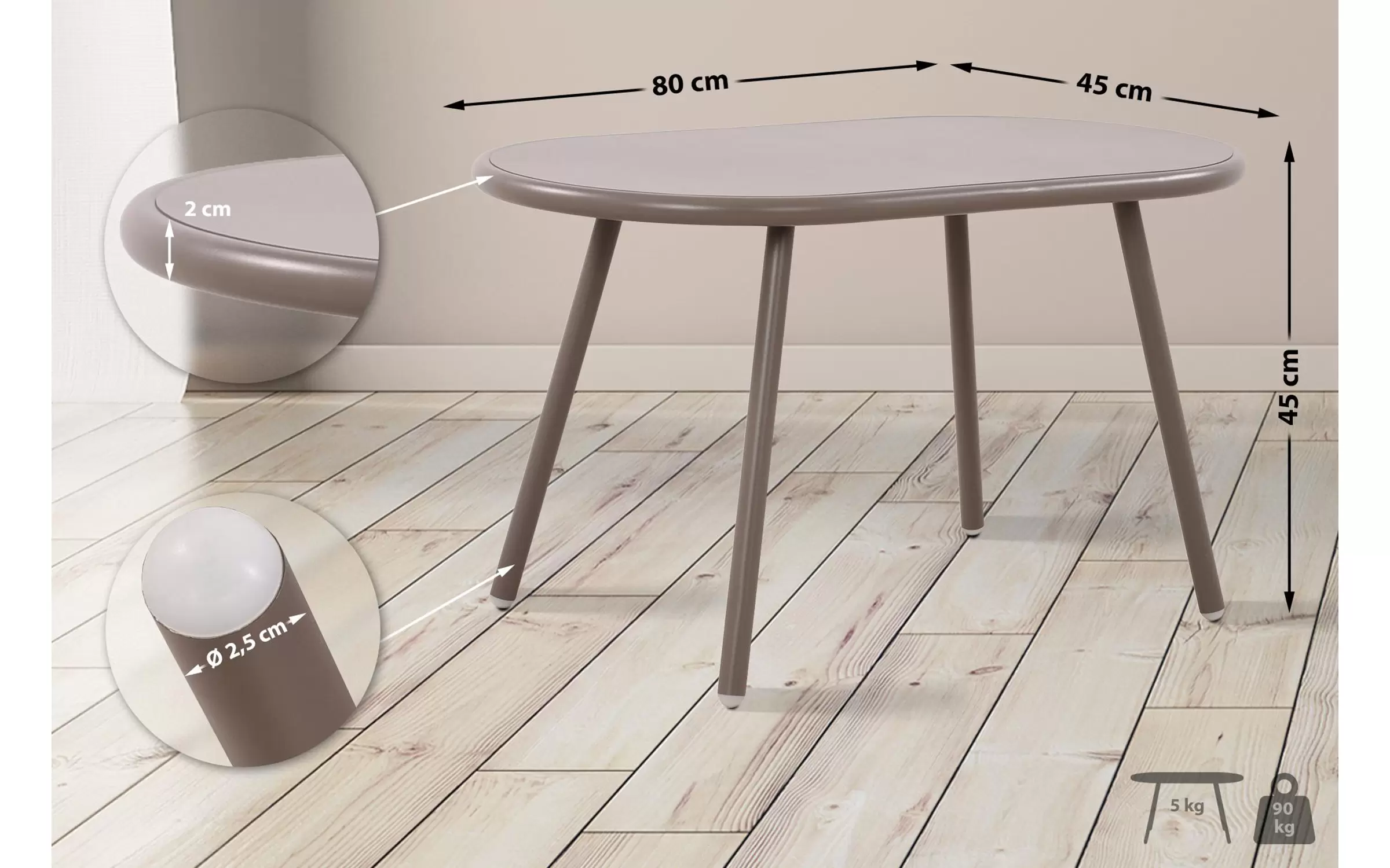 Nogi stołu wykonane są z metalu, który chroniony jest przed korozją dzięki procesowi E-Coating, co sprawia, że jest odporny na rdzewienie.