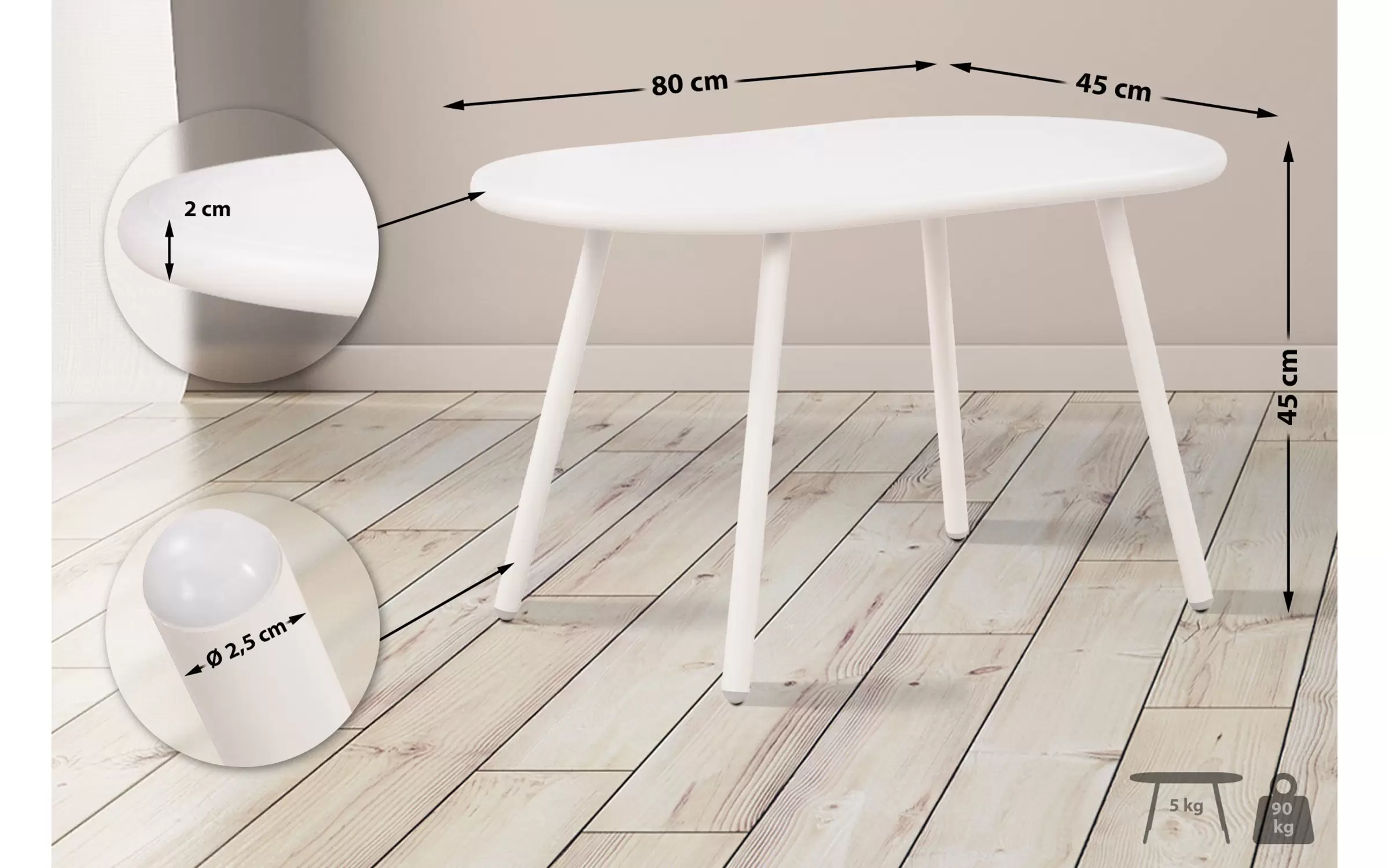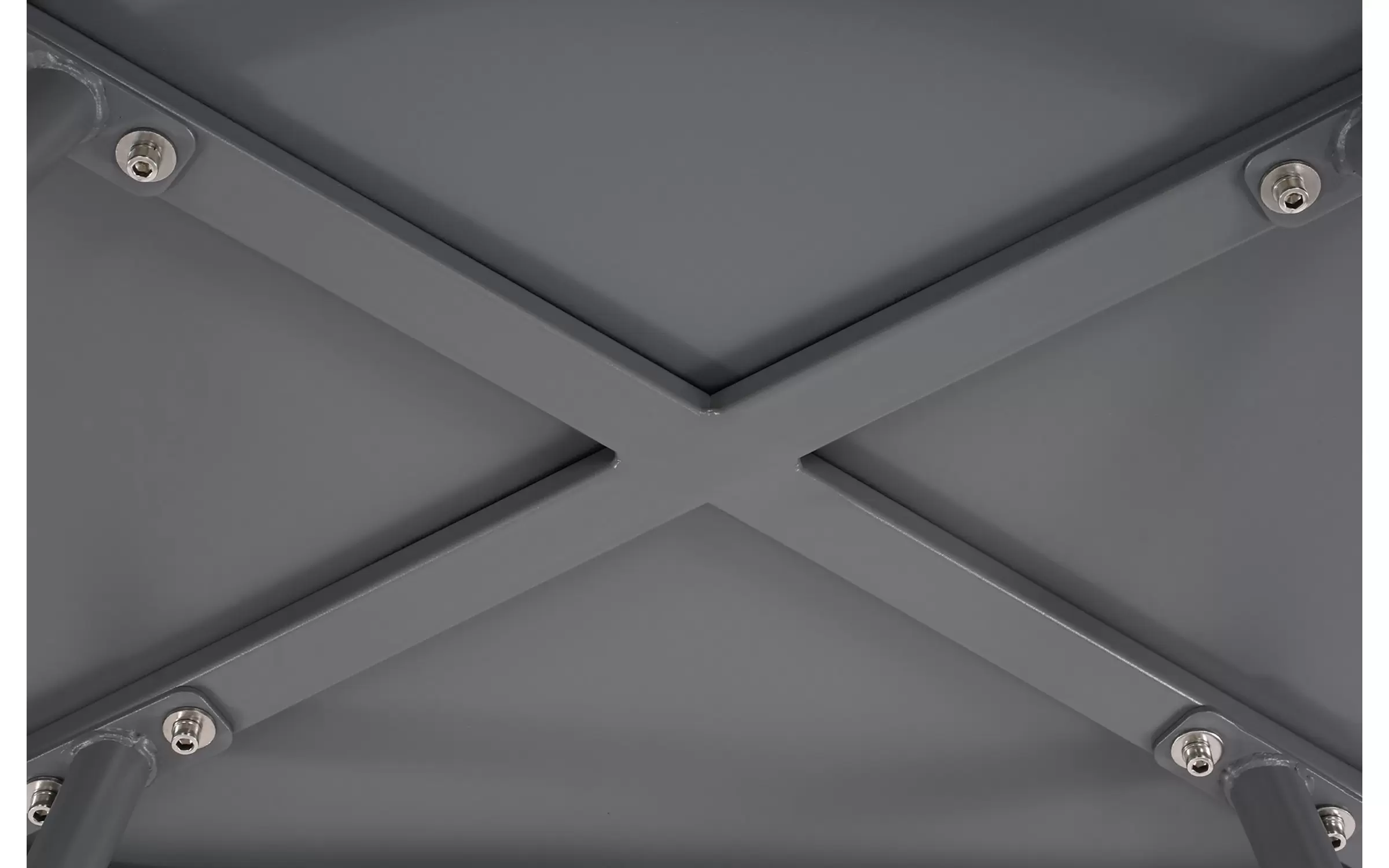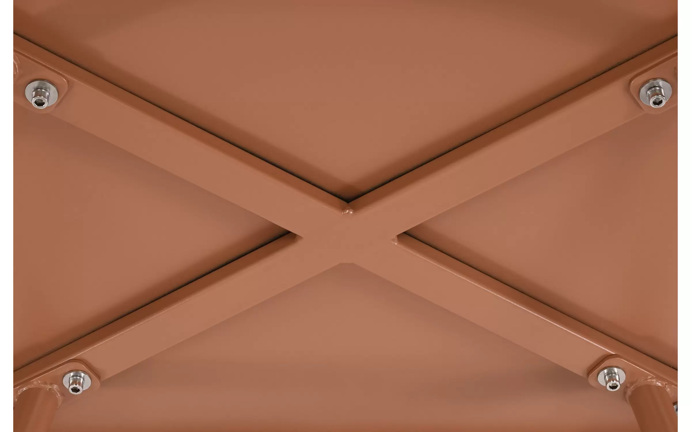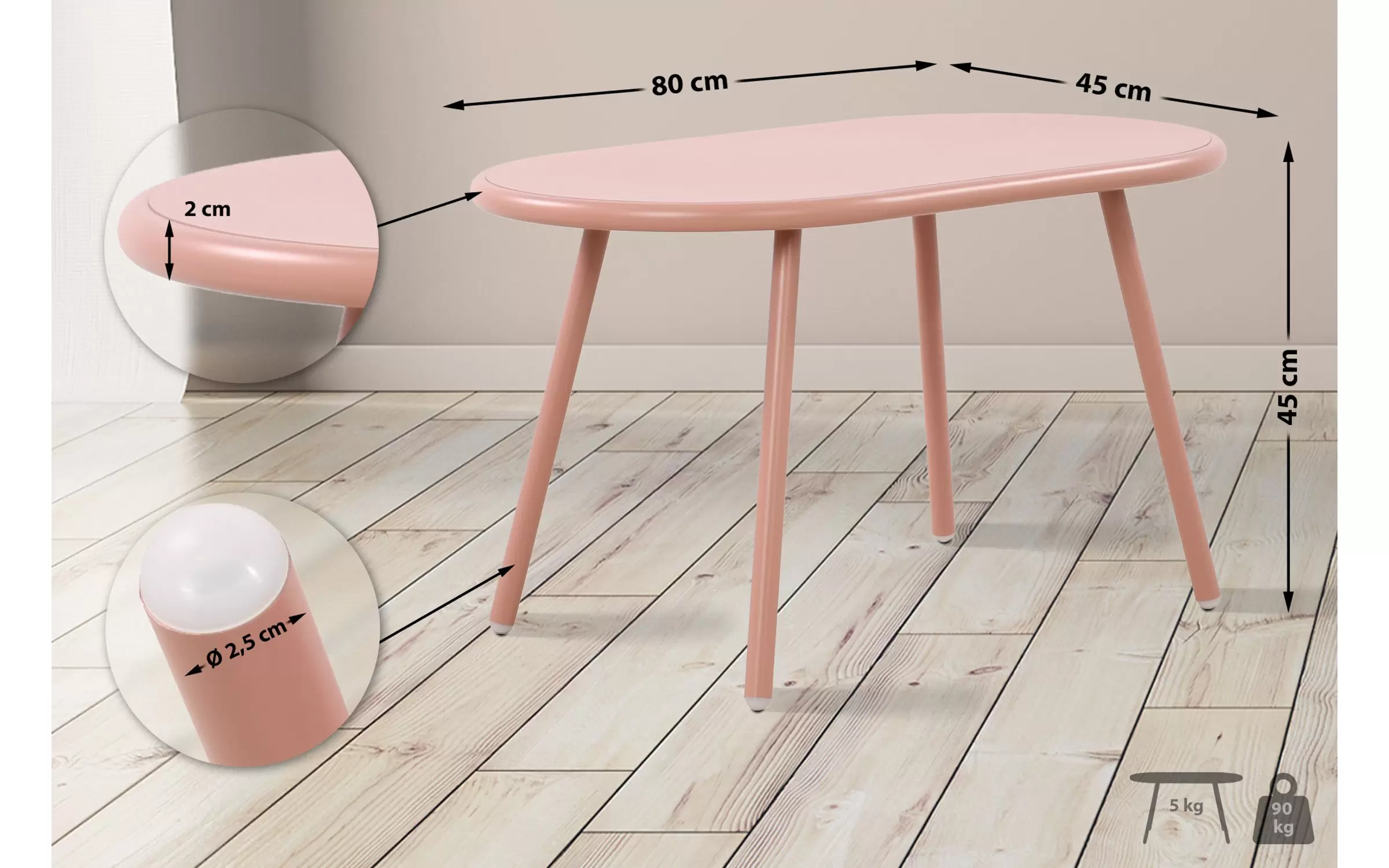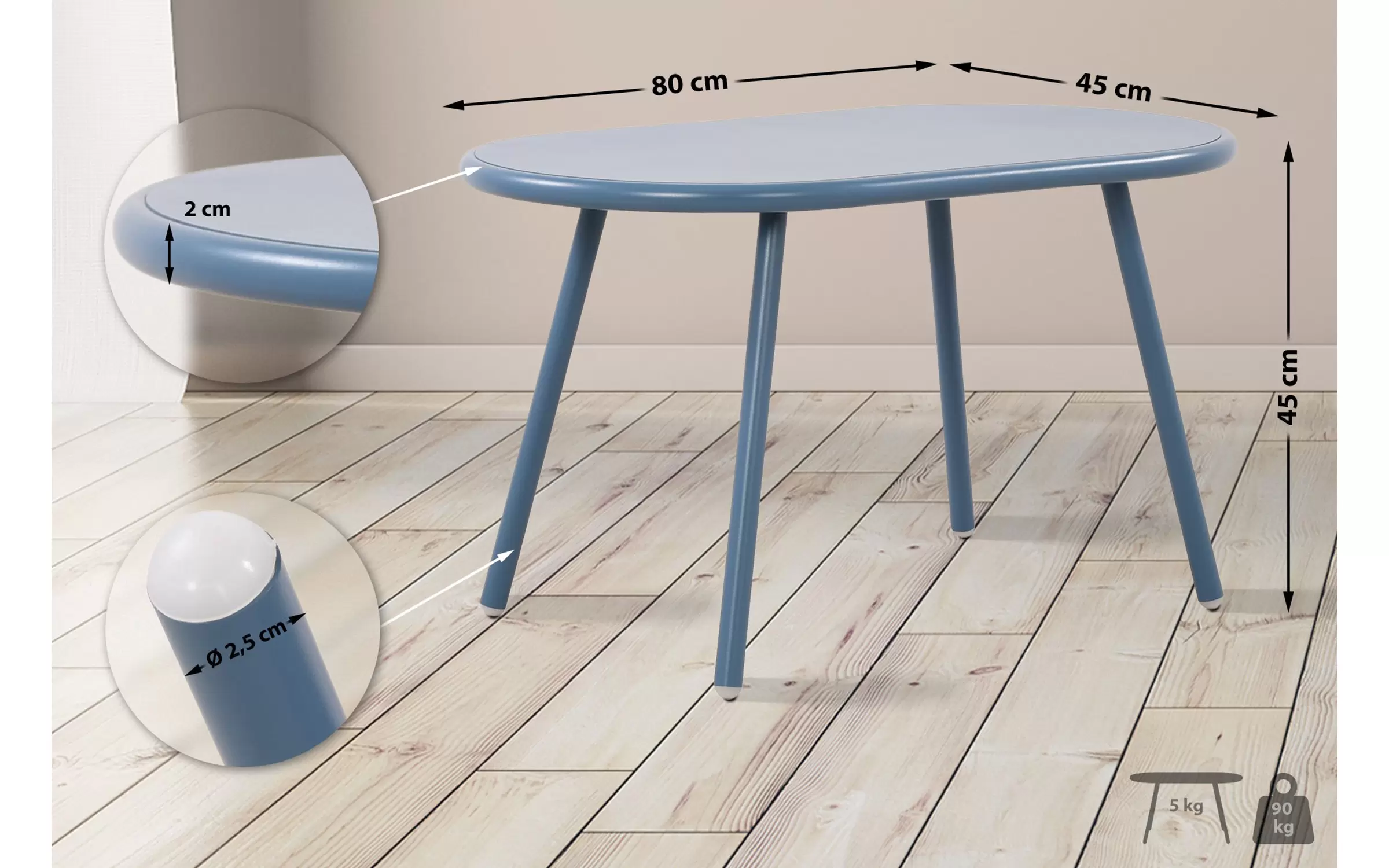 Nogi stołu wykonane są z metalu, który chroniony jest przed korozją dzięki procesowi E-Coating, co sprawia, że jest odporny na rdzewienie.
