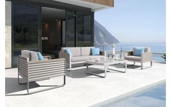 Kolekcja AIRPORT wykonana jest z profili aluminiowych, natomiast boki wykonano ze starannie wykończonej grubej blachy falistej. Całość tworzy niepowtarzany styl i poczucie premium nowoczesnej wygody na tarasie.