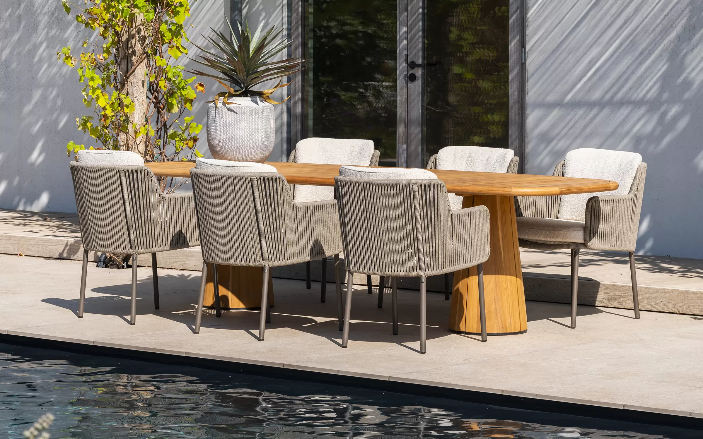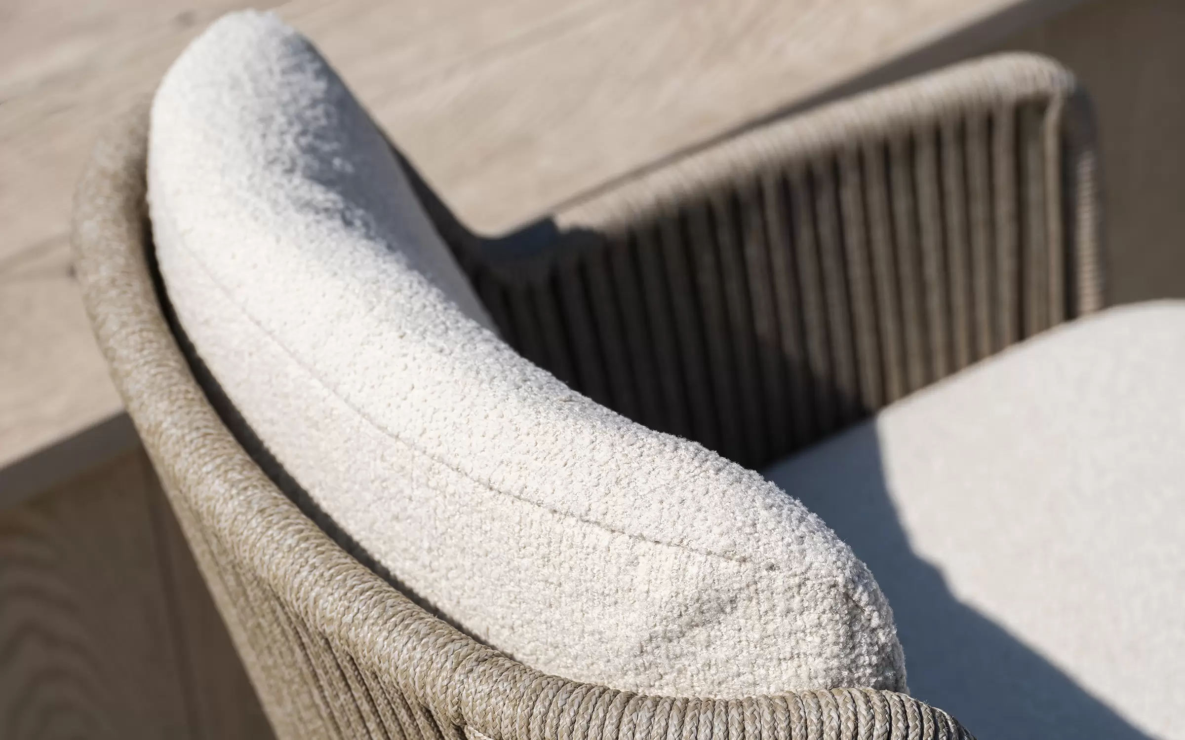 Krzesło do jadalni Bernini firmy 4 Seasons Outdoor to modny element przyciągający wzrok dzięki pięknym okrągłym kształtom i wyrafinowanemu wykorzystaniu kolorów. Krzesło do ogrodowej jadalni Bernini jest odporne na warunki atmosferyczne, trwałe i doskonale komponuje się z większością stołów i zestawów wypoczynkowych.