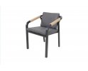 Aluminiowe krzesło stołowe ogrodowe z poduszkami na siedzisku i oparciu. Oparcie i podłokietniki oplecione technorattanem.