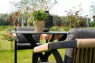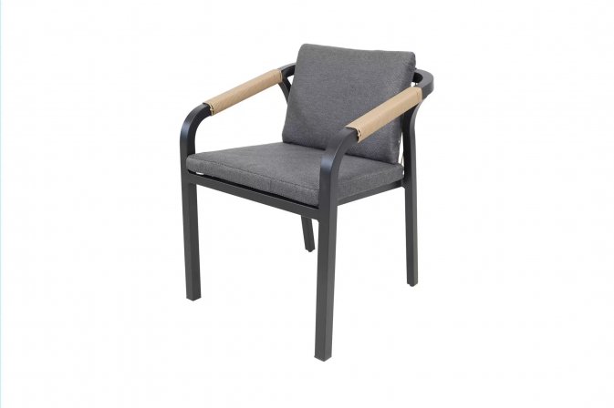 Aluminiowa konstrukcja malowana proszkowo w kolorze antracyt. Podłokietniki oplecione technorattanem.