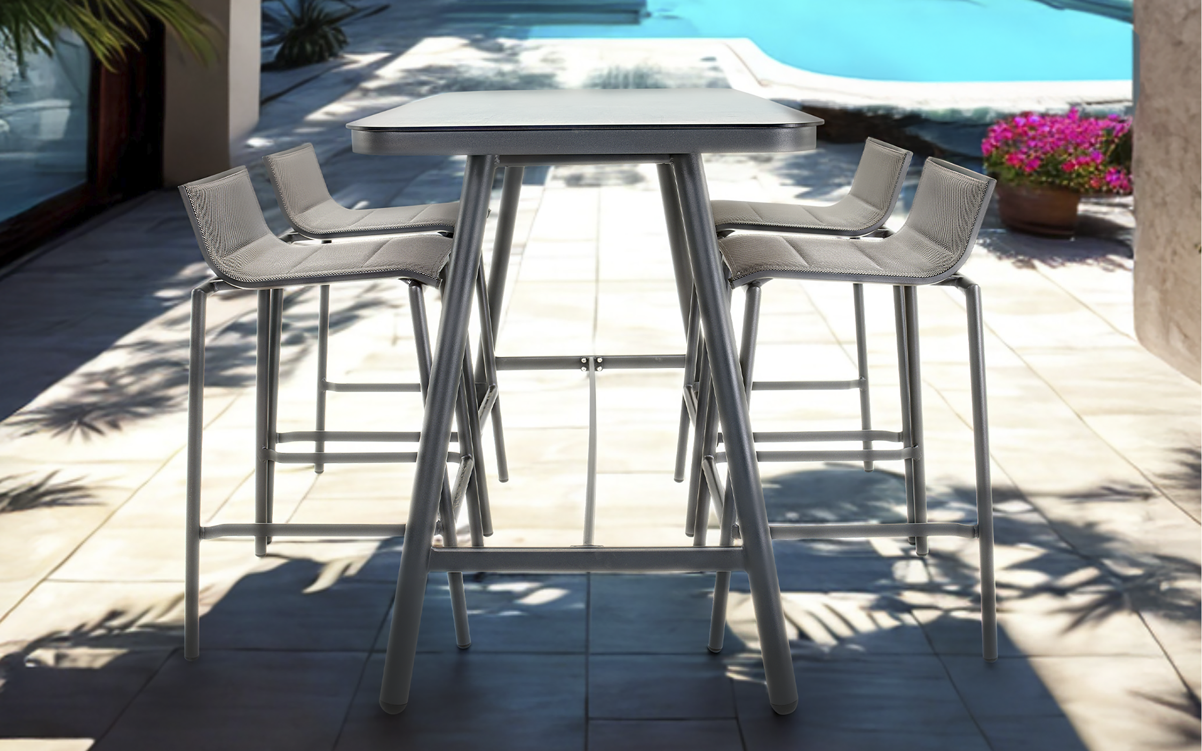 4x Hoker ogrodowy MILAZZO aluminium antracyt siedzisko z oparciem