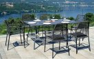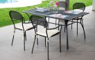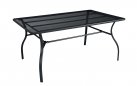 Duży stół ogrodowy wykonany z trwałego metalu z powłoką antykorozyjną. Idealny do użytku na tarasie, w ogrodzie lub na patio. Kolor antracytowy pasuje do nowoczesnych aranżacji zewnętrznych. Blat z siatką metalową zapewnia lekkość wizualną i odporność na warunki atmosferyczne.
