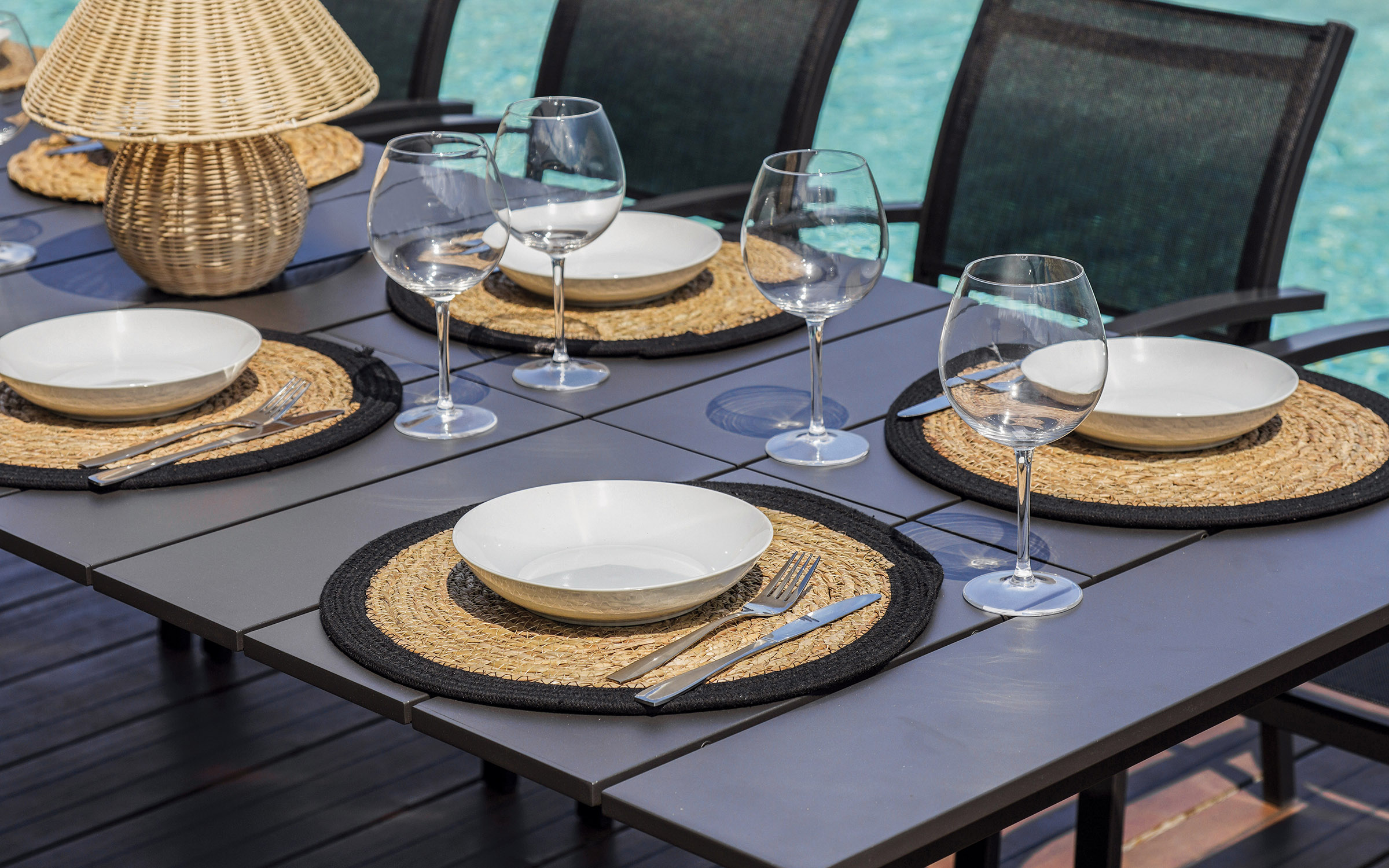 - 1× rozkładany stół ogrodowy aluminiowy 165–250×90 cm