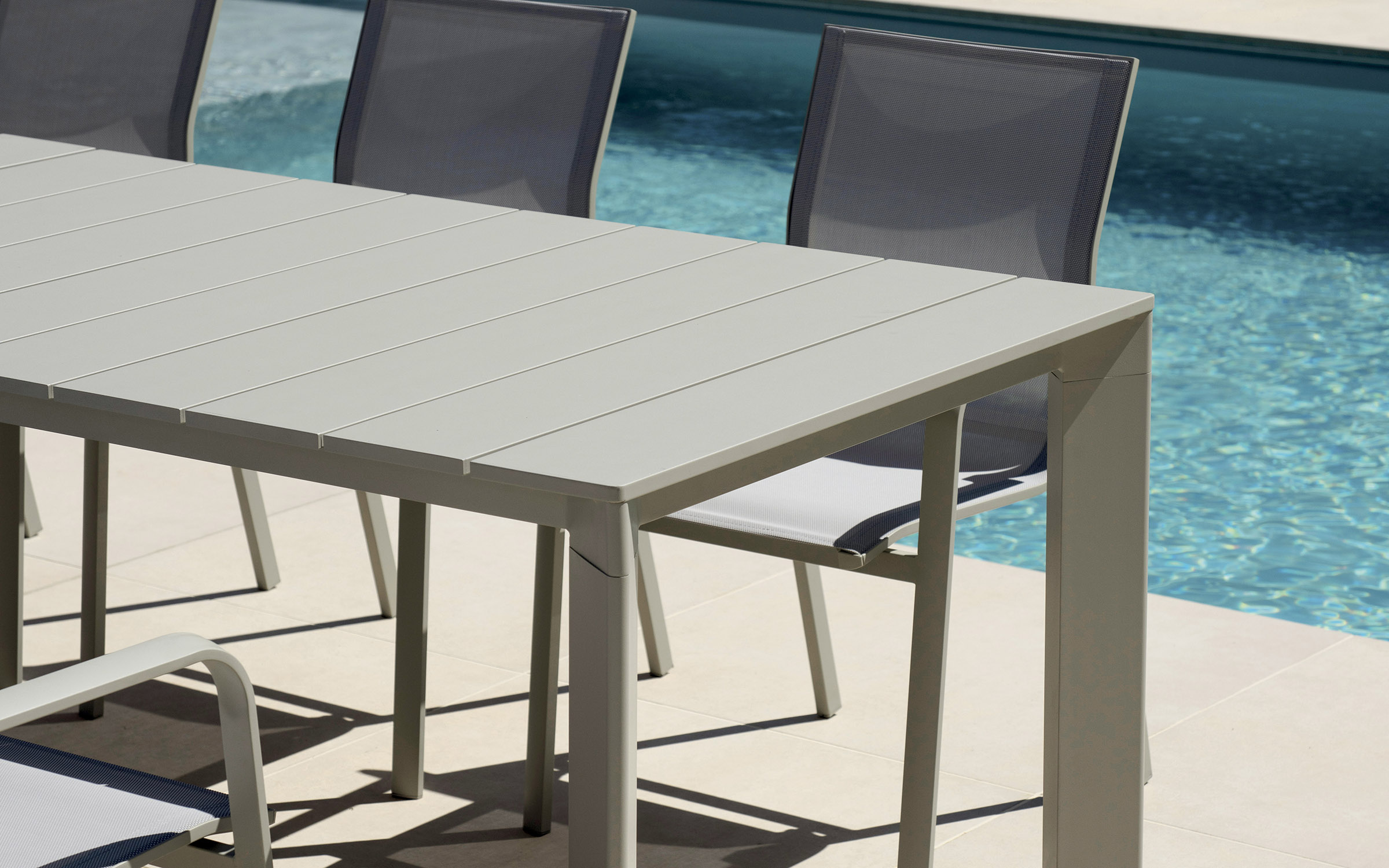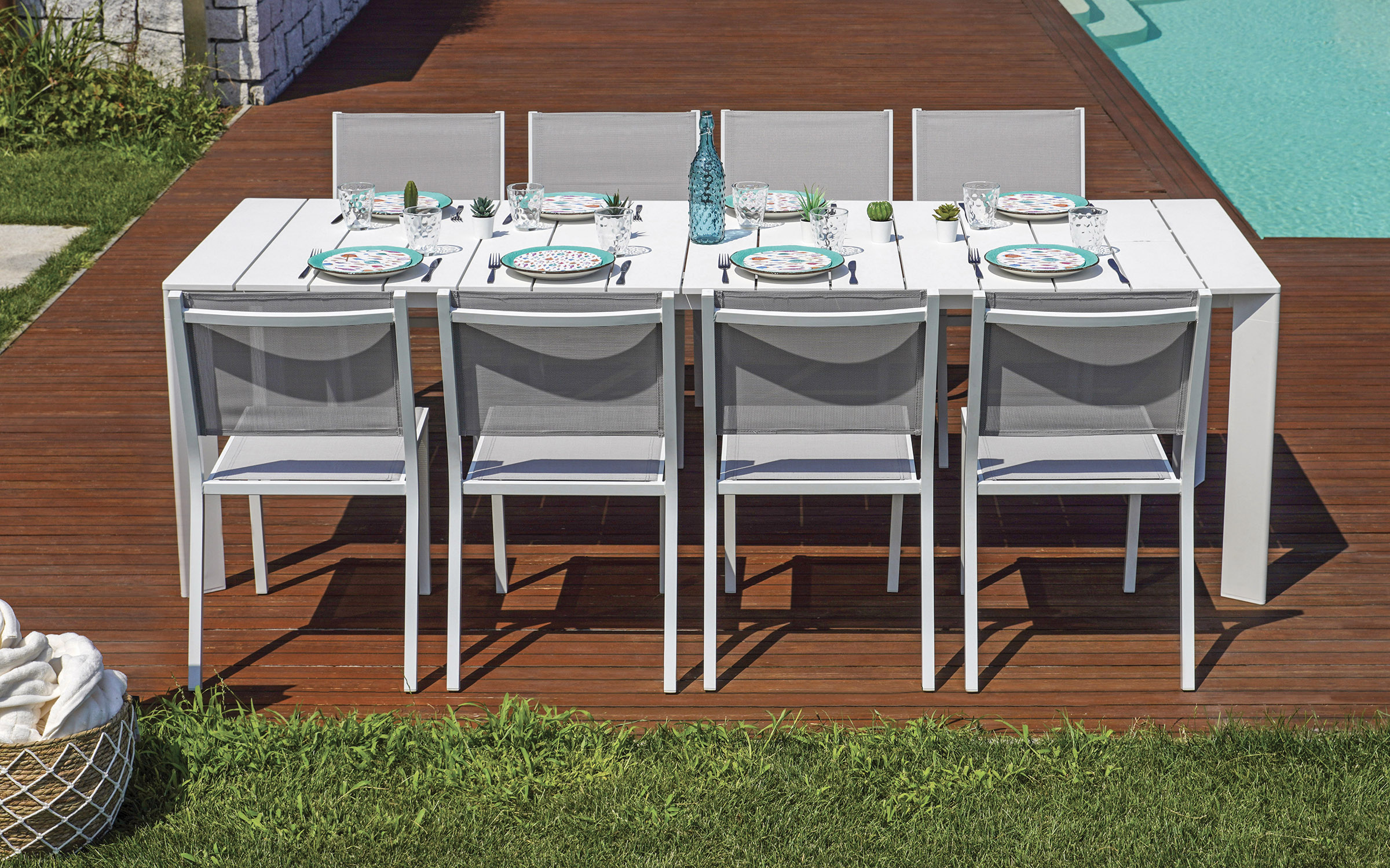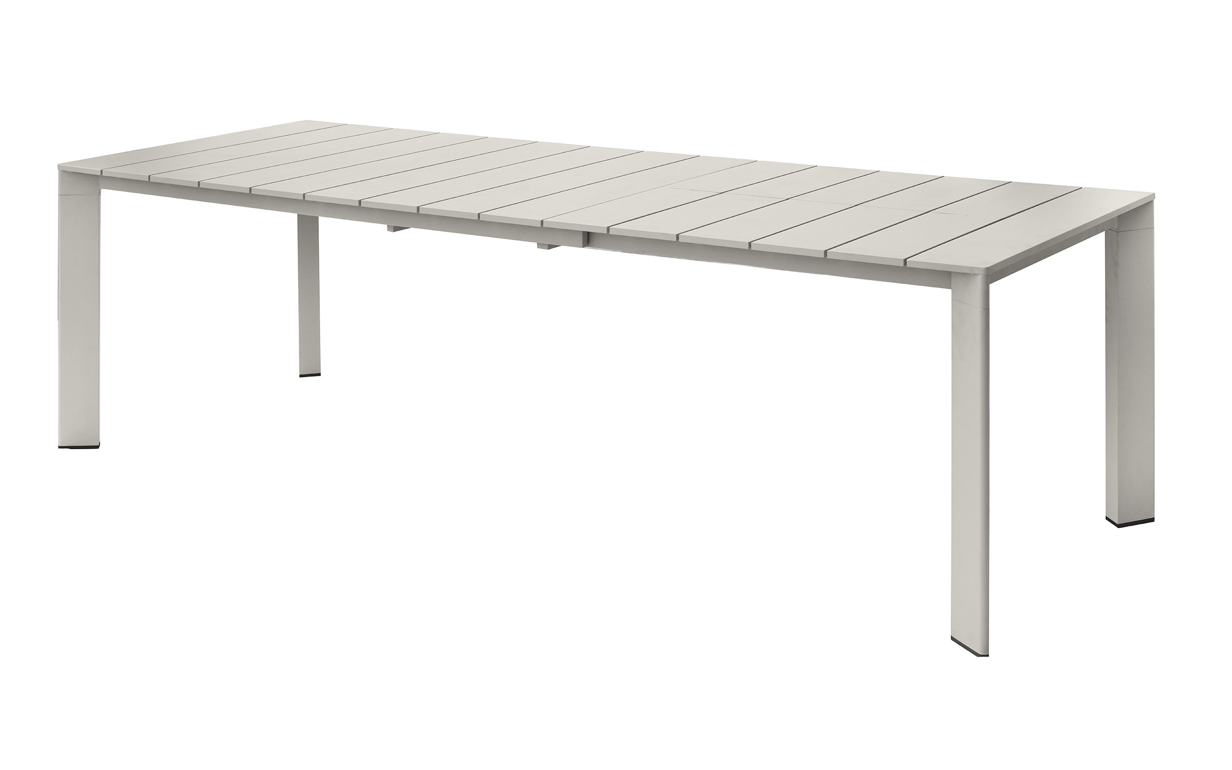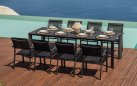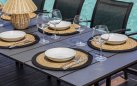 Funkcjonalny stół ogrodowy rozkładany z aluminiową konstrukcją malowaną proszkowo. Dzięki systemowi rozsuwania blat można wydłużyć z 165 do 250 cm, co pozwala wygodnie pomieścić od 6 do 8 osób. Doskonały wybór na taras, balkon lub do ogrodu. Dostępny w trzech wersjach kolorystycznych: