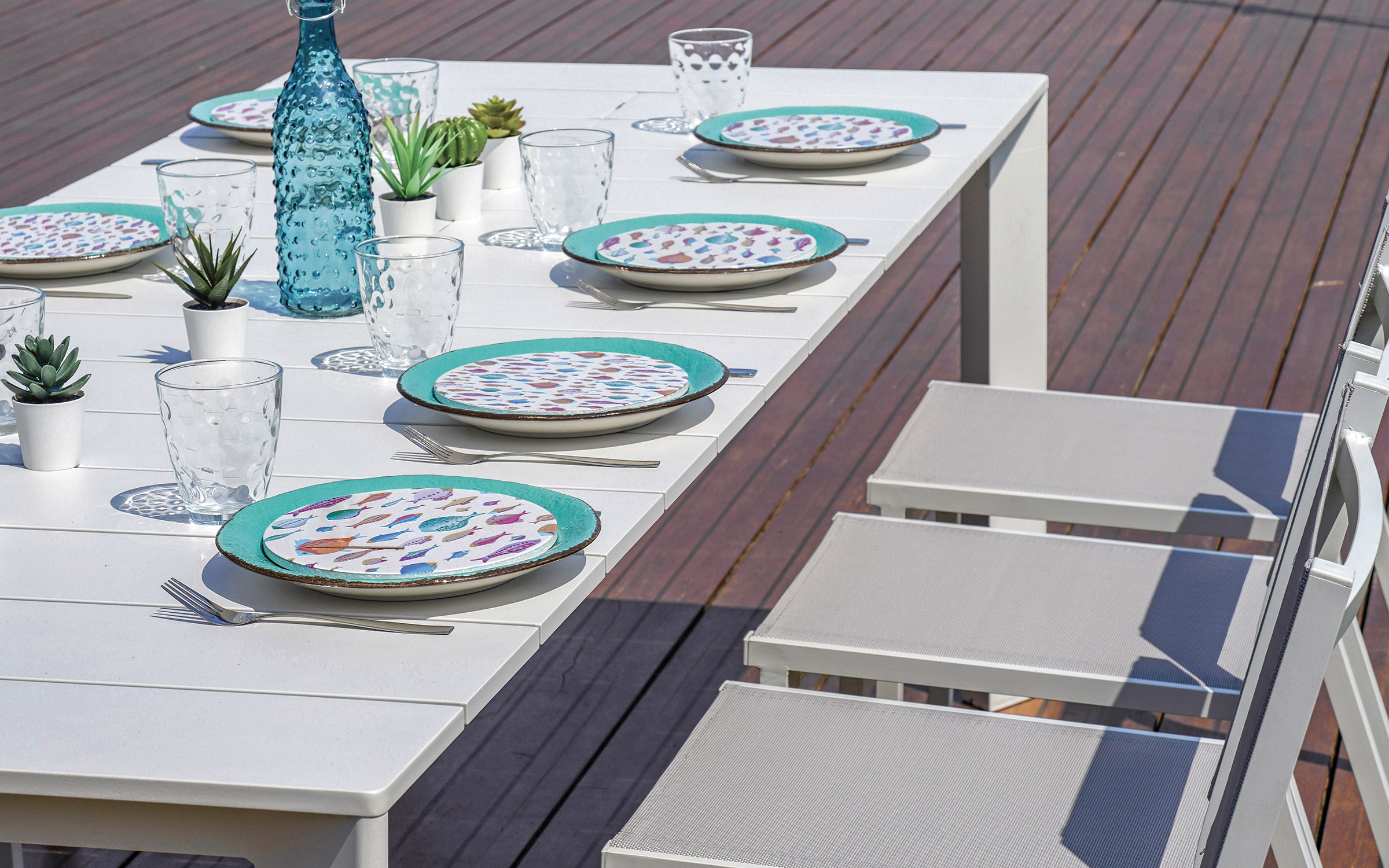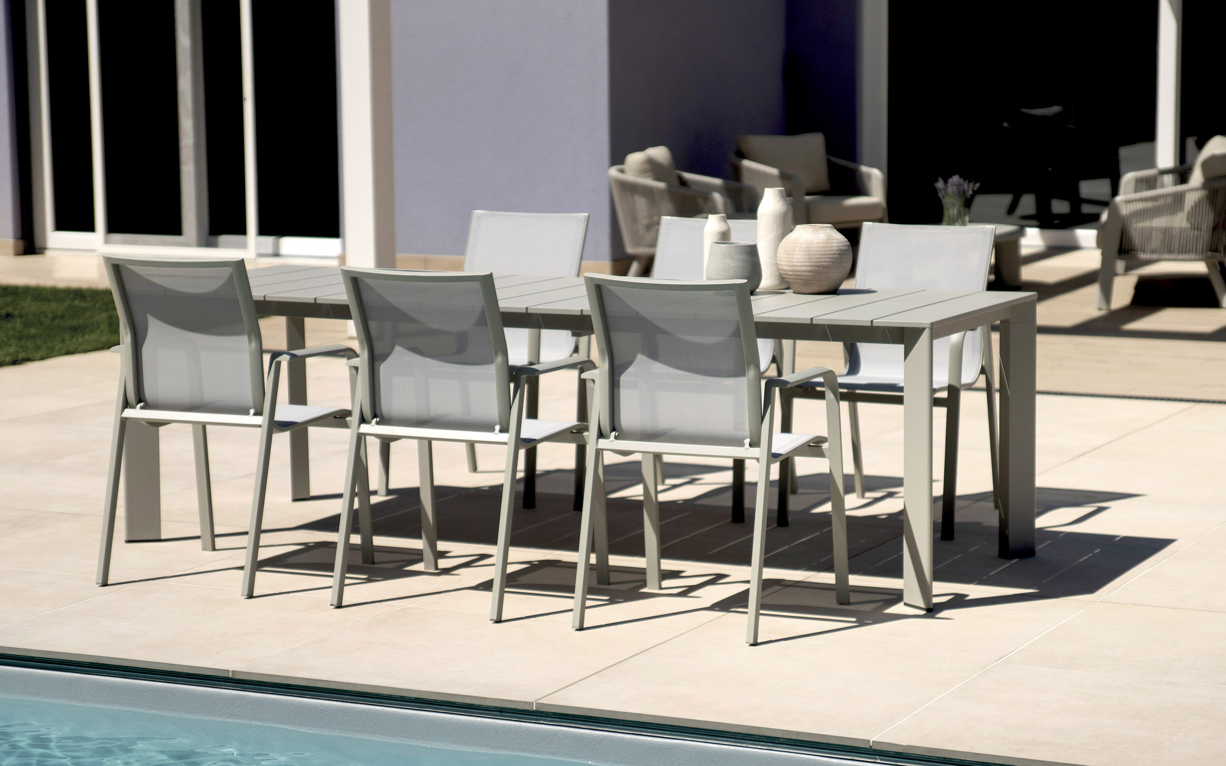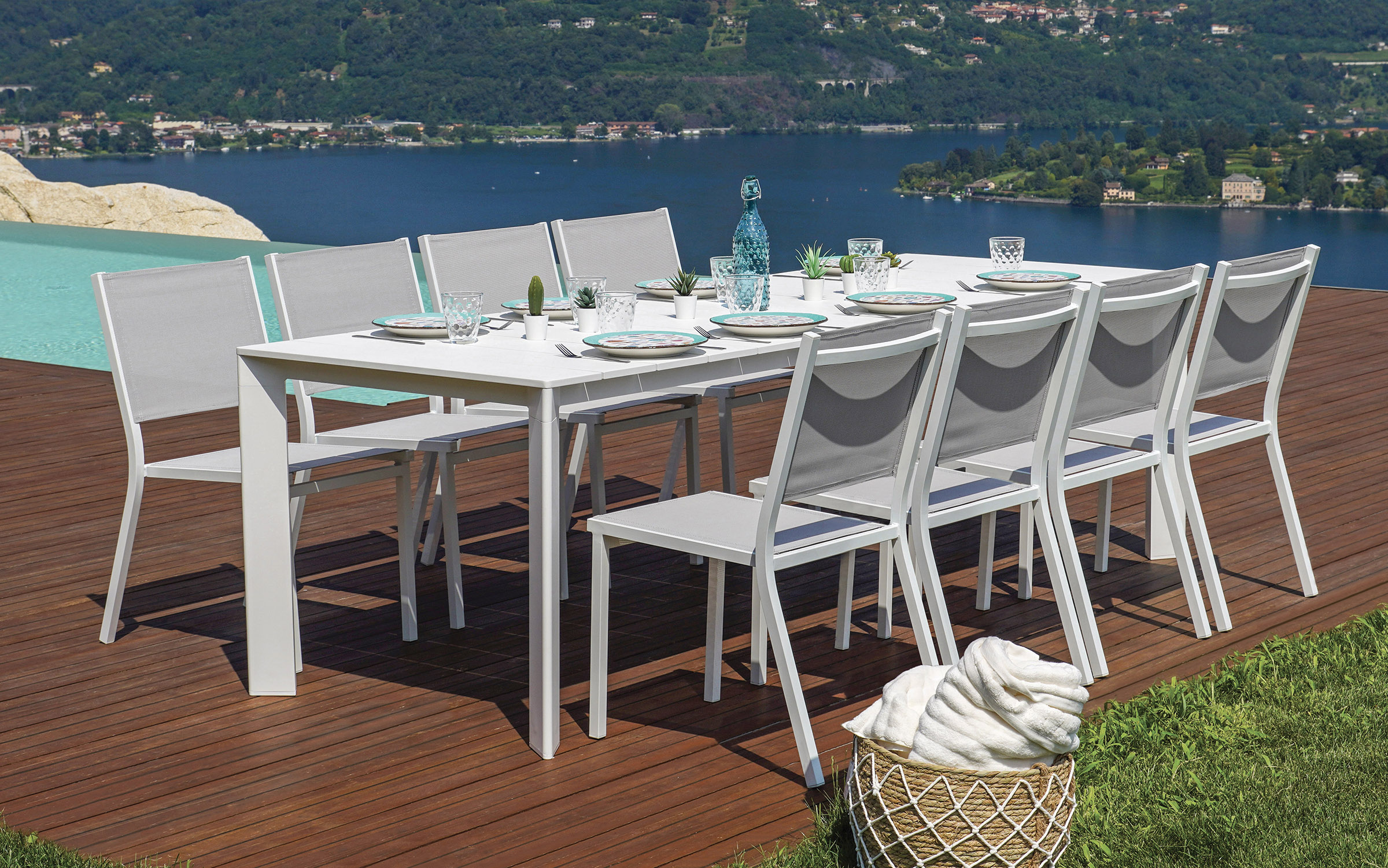 Funkcjonalny stół ogrodowy rozkładany z aluminiową konstrukcją malowaną proszkowo. Dzięki systemowi rozsuwania blat można wydłużyć z 165 do 250 cm, co pozwala wygodnie pomieścić od 6 do 8 osób. Doskonały wybór na taras, balkon lub do ogrodu. Dostępny w trzech wersjach kolorystycznych: