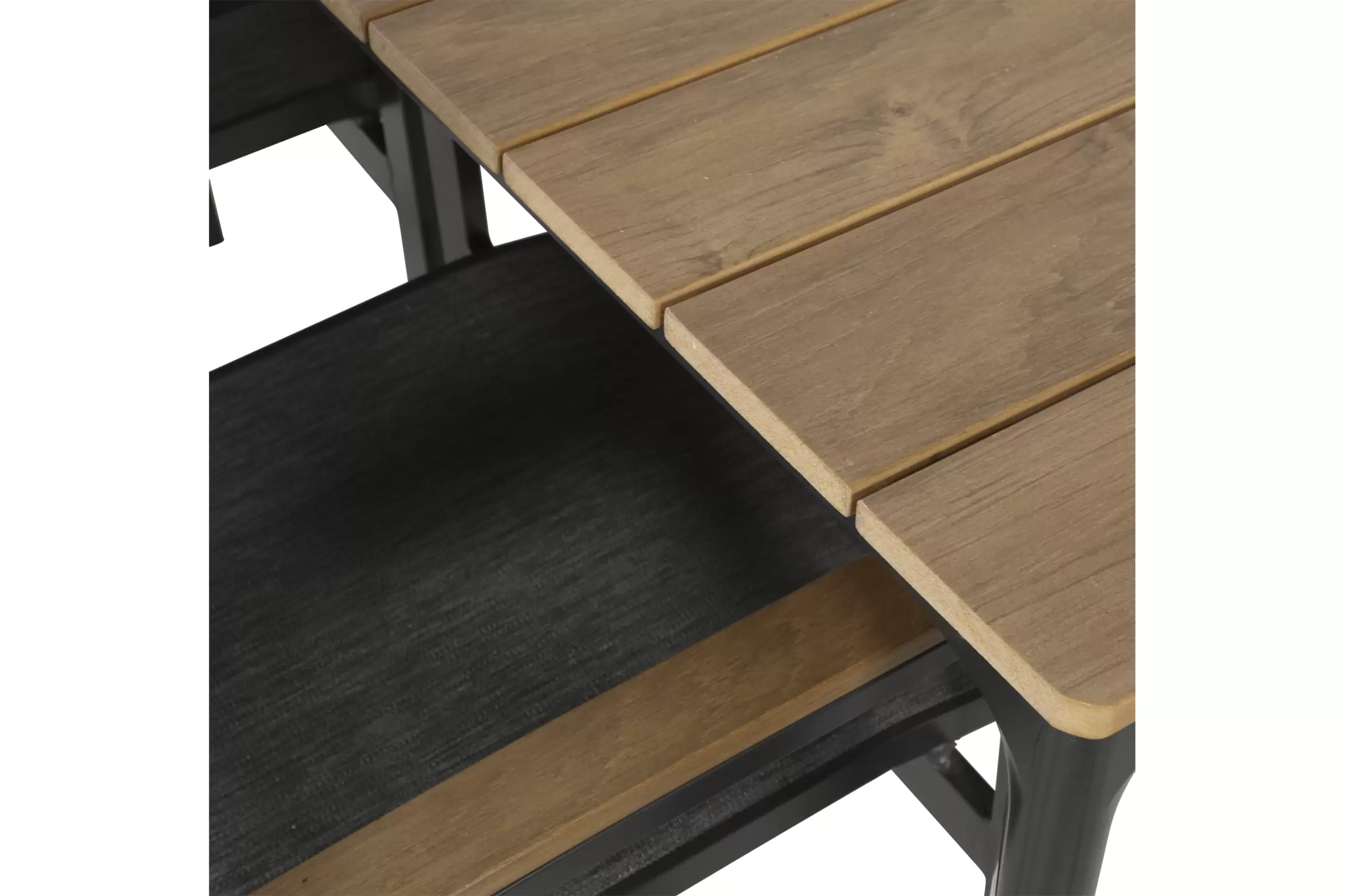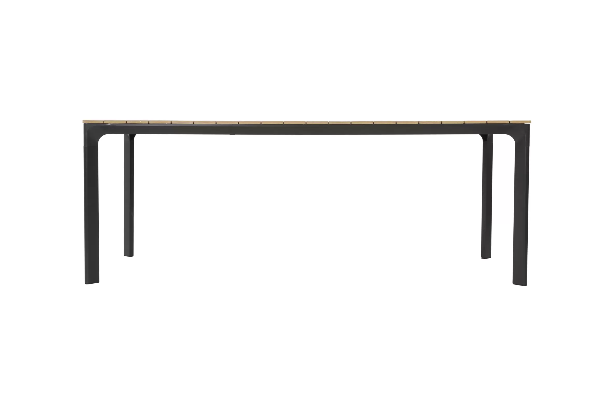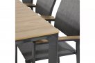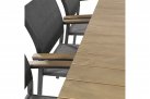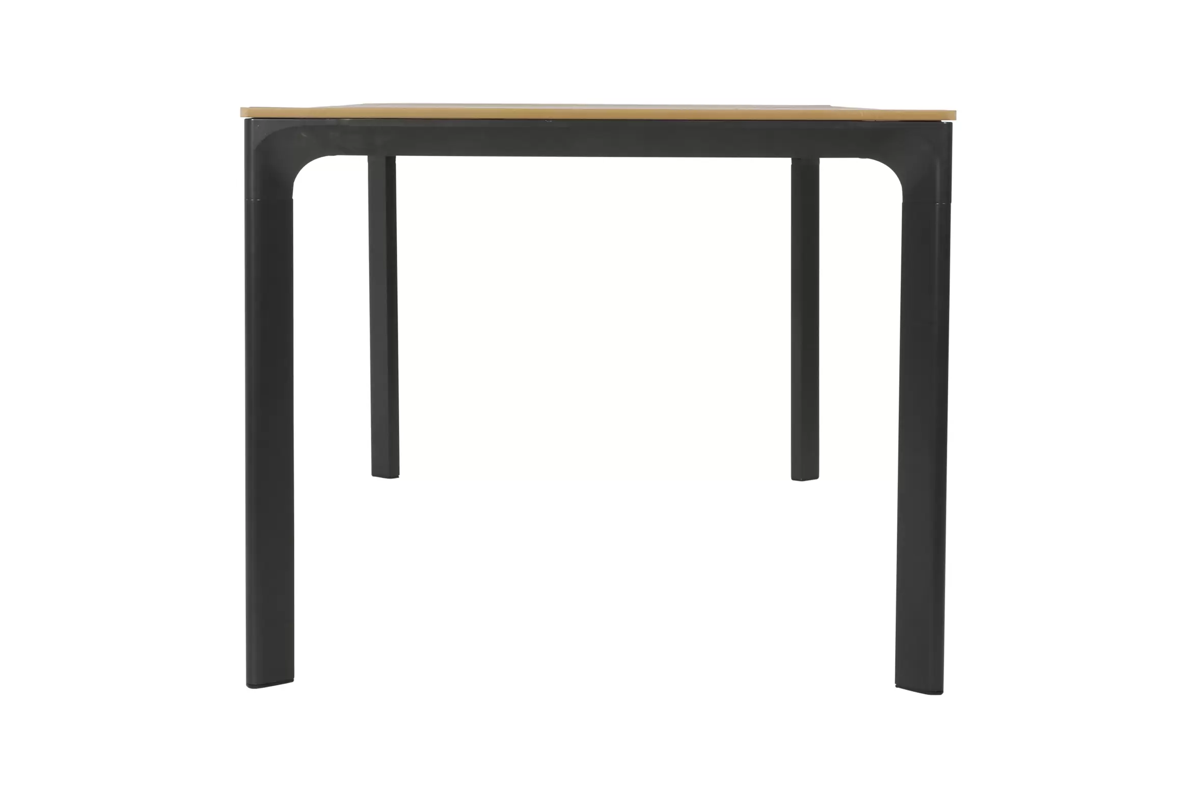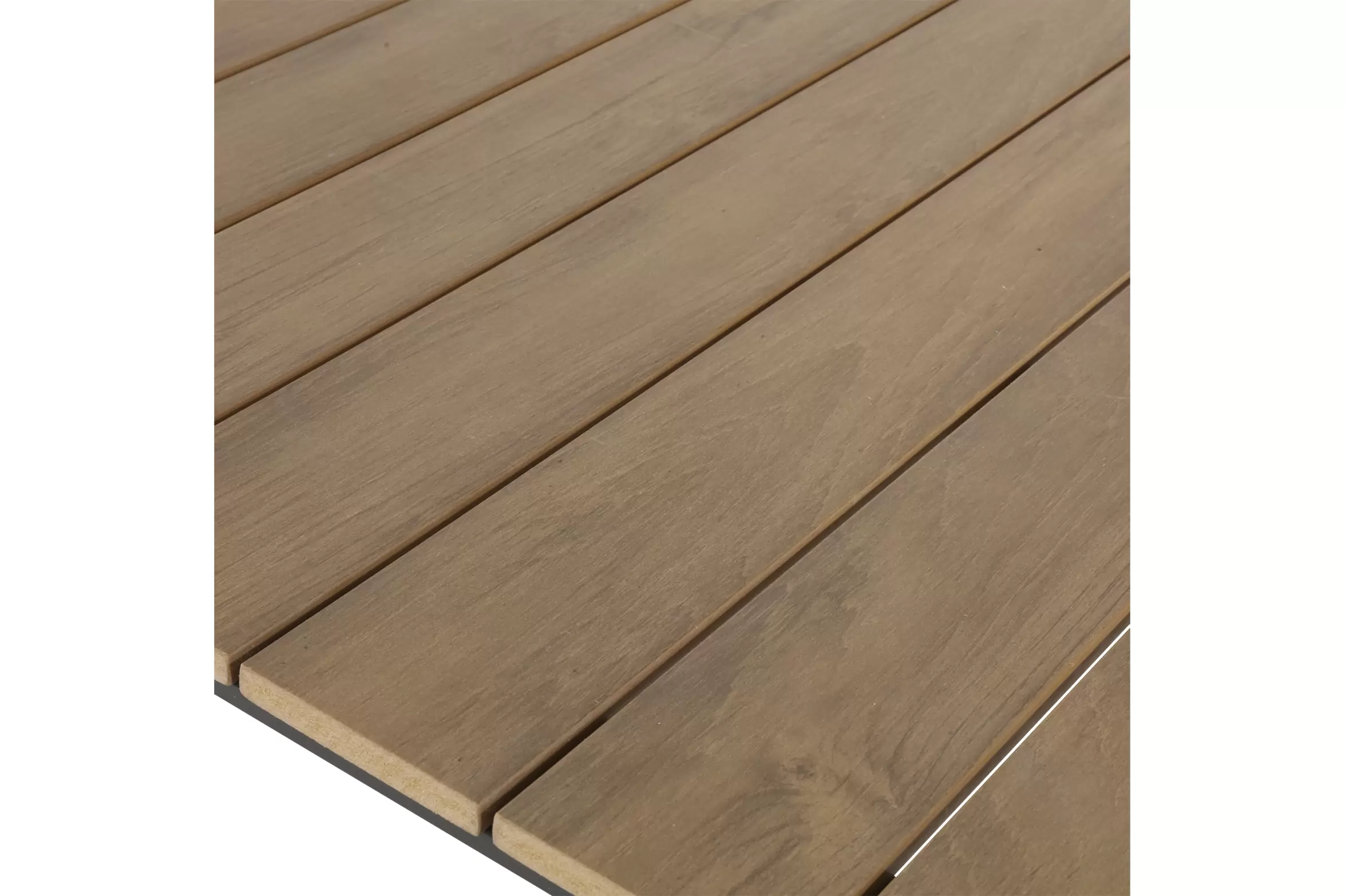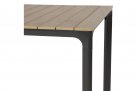 Aluminiowy stół obiadowy prostokątny ciemnoszary. Blat kompozytowy o wyglądzie drewna teakowego.