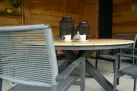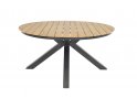 Aluminiowy stół obiadowy okrągły ciemnoszary. Blat kompozytowy o wyglądzie drewna teakowego.