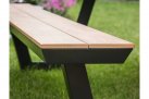 Blat stołu ogrodowego i ławki z kompozytu drewnianego o wyglądzie drewna teakowego.