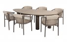 Unikalny nieregularny kształt blatu tego stołu w kolorze szarobeżowym jest wyjątkowy. Ponieważ stół jest szerszy z jednej strony, możesz wykazać się kreatywnością, aby stworzyć swoją ulubioną aranżację z krzesłami ogrodowymi.