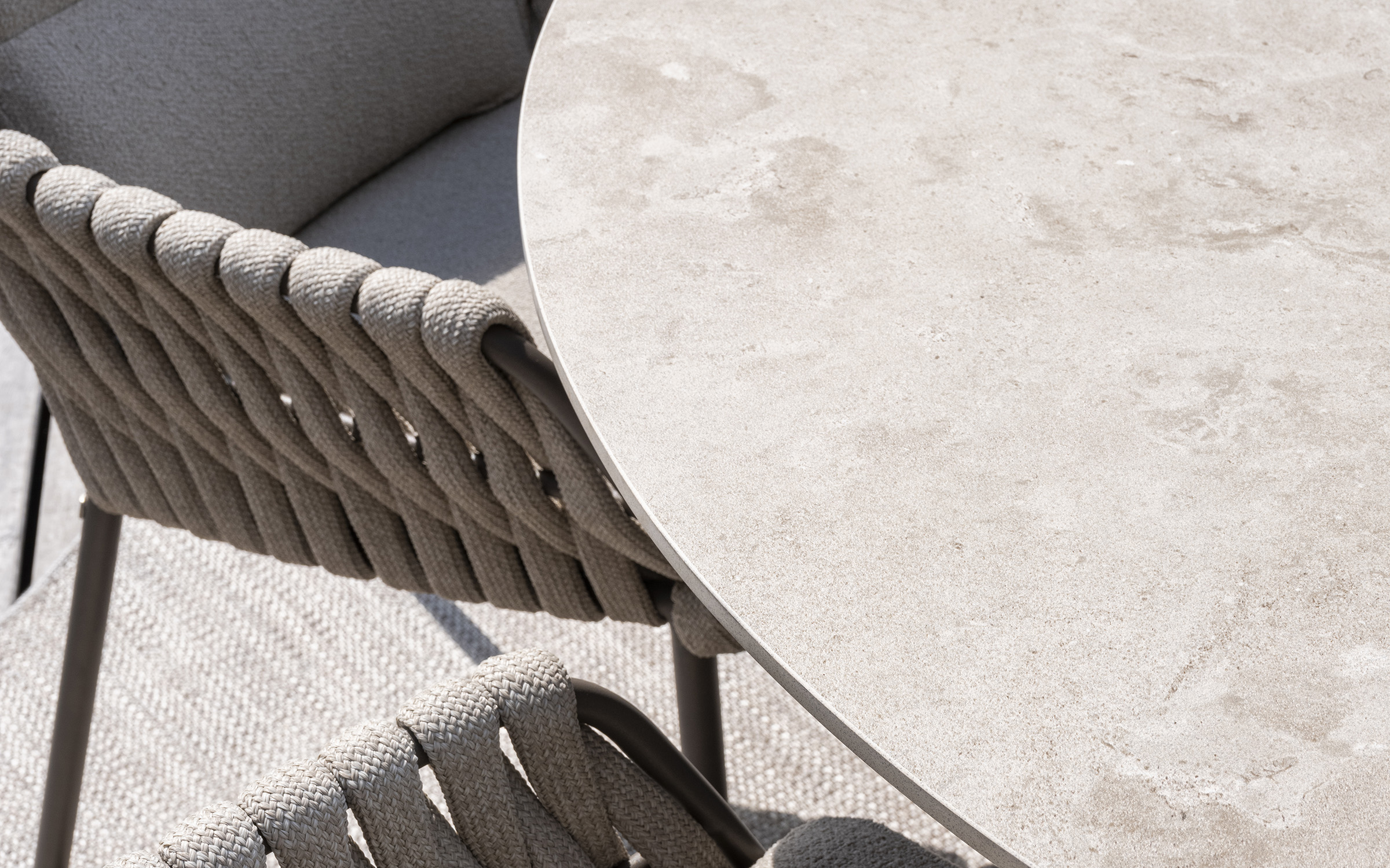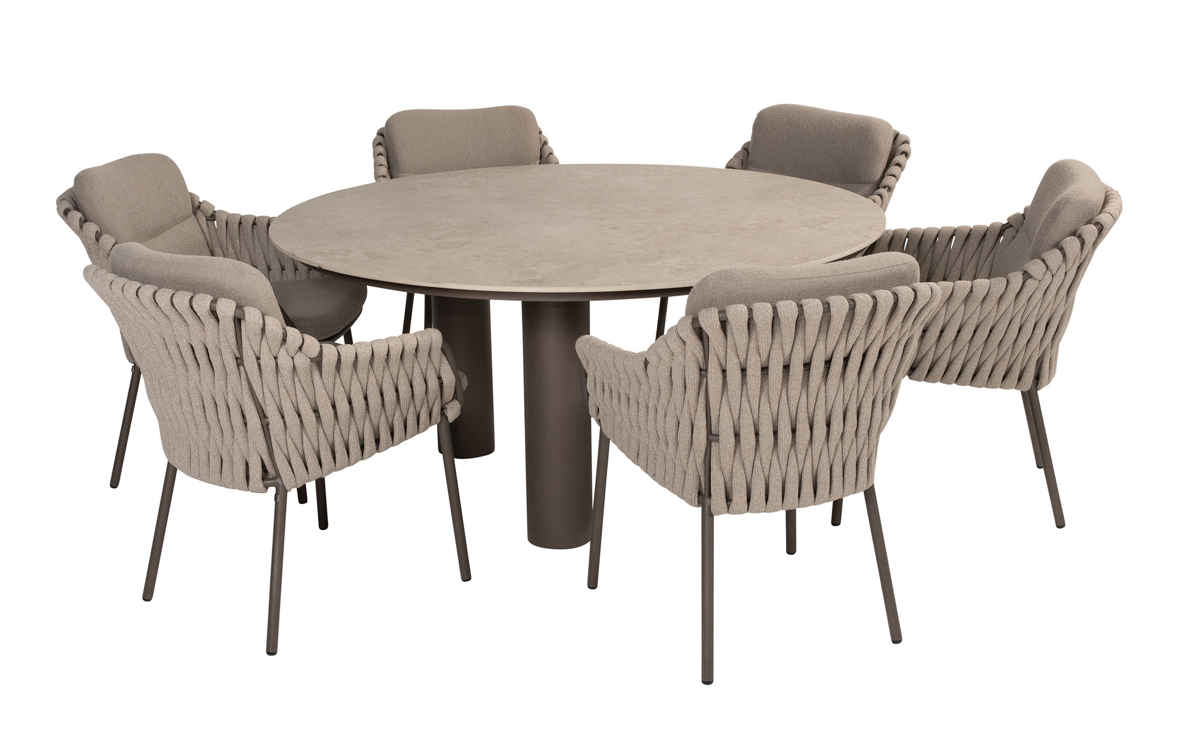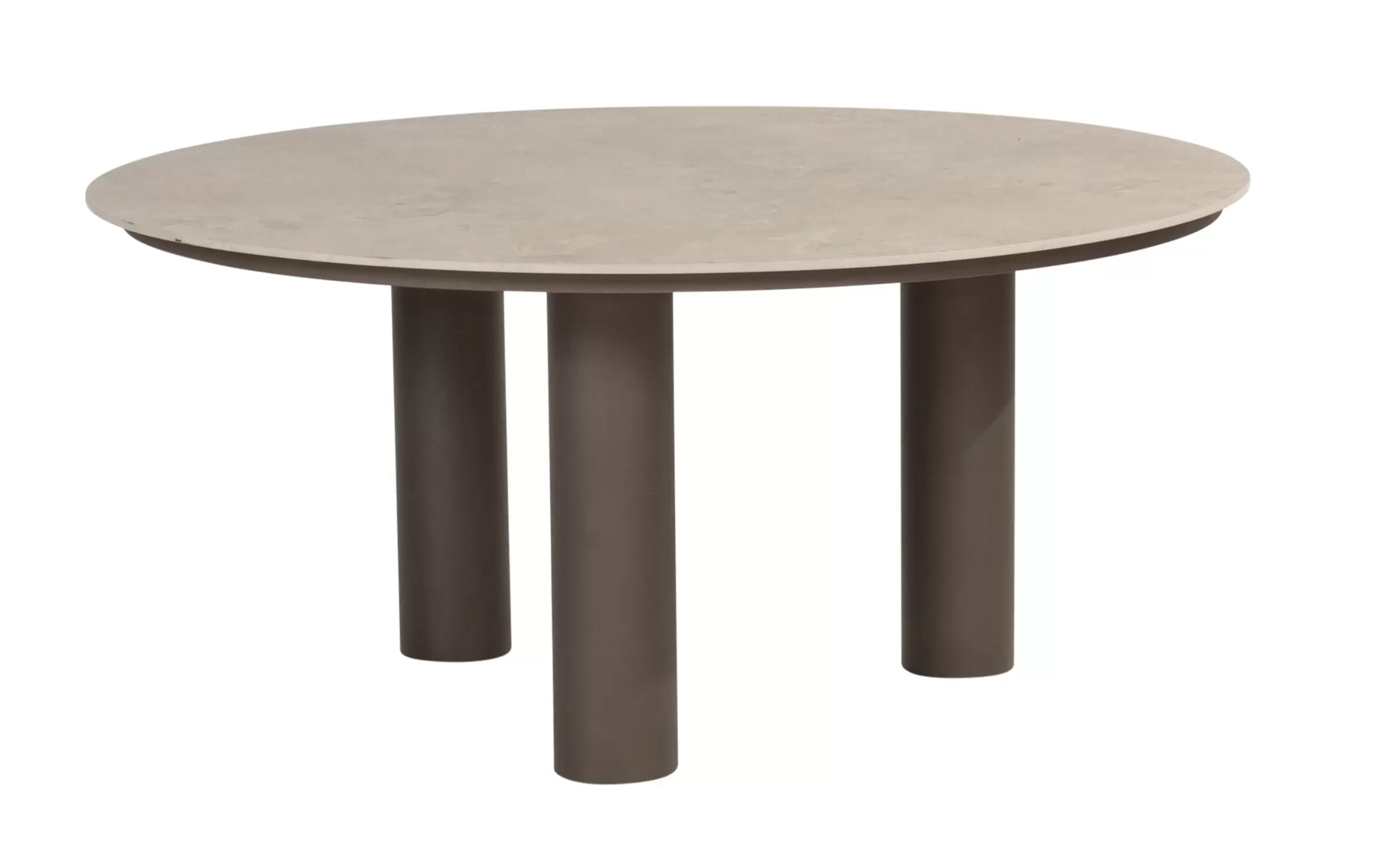 Stół do jadalni ogrodowej Arizona od 4 Seasons Outdoor to trwały stół ogrodowy, idealny dla entuzjastów spędzania czasu na świeżym powietrzu. Solidny stół ma trzy solidne nogi ze stali nierdzewnej pokryte farbą proszkową w kolorze ciemnobrązowym oraz ceramiczny okrągły blat.