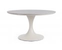 Okrągły stół na jednej stylizowanej nodze wykonanej z aluminium przykryty nowoczesnym blatem z kamienia spiekanego. Grubość blatu 11 mm