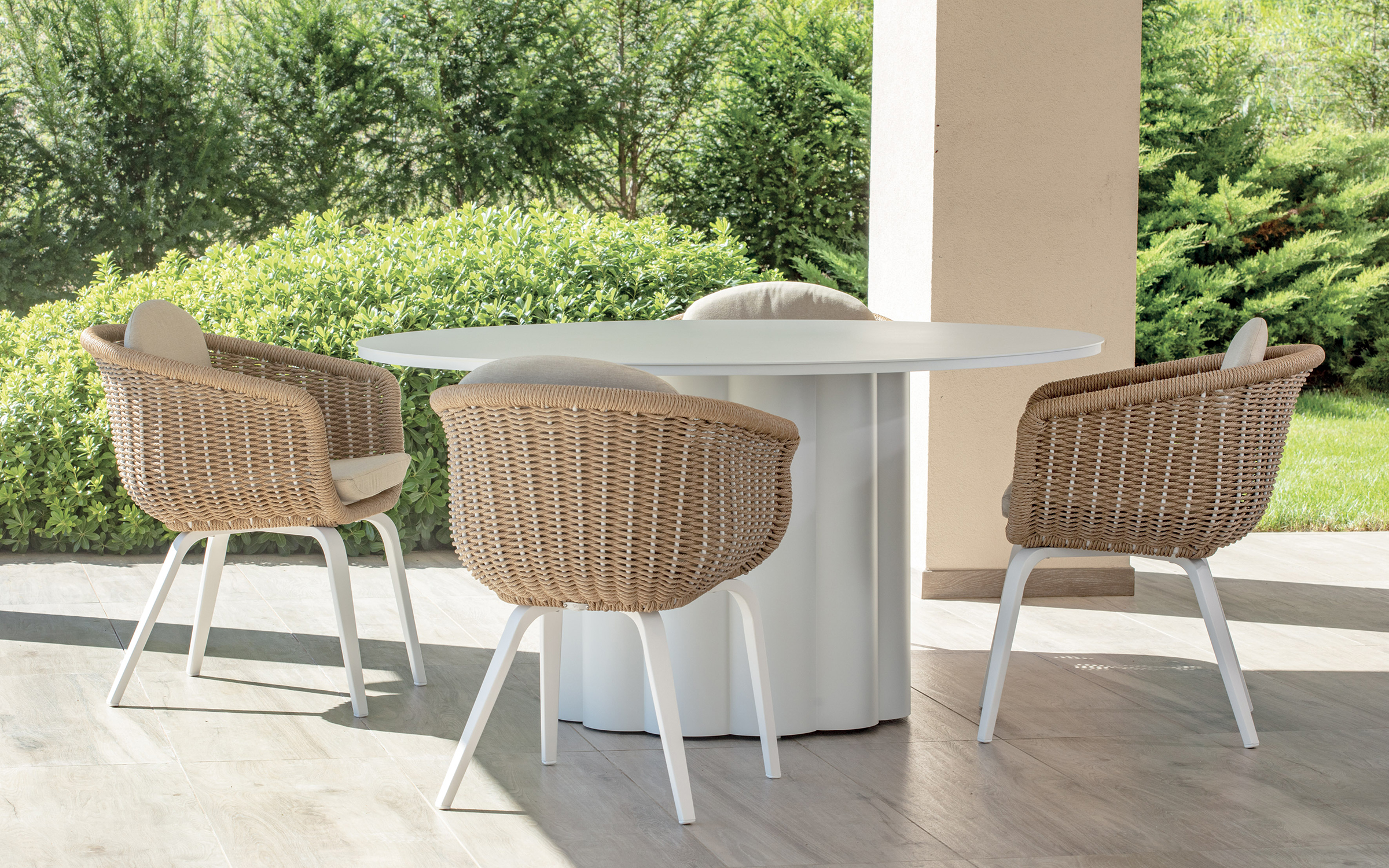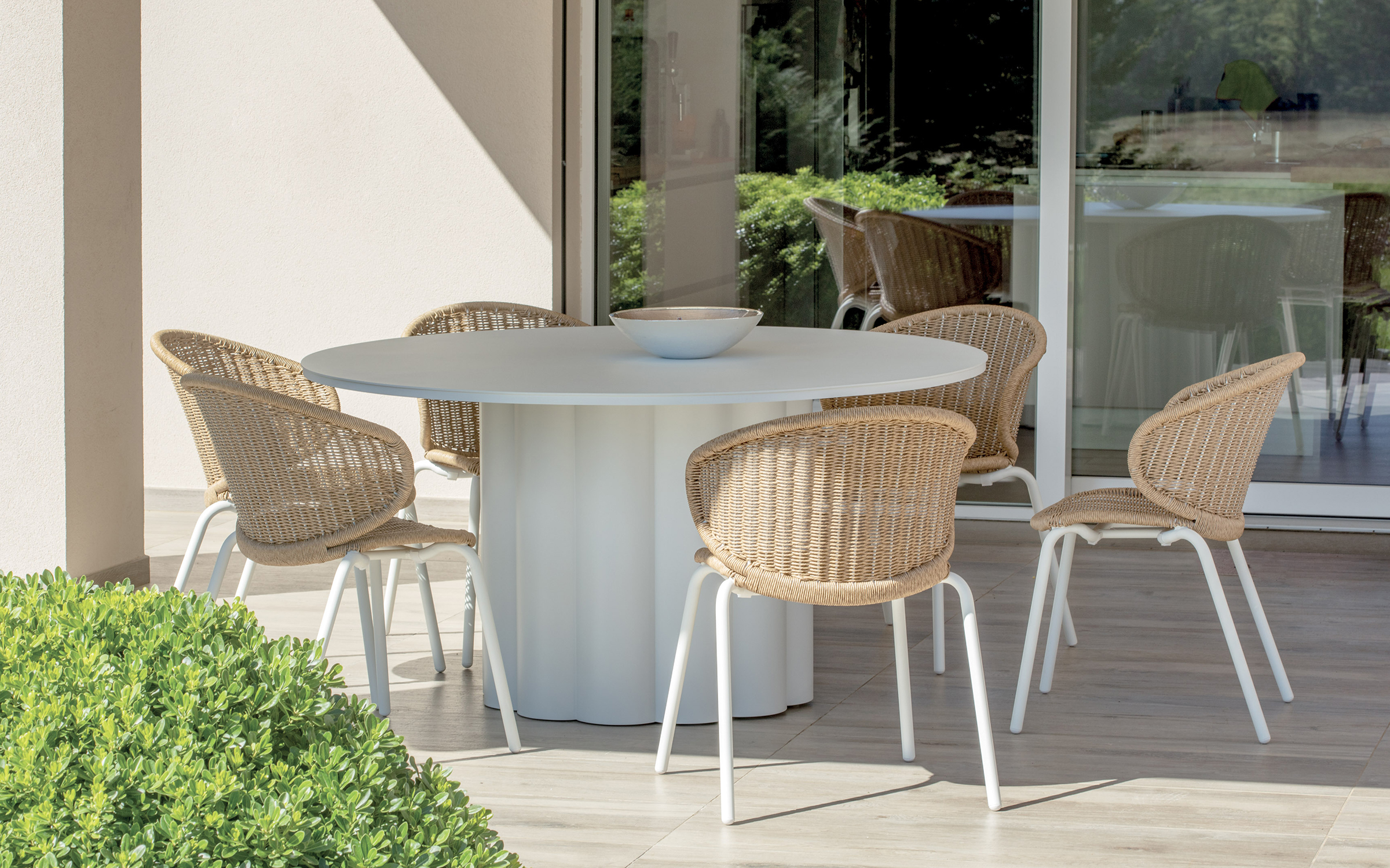 BARBUDA marki Grattoni to nowoczesny stół ogrodowy wykonany z aluminium malowanego proszkowo w kolorze antracytowym lub białym. Lekka konstrukcja zapewnia trwałość i odporność na warunki atmosferyczne, a minimalistyczny design sprawia, że stół doskonale komponuje się z nowoczesnymi zestawami wypoczynkowymi.