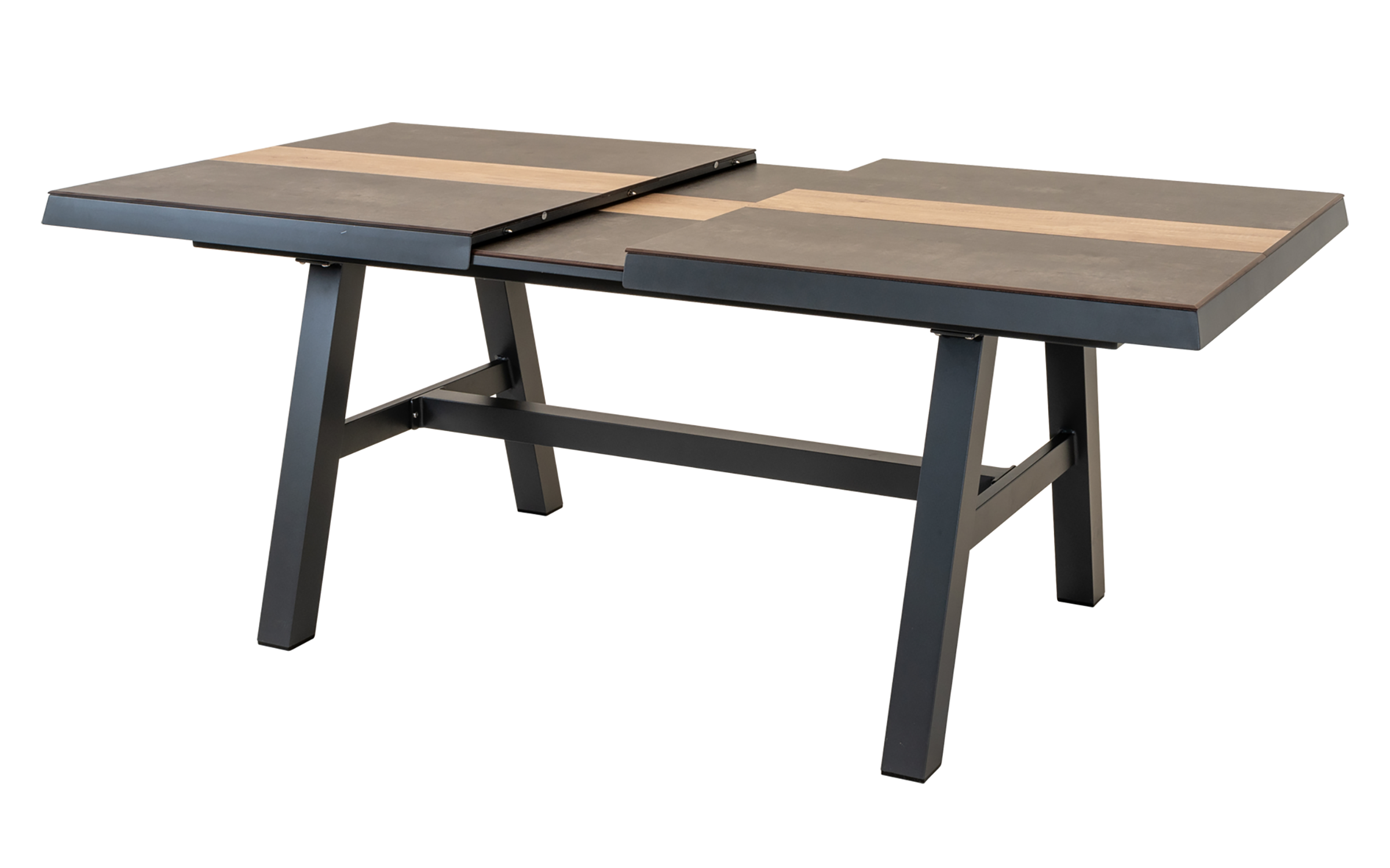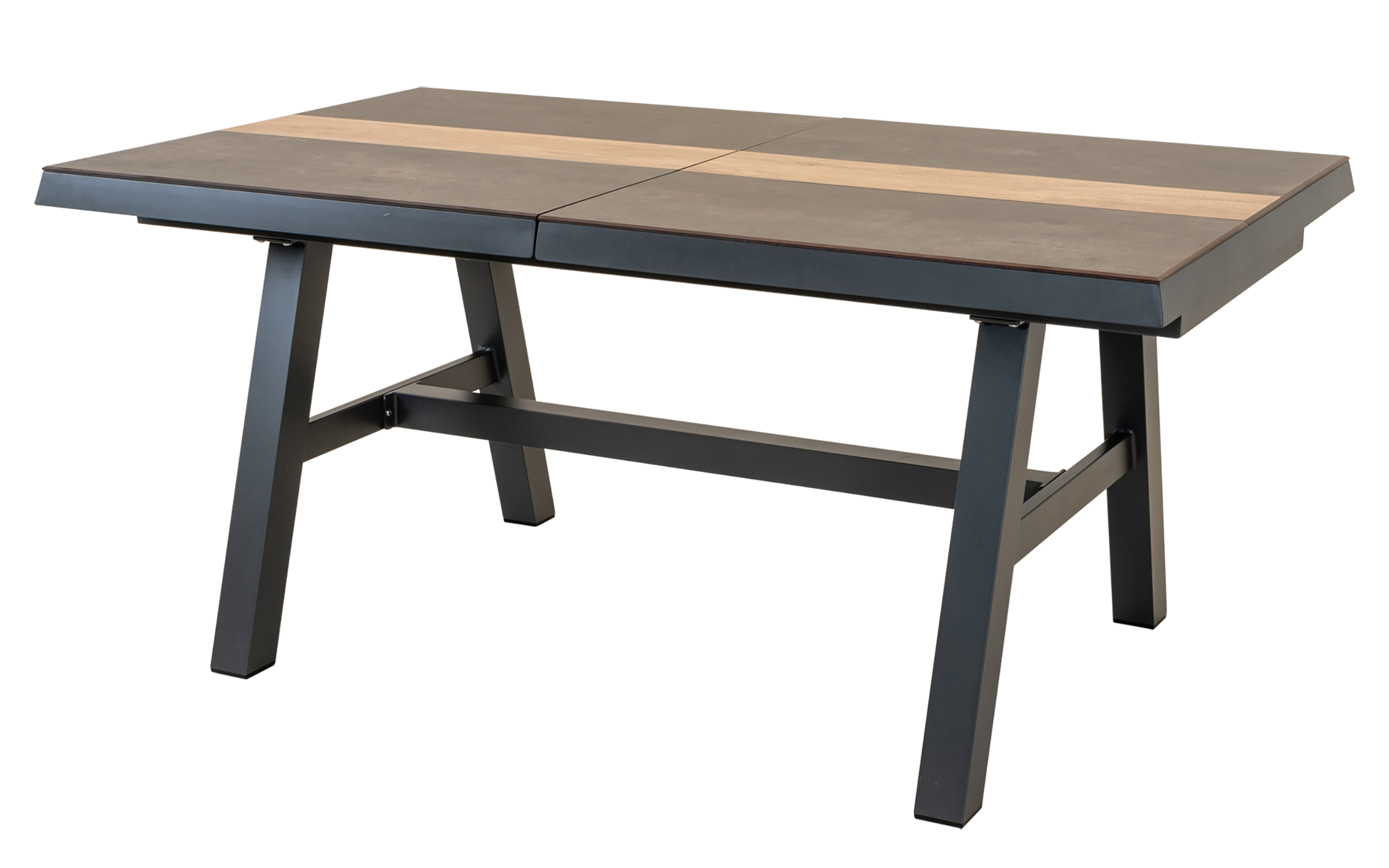 Rozkładany stół ogrodowy aluminiowy BRIXTON 170-220 cm z blatem HPL imitacja kamień+drewno