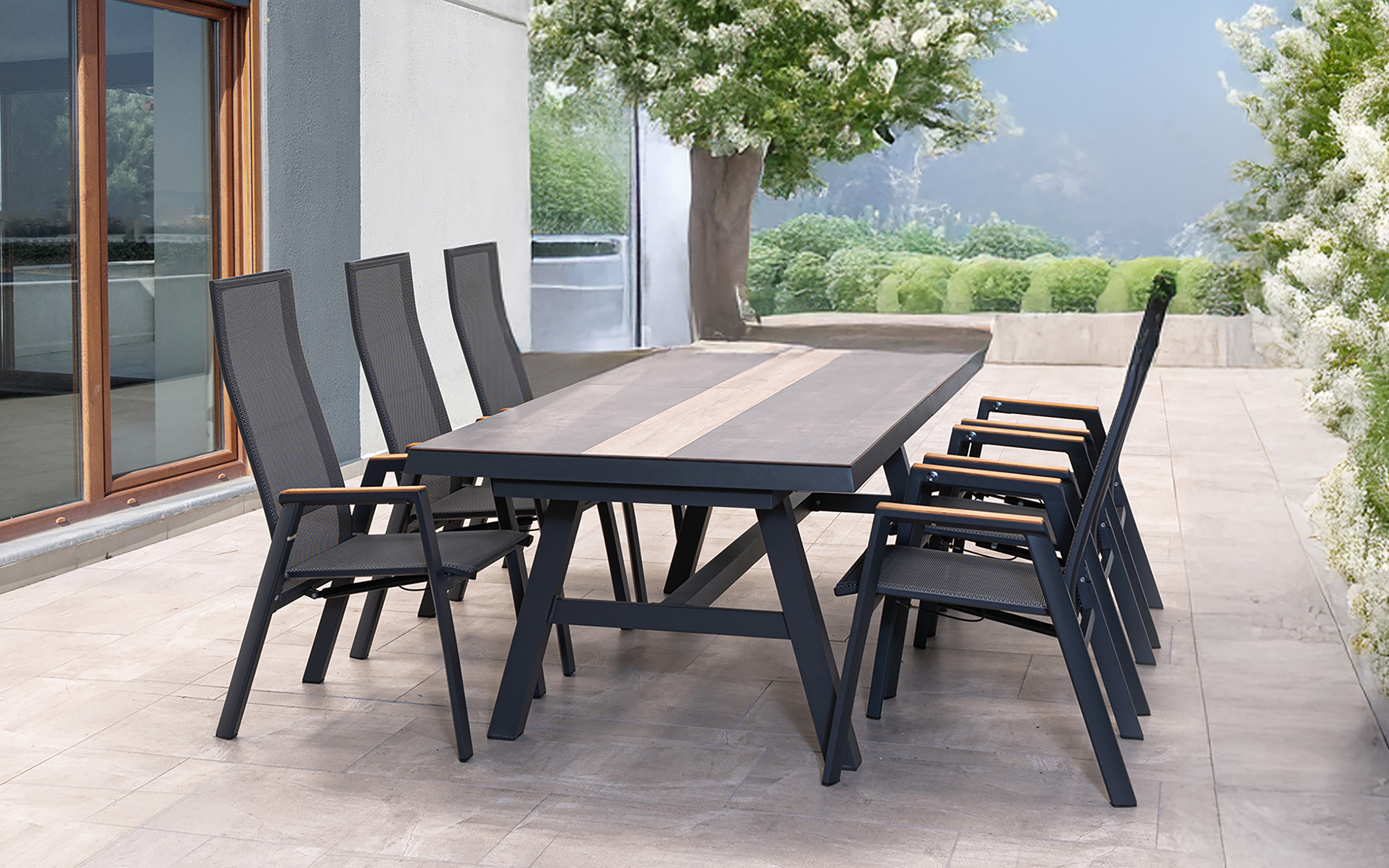 Stół ogrodowy Brixton marki Lesli Living to idealne rozwiązanie dla osób ceniących komfort, nowoczesny styl i elastyczność aranżacji. Wyposażony w przestronny blat z HPL (High Pressure Laminate) oraz solidne aluminiowe podparcie w kolorze antracytowym, stanowi nie tylko praktyczny mebel, ale również elegancki akcent w ogrodzie, na tarasie czy balkonie. Dzięki funkcji rozkładania od 170 do 220 cm z łatwością dopasujesz go do kameralnych spotkań lub większych przyjęć.