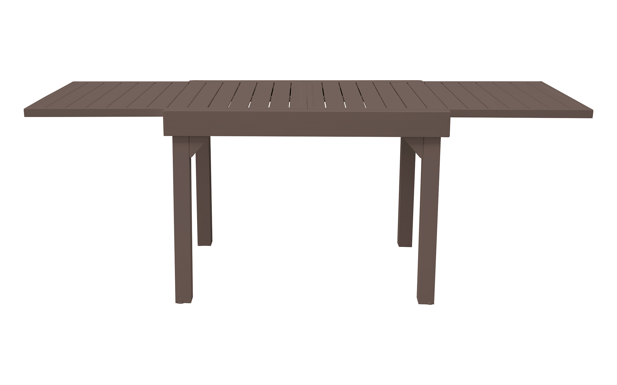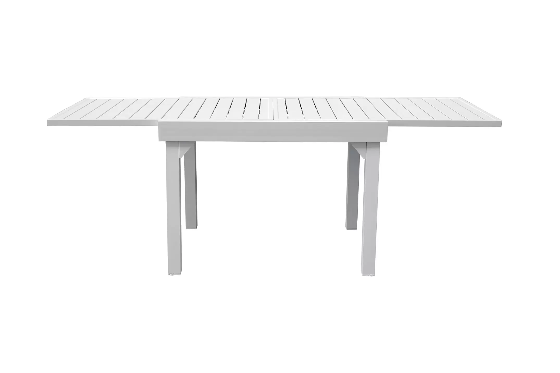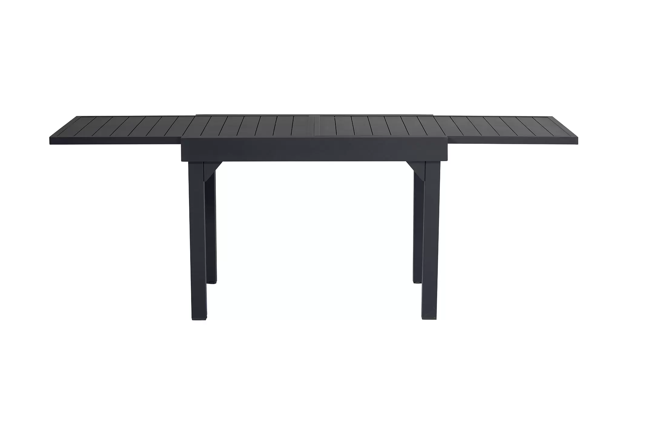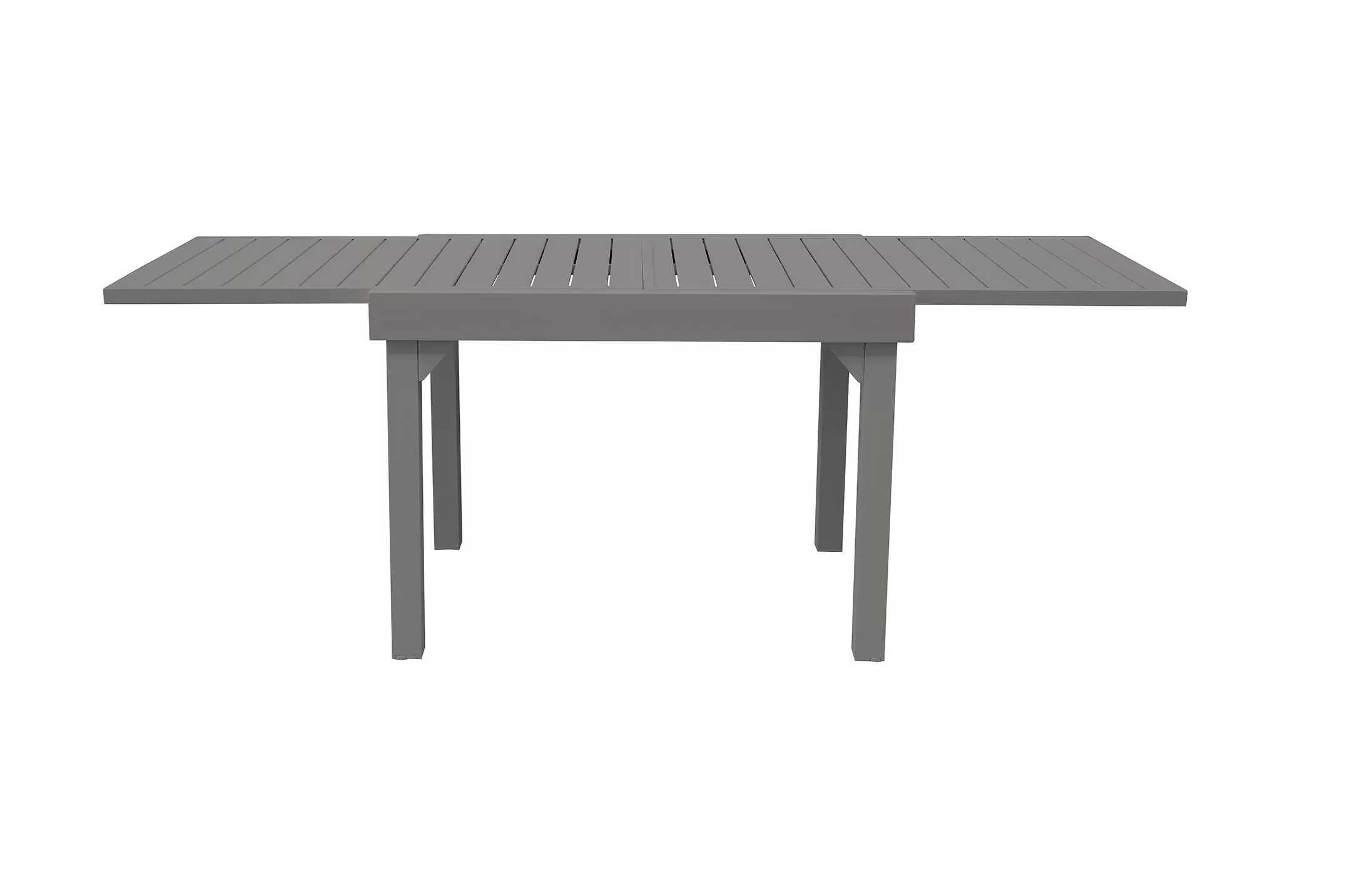 Nowoczesny stół ogrodowy rozkładany z aluminiową konstrukcją malowaną proszkowo. Dzięki systemowi rozsuwania blat można wydłużyć z 106 do 212 cm, co pozwala wygodnie pomieścić od 6 do 8 osób. Idealny na taras, balkon lub do ogrodu. Dostępny w czterech wersjach kolorystycznych: