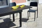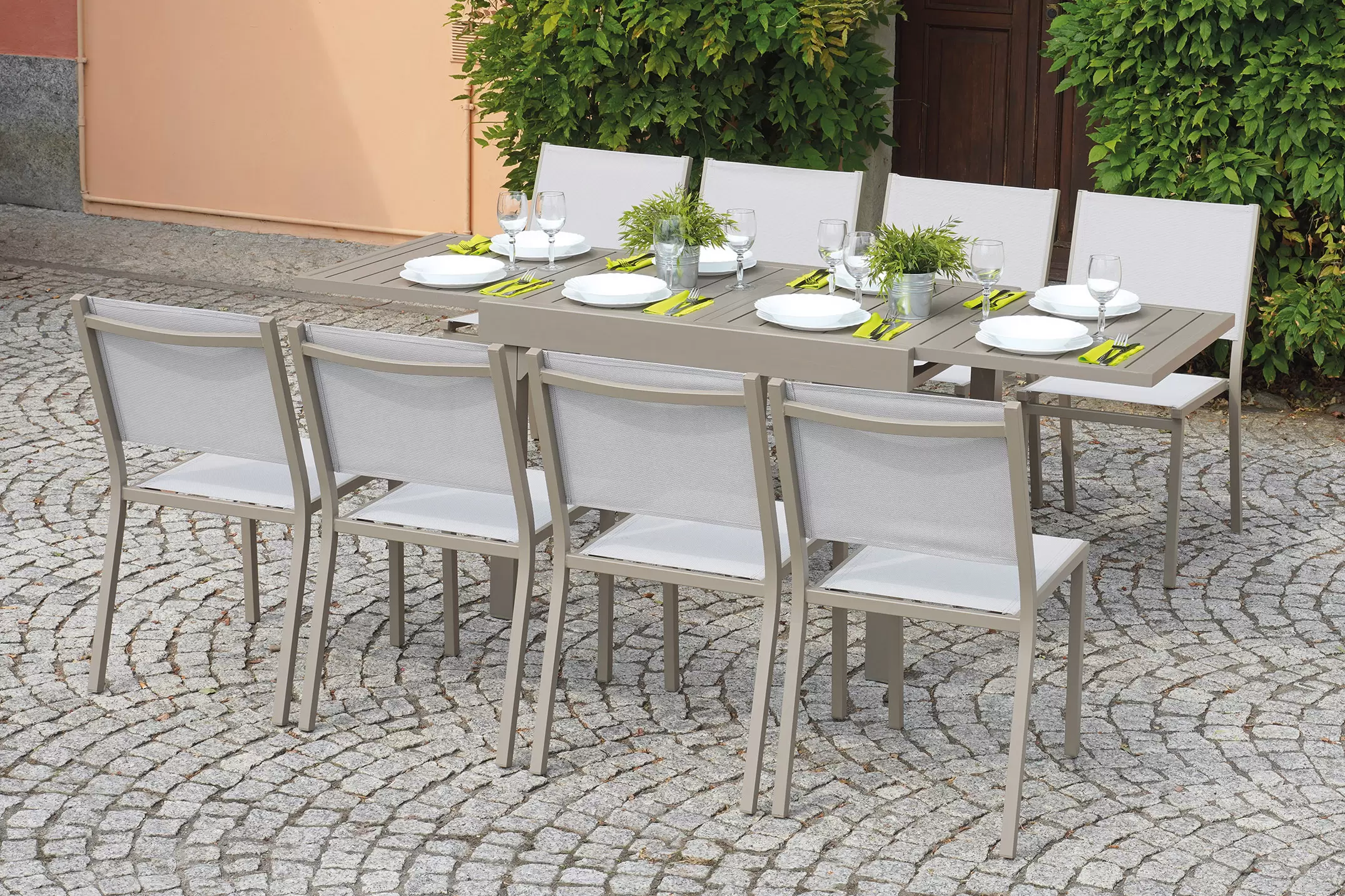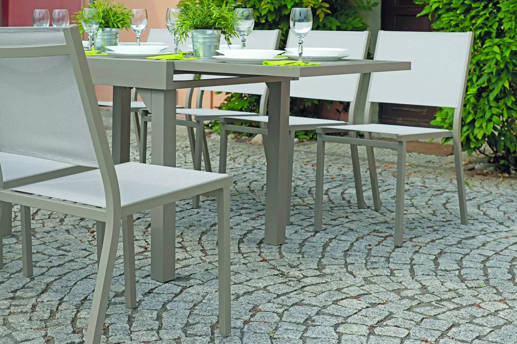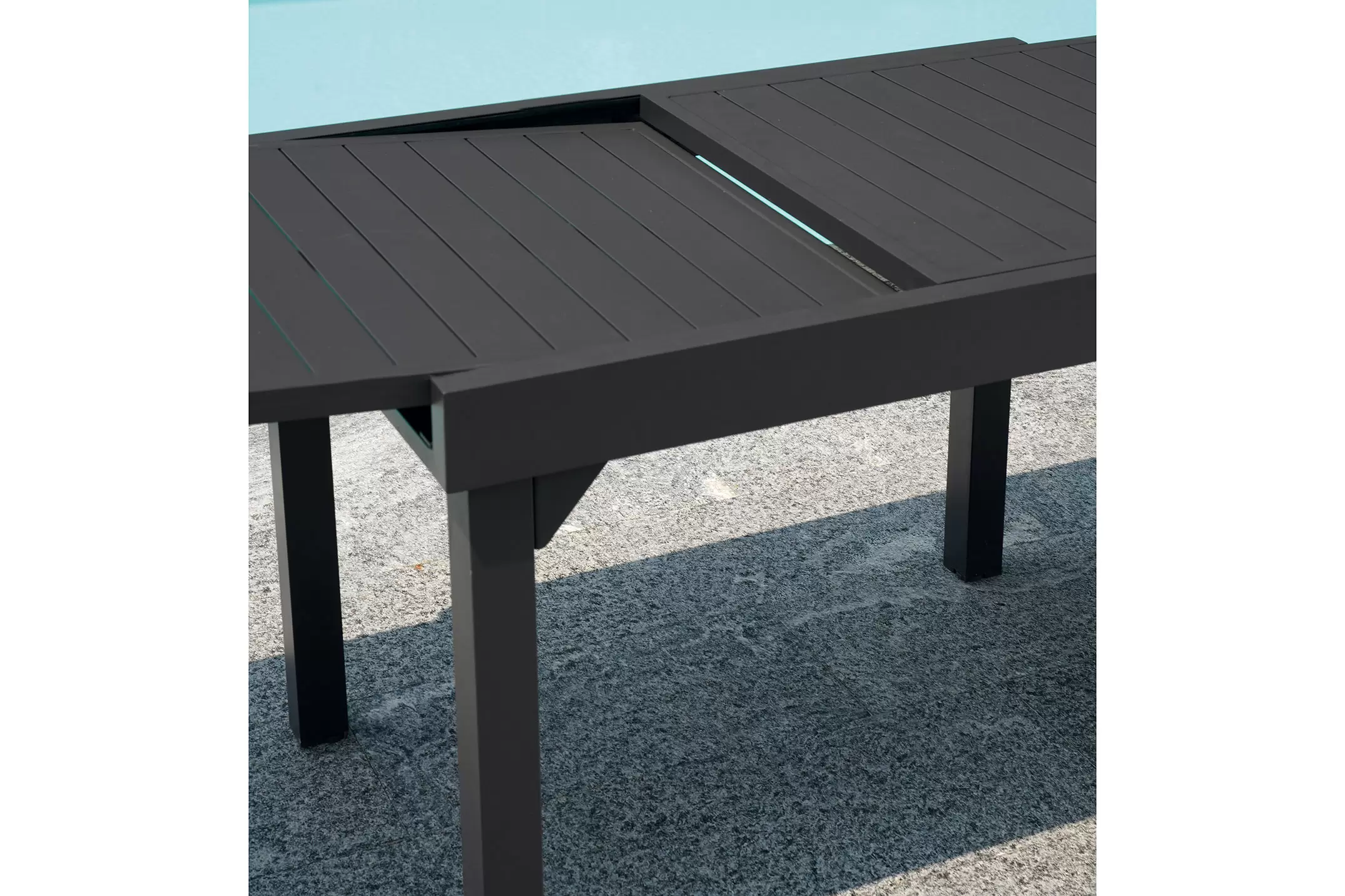 Nowoczesny stół ogrodowy rozkładany z aluminiową konstrukcją malowaną proszkowo. Dzięki systemowi rozsuwania blat można wydłużyć z 106 do 212 cm, co pozwala wygodnie pomieścić od 6 do 8 osób. Idealny na taras, balkon lub do ogrodu. Dostępny w czterech wersjach kolorystycznych: