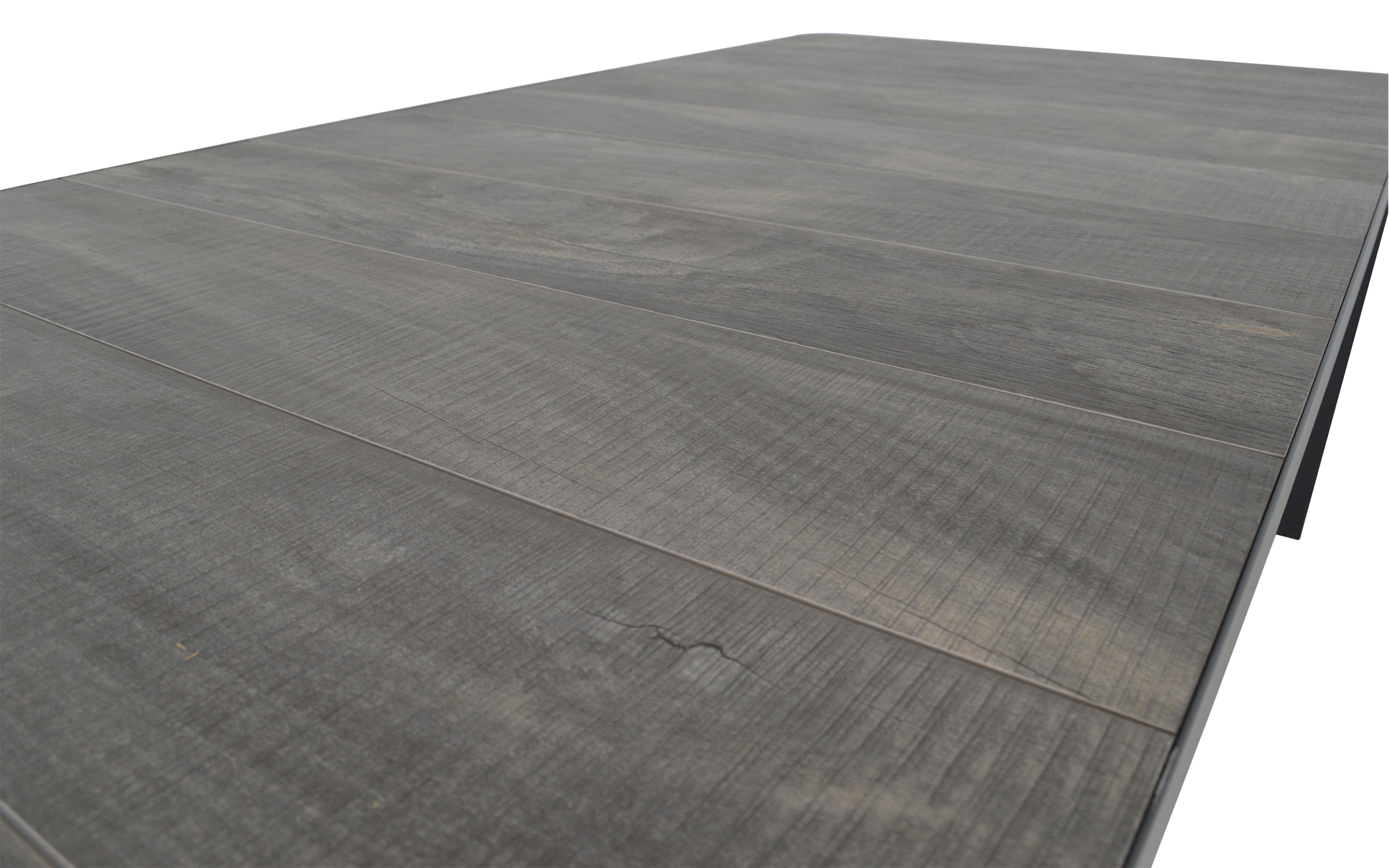 Blat ceramiczny o grubości 11,5 mm, wykonany z paneli o szerokości 19,8 cm w ciemnoszarym melanżowym odcieniu, wyróżnia się trwałością i estetyką. Ceramika doskonale sprawdza się w warunkach zewnętrznych – jest łatwa w pielęgnacji, odporna na wilgoć, wysoką temperaturę, promieniowanie UV oraz zarysowania.