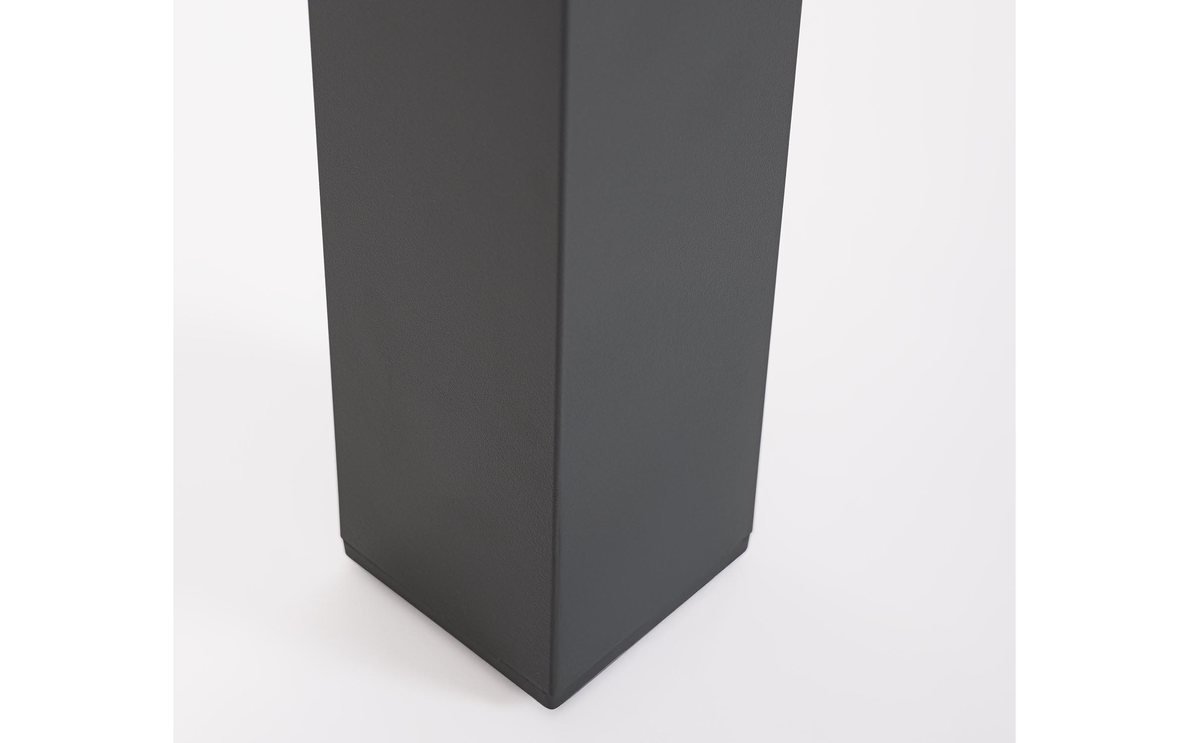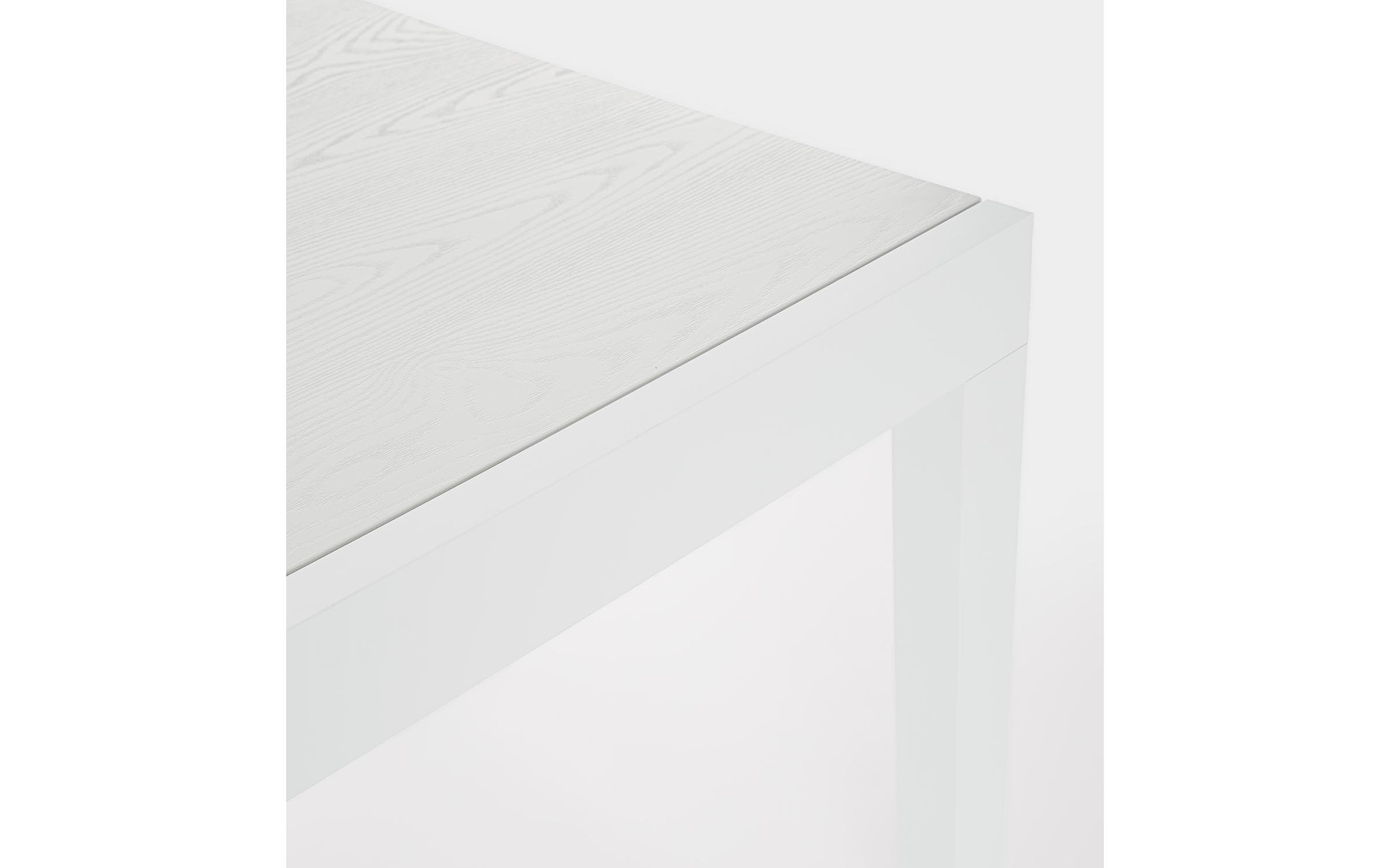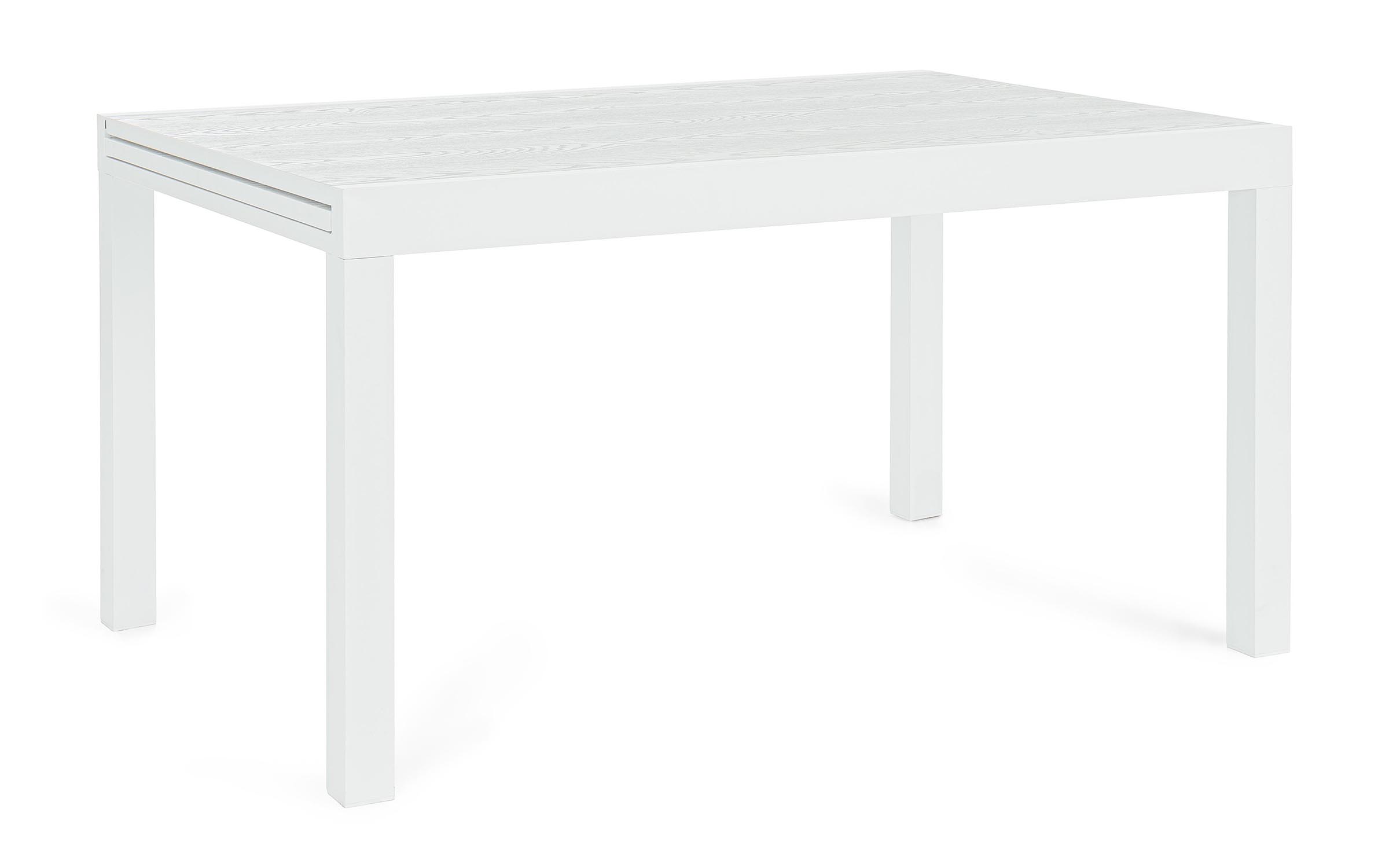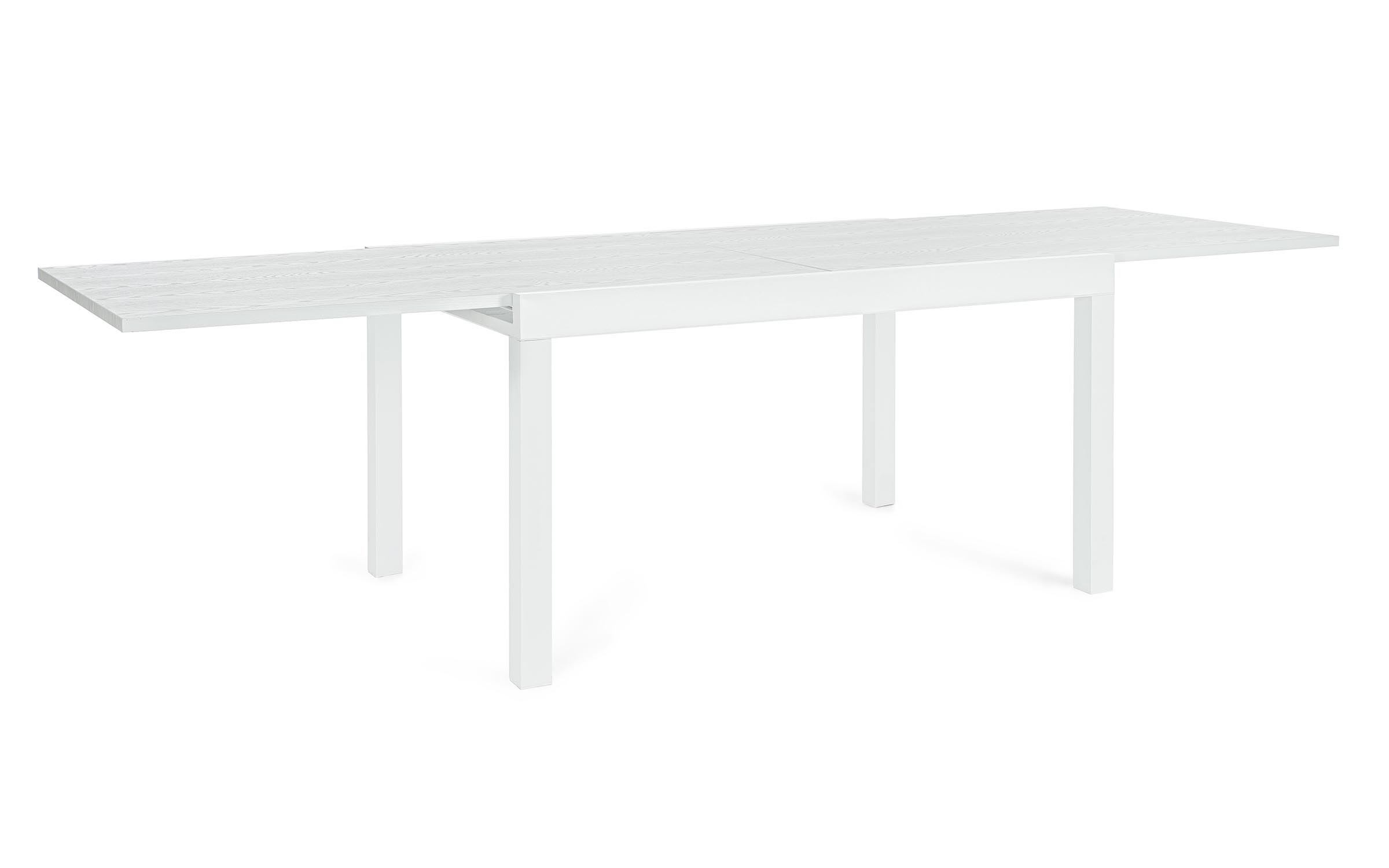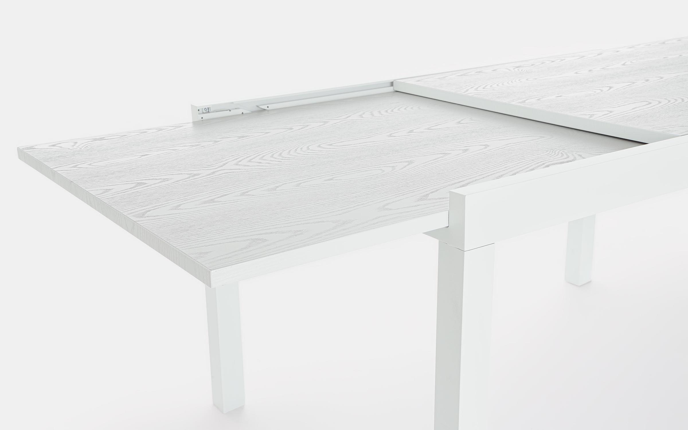 Konstrukcja aluminiowa stołu i mebli malowana proszkowo. System rozkładania: blat wydłużający wysuwany spod blatu głównego i podnoszony do właściwego poziomu.