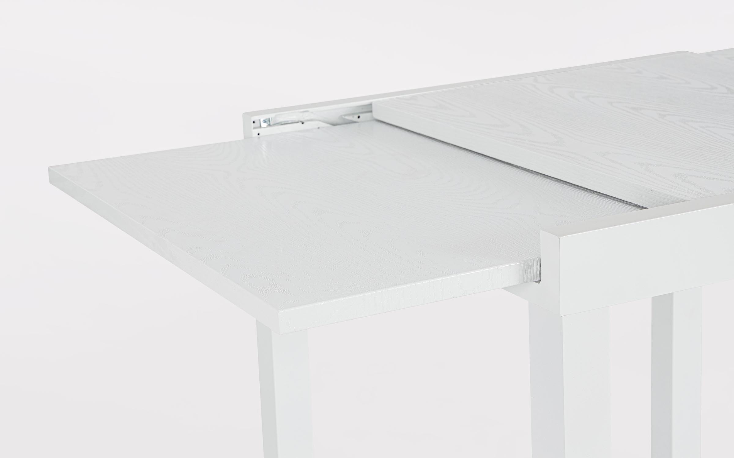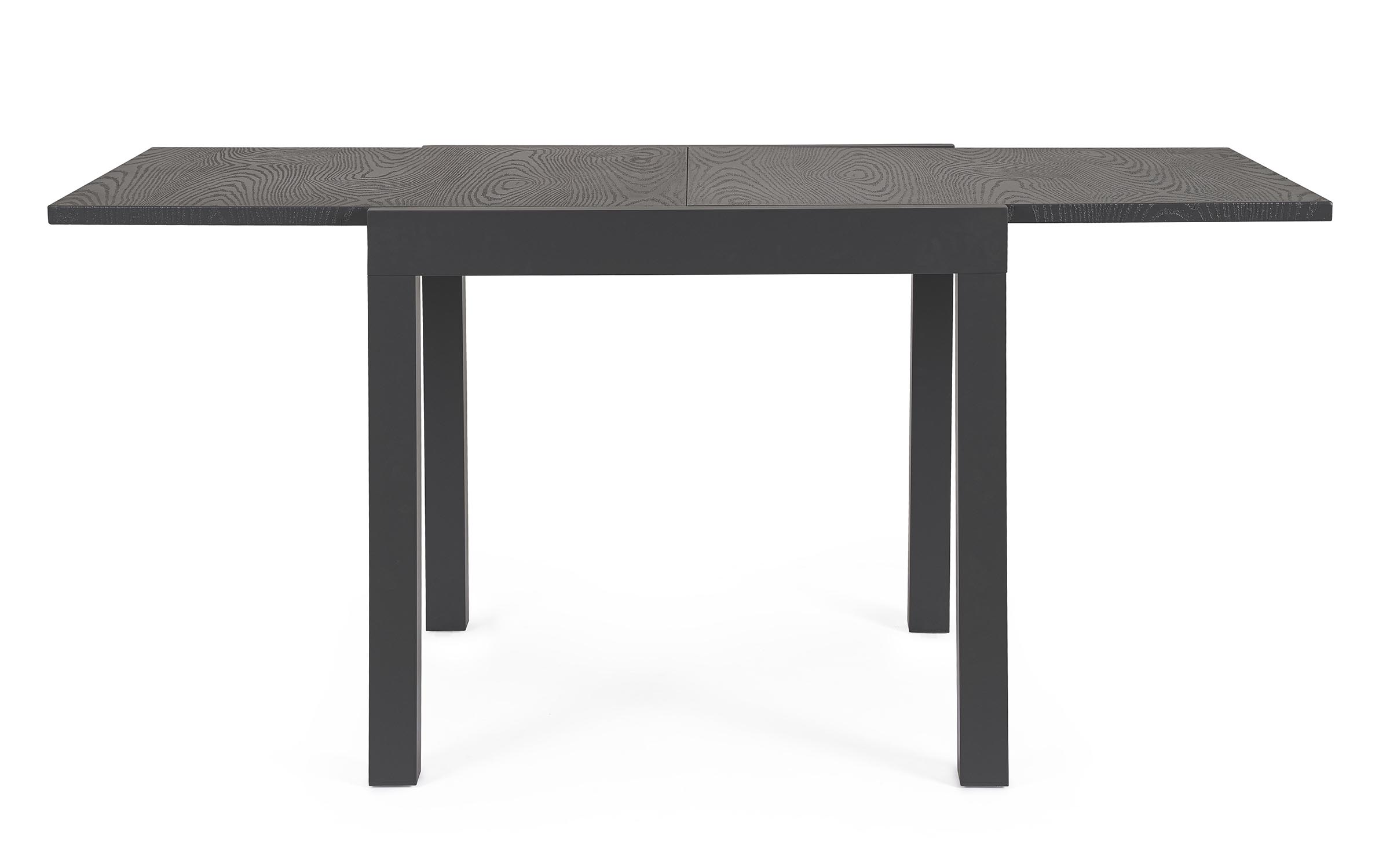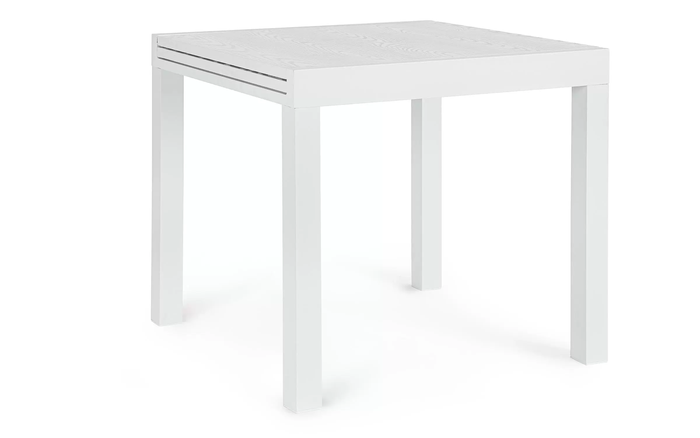 Konstrukcja aluminiowa stołu i mebli malowana proszkowo. System rozkładania: blat wydłużający wysuwany spod blatu głównego i podnoszony do właściwego poziomu.