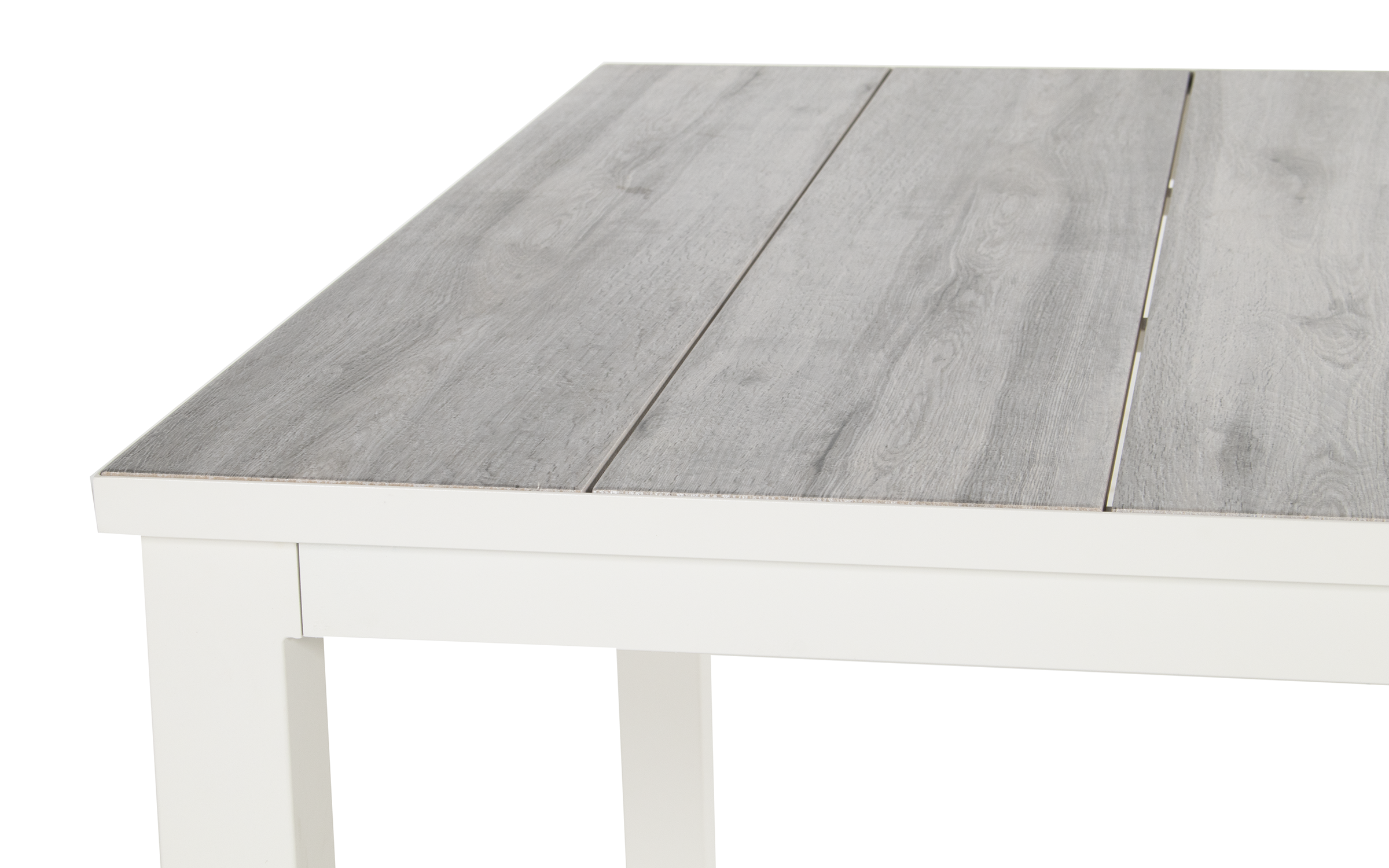 Konstrukcja z aluminium, blat z ceramiki. Materiały odporne na wilgoć, promieniowanie UV i zabrudzenia. Łatwe w pielęgnacji, nie wymagają impregnacji.