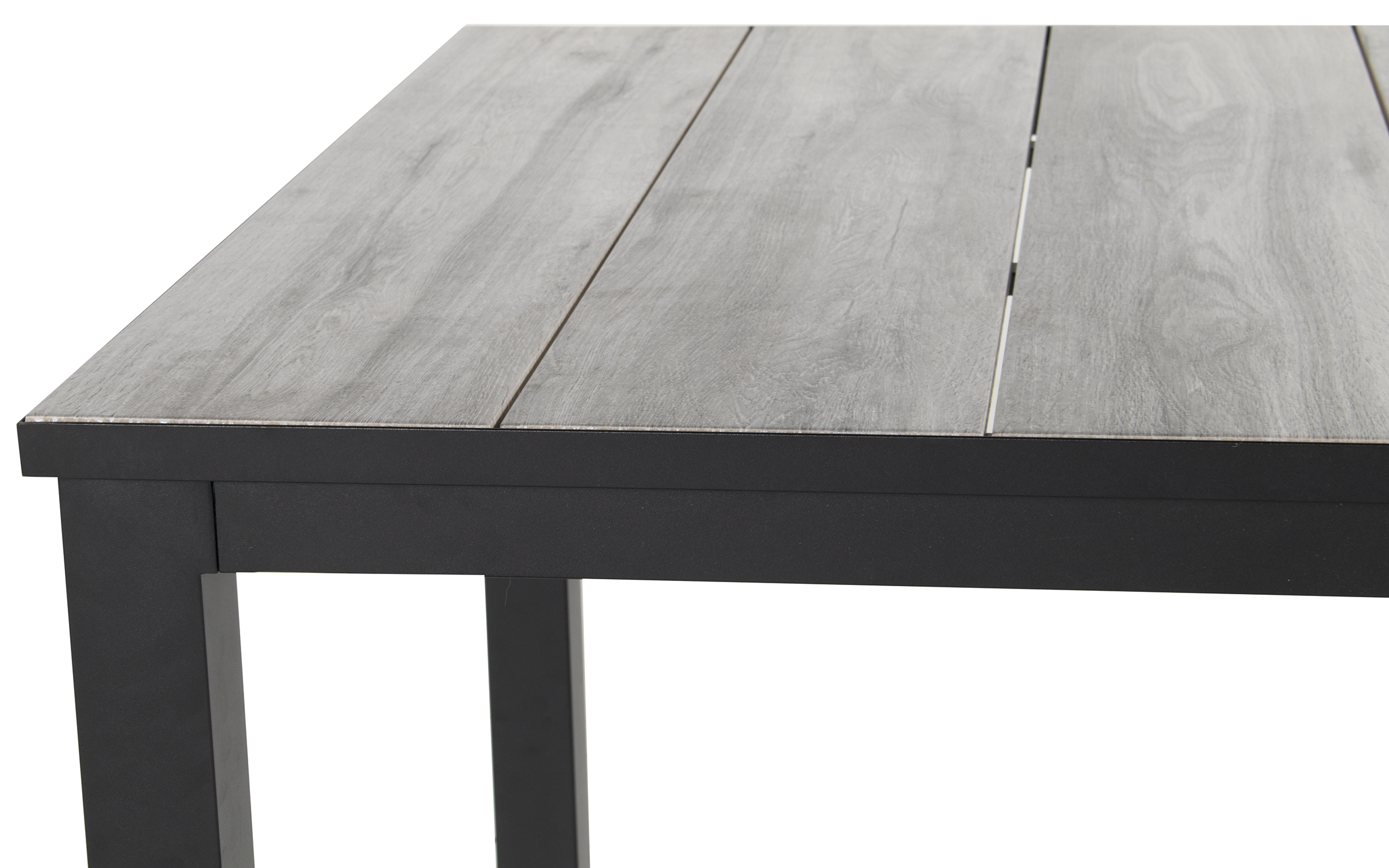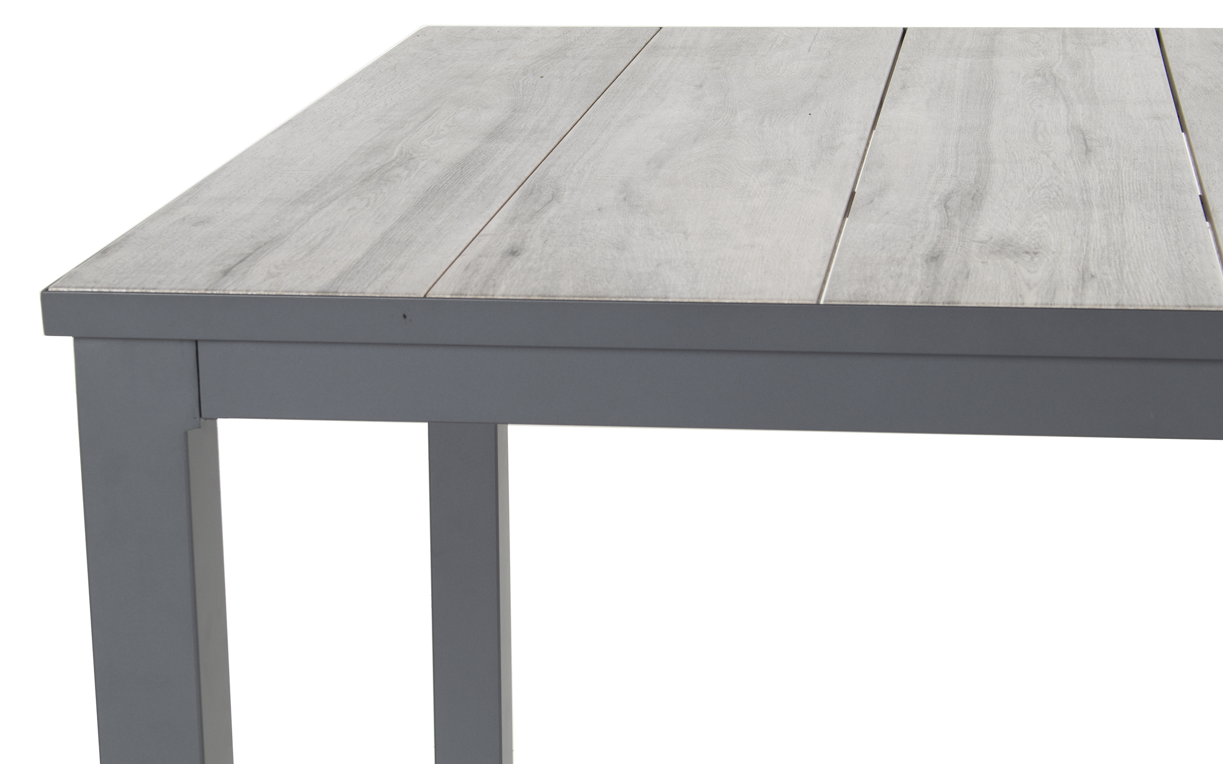 Konstrukcja z aluminium, blat z ceramiki. Materiały odporne na wilgoć, promieniowanie UV i zabrudzenia. Łatwe w pielęgnacji, nie wymagają impregnacji.