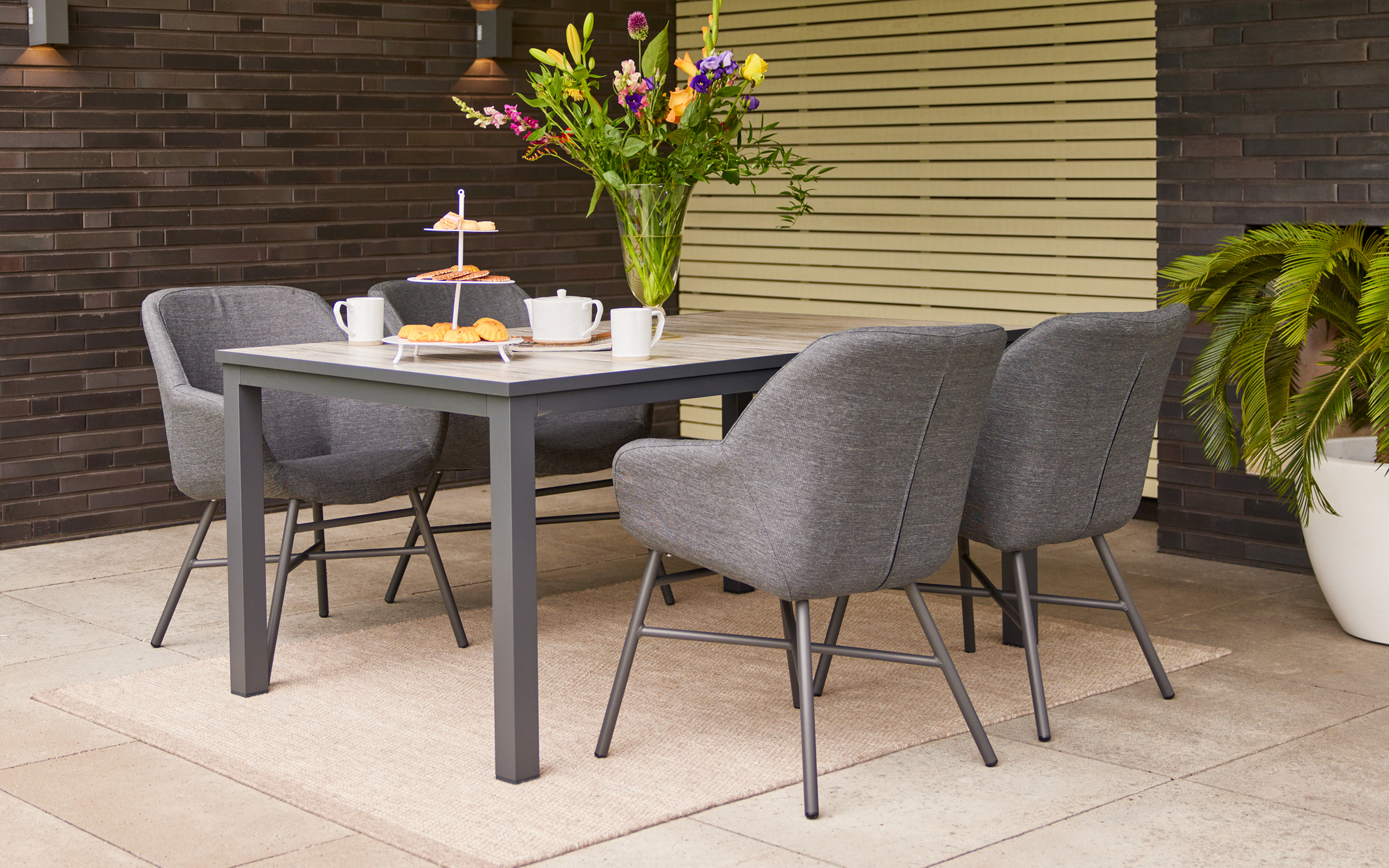 Stół ogrodowy COMINO to elegancki mebel jadalniany do przestrzeni zewnêtrznych. Aluminiowa konstrukcja oraz blat z ceramiki zapewniają trwałość i odporność na warunki atmosferyczne. Dostępny w trzech wersjach kolorystycznych, doskonale komponuje się z krzesłami Sophie, Canterbury i Gina z kolekcji Hartman. Idealny do ogrodu, na taras lub balkon.