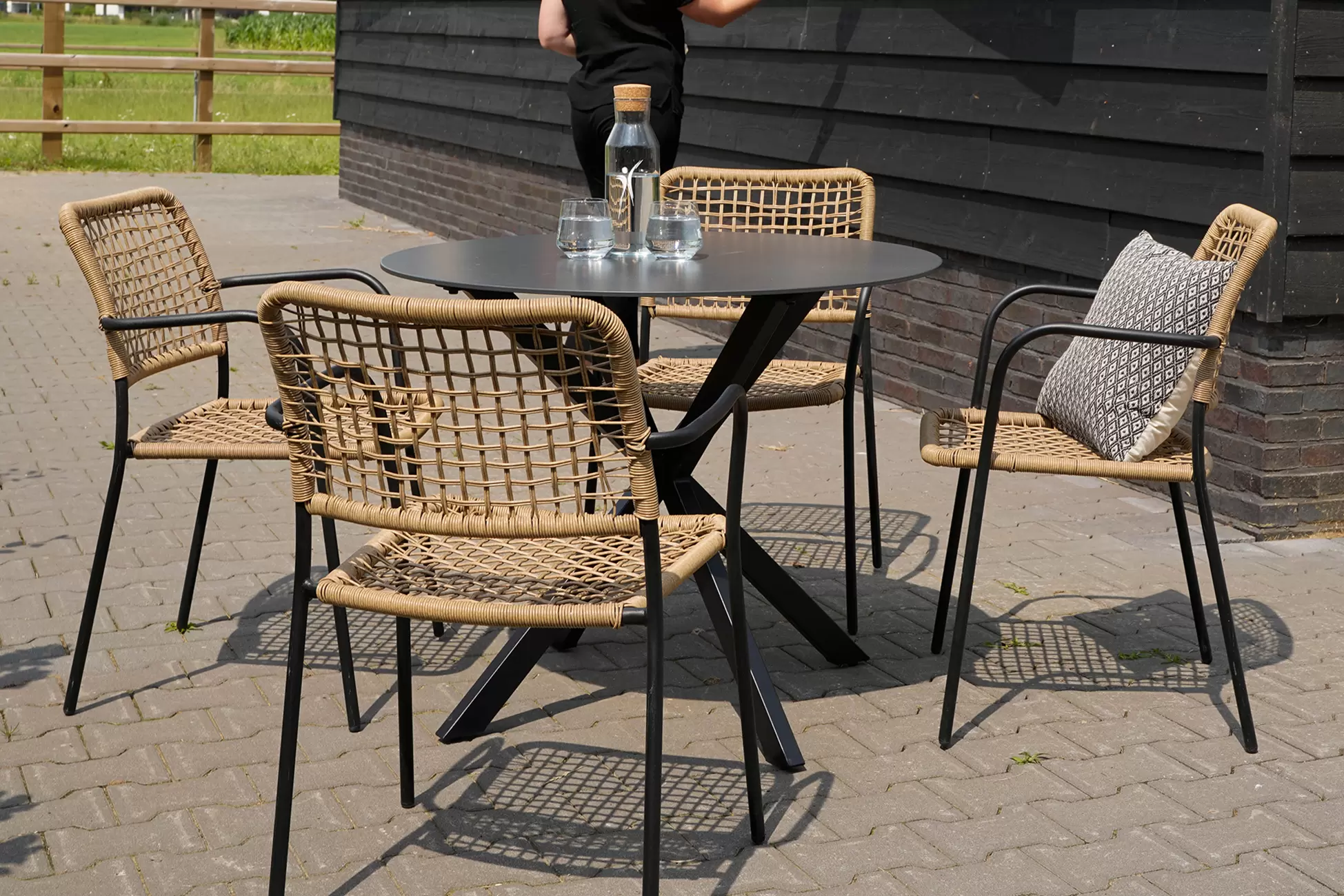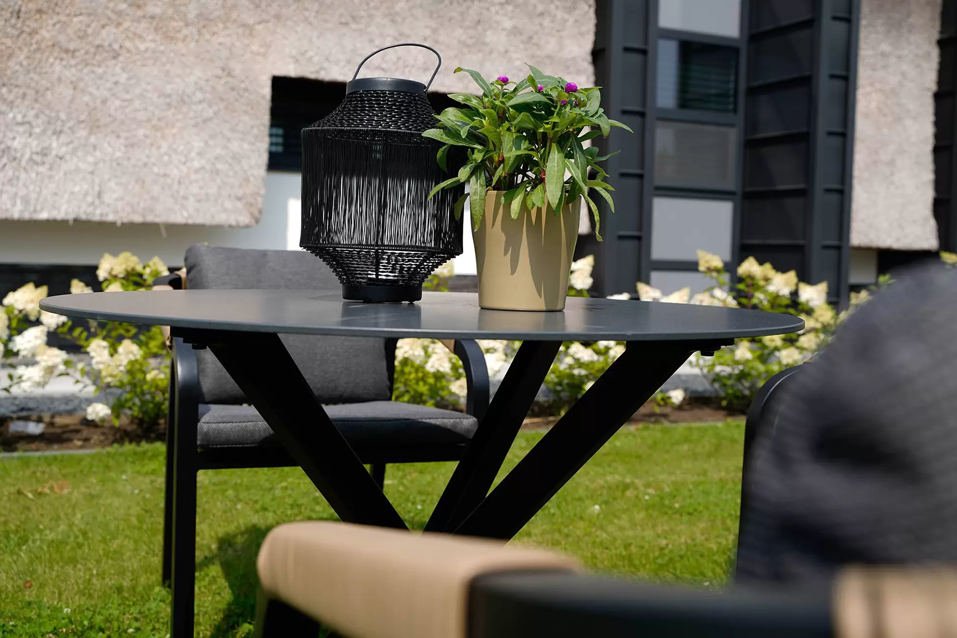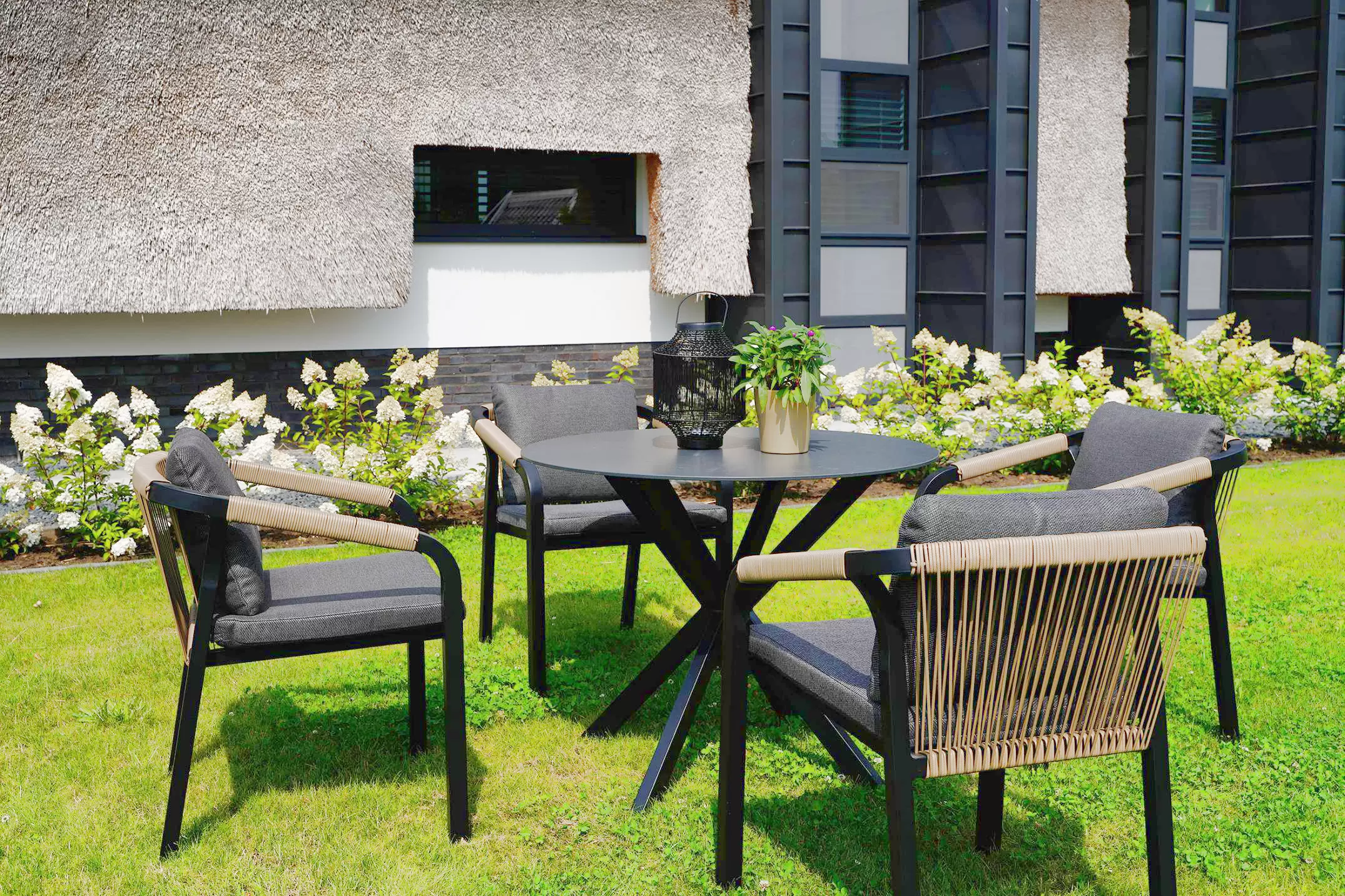 Wykonany z aluminiowej ramy w kolorze czarnym, stół Crest to świeży wygląd w Twoim ogrodzie lub na tarasie.